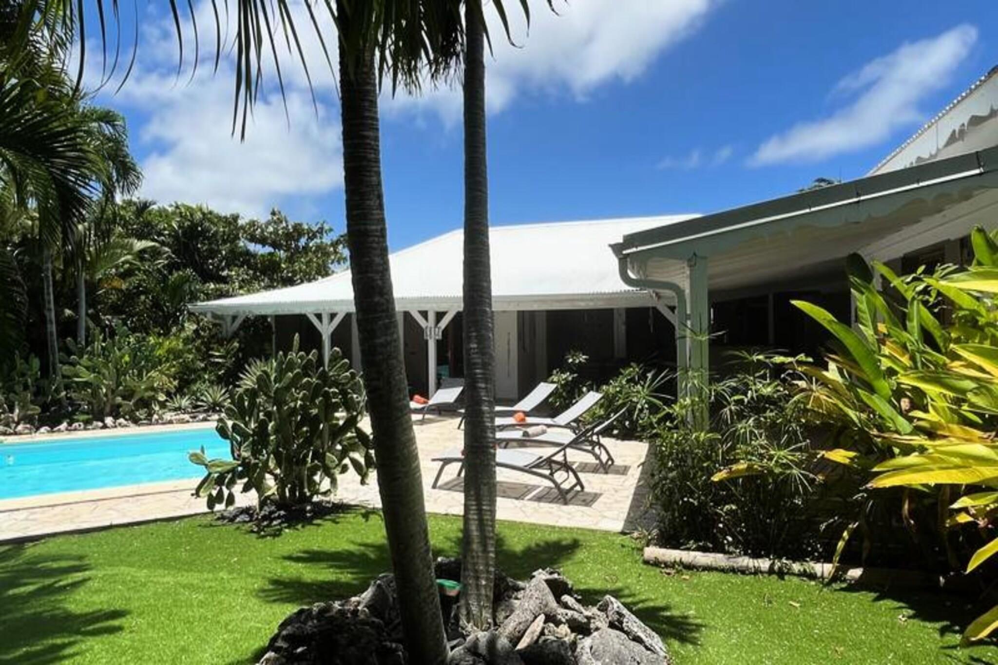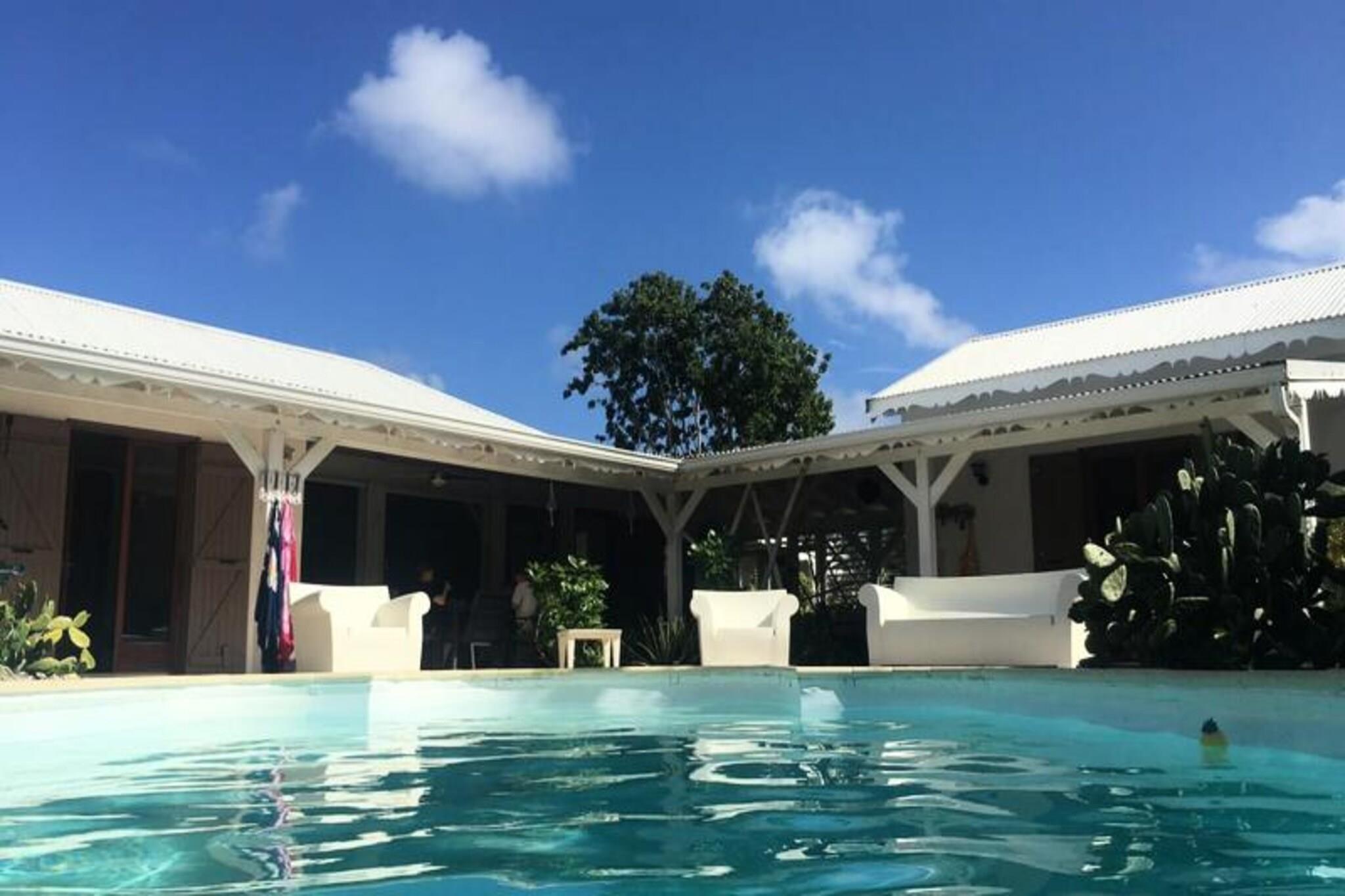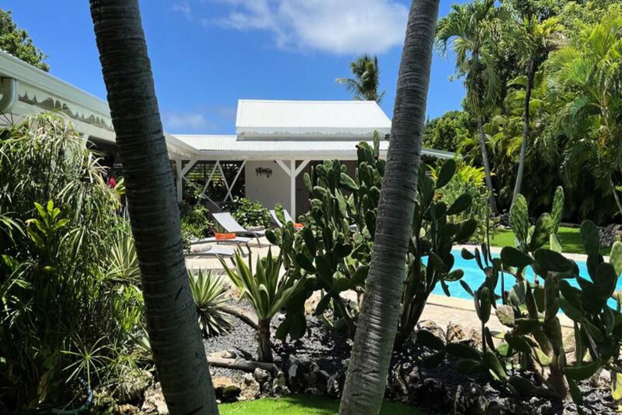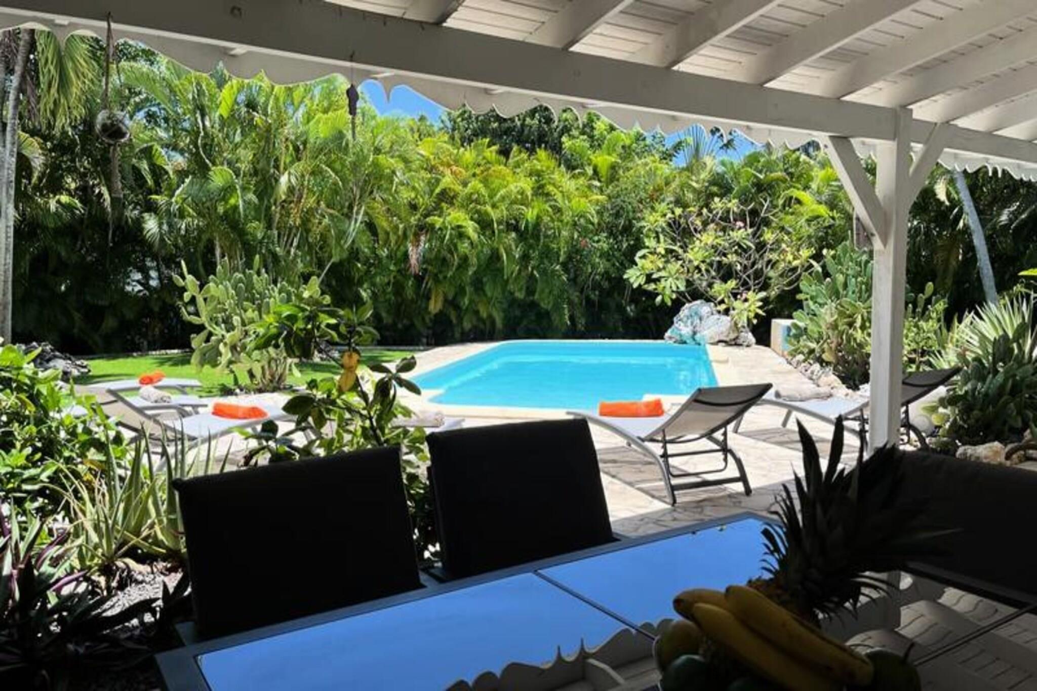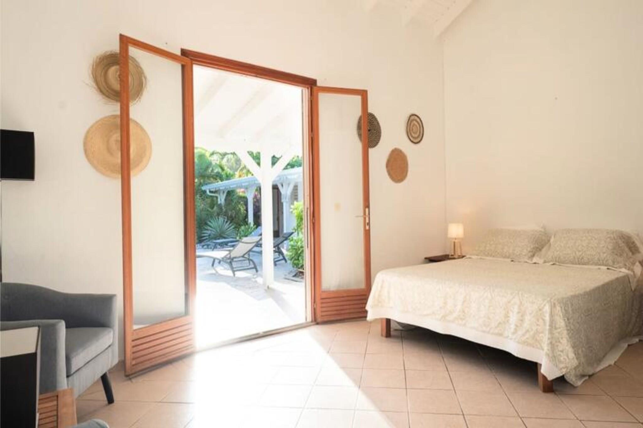 Denne smukke villa tilbyder et intimt og privat tilflugtssted beliggende i frodige grønne områder. Det har 4 soveværelser med aircondition, hver med eget badeværelse, og 2 værelser, der åbner direkte ud til en rummelig terrasse. Villaen har også 3 toiletter, en åben garage til to køretøjer og en stor swimmingpool med et område til solbadning. Kæledyr er ikke tilladt, og villaen tilbyder luksusfaciliteter såsom håndklæder og sengetøj inkluderet, samt et vandreservesystem for at sikre kontinuerlig vandforsyning. Beliggende kun 3 km fra strandene og faciliteterne, er villaen et fremragende sted for at udforske Guadeloupe. Den pulserende by Saint-François byder på butikker, markeder, et supermarked og en række restauranter. Den nærliggende Marina de Saint-François tilbyder sammen med den internationale golfbane og kasinoet underholdning og spisemuligheder. Populære strande såsom Raisins Clairs og Anse à la Gourde ligger kun få minutter væk, og havnen i Saint-François byder på vandsport såsom surfing og Wing Foil. Indvendigt kan villaen prale af et fuldt udstyret amerikansk køkken med masser af opbevaringsplads og en stor, luftig stue med katedrallofter. Den storslåede terrasse og den omkringliggende have giver en ideel ramme for afslapning. Ejendommen administreres med sans for detaljer, der sikrer, at alle dine behov bliver opfyldt, fra kvalitets rengøring til eksklusive concierge-tjenester til udflugter, biludlejning og meget mere.
