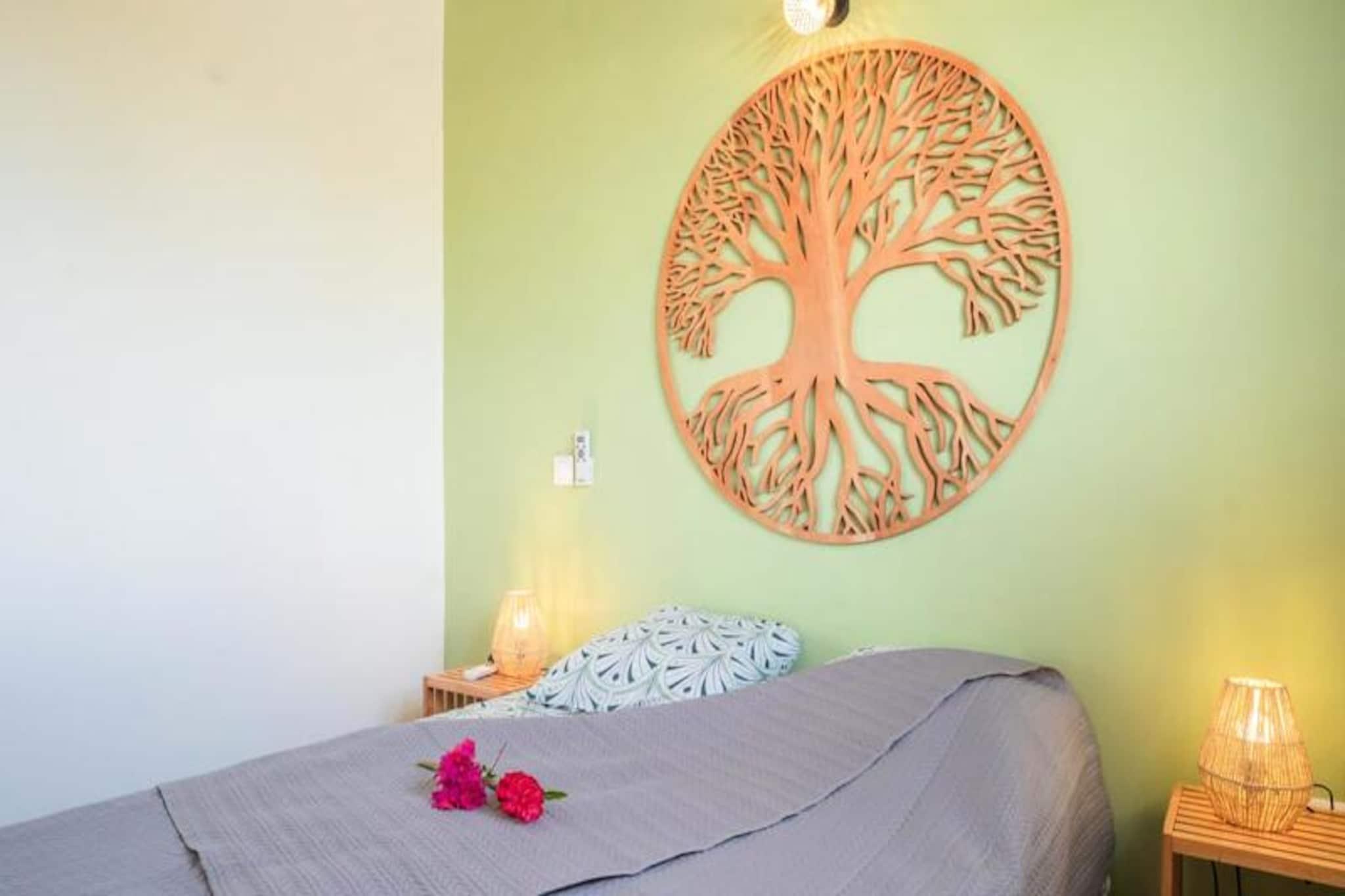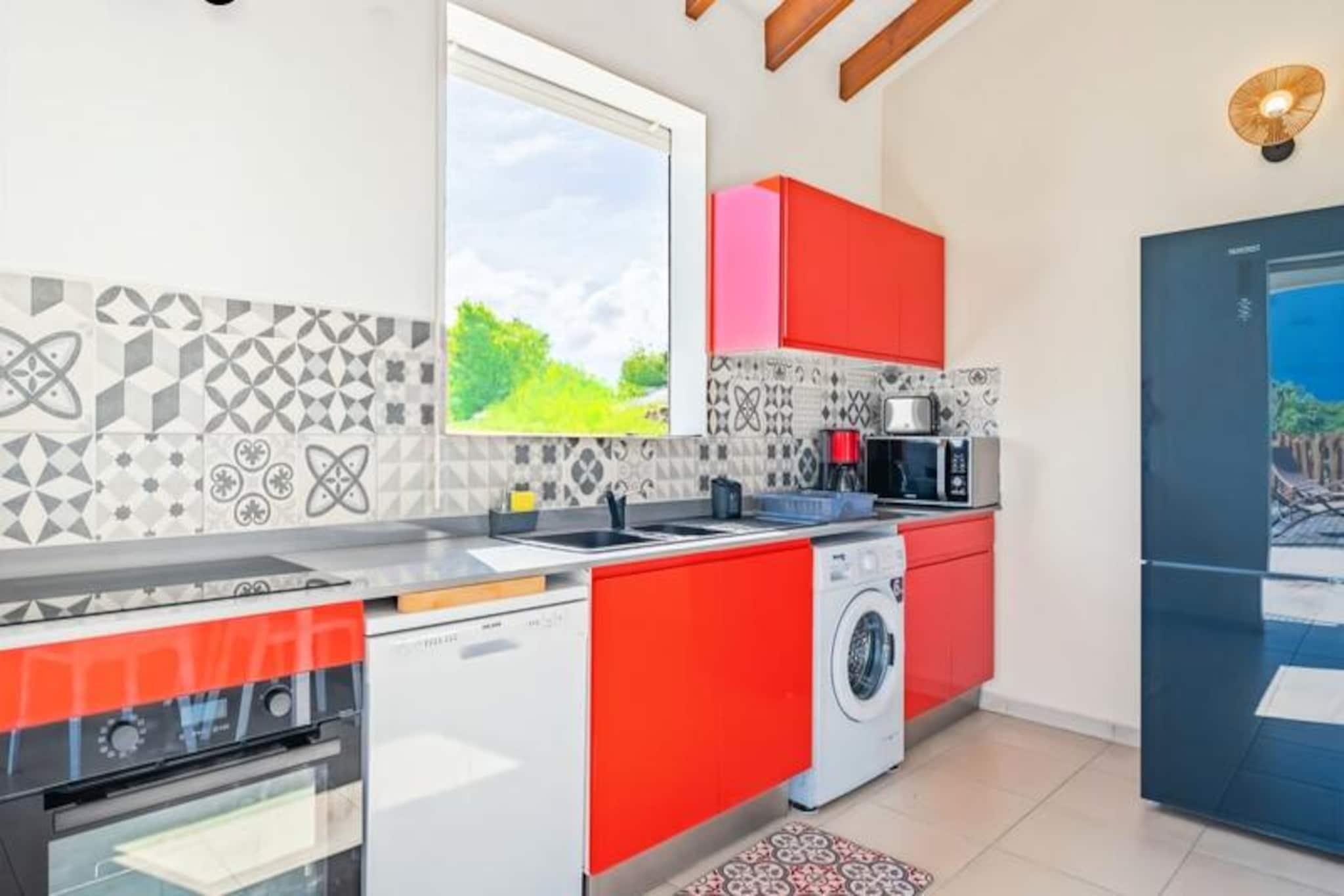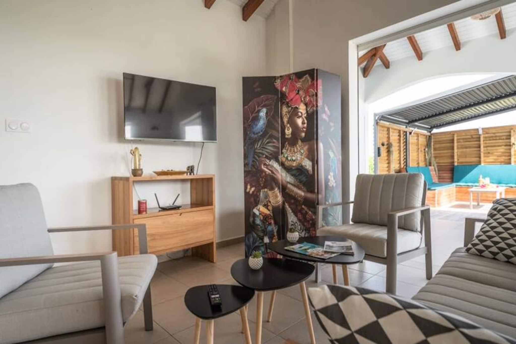 Træd ind i et fredfyldt tropisk tilflugtssted i Villa Karaval, et charmerende paradis i det eftertragtede Cayenne-distrikt i Saint-François. Denne etplansvilla, designet til op til fire gæster, kombinerer caribisk charme med moderne komfort og skaber de perfekte rammer for en forfriskende ferie. Fra det øjeblik du ankommer, vil den rolige atmosfære i det bioklimatiske lysthus og de frodige omgivelser invitere dig til at slappe af og omfavne ø-livsstilen. Villaens private pool, indrammet af en fantastisk Ipe-træterrasse, tilbyder en forfriskende tilflugtssted under den tropiske sol. \n\nIndenfor kan villaen prale af et fuldt udstyret køkken, ideelt til at tilberede lækre måltider med lokale ingredienser. Fra en traditionel ovn til en kulgrill er hver eneste detalje blevet tænkt over for at forbedre din kulinariske oplevelse. De to airconditionerede soveværelser, der hver især har en hyggelig 140 cm seng, lover afslappende nætter efter dages udforskning. Et moderne badeværelse med toiletartikler bidrager til bekvemmeligheden og sikrer et problemfrit ophold. \n\nVilla Karavals beliggenhed er uovertruffen. Kun få minutter fra det pulserende centrum af Saint-François finder du supermarkeder, bagerier og butikker lige ved hånden. De nærliggende strande og kulturelle attraktioner tilbyder uendelige muligheder for eventyr, lige fra at slappe af på uberørt sand til at fordybe sig i den lokale kulturarv. For ekstra bekvemmelighed ligger Cayenne Internationale Lufthavn kun en kort køretur væk, hvilket gør din ankomst og afrejse ubesværet. \n\nUanset om du søger afslapning ved poolen, kulinariske lækkerier eller spændingen ved at opdage Guadeloupes skatte, er Villa Karaval din port til en uforglemmelig caribisk flugt. Lad den blide brise og varme gæstfrihed i Saint-François gøre dit ophold virkelig specielt.