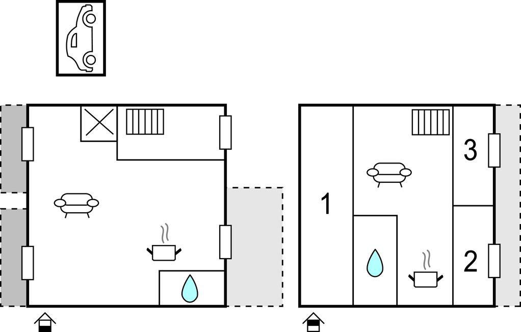 Soveværelse 20m2 (nr. 1) - 1 Soveplads. (Enkeltseng(e)). 2 Sovepladser. (Dobbeltseng(e)).
