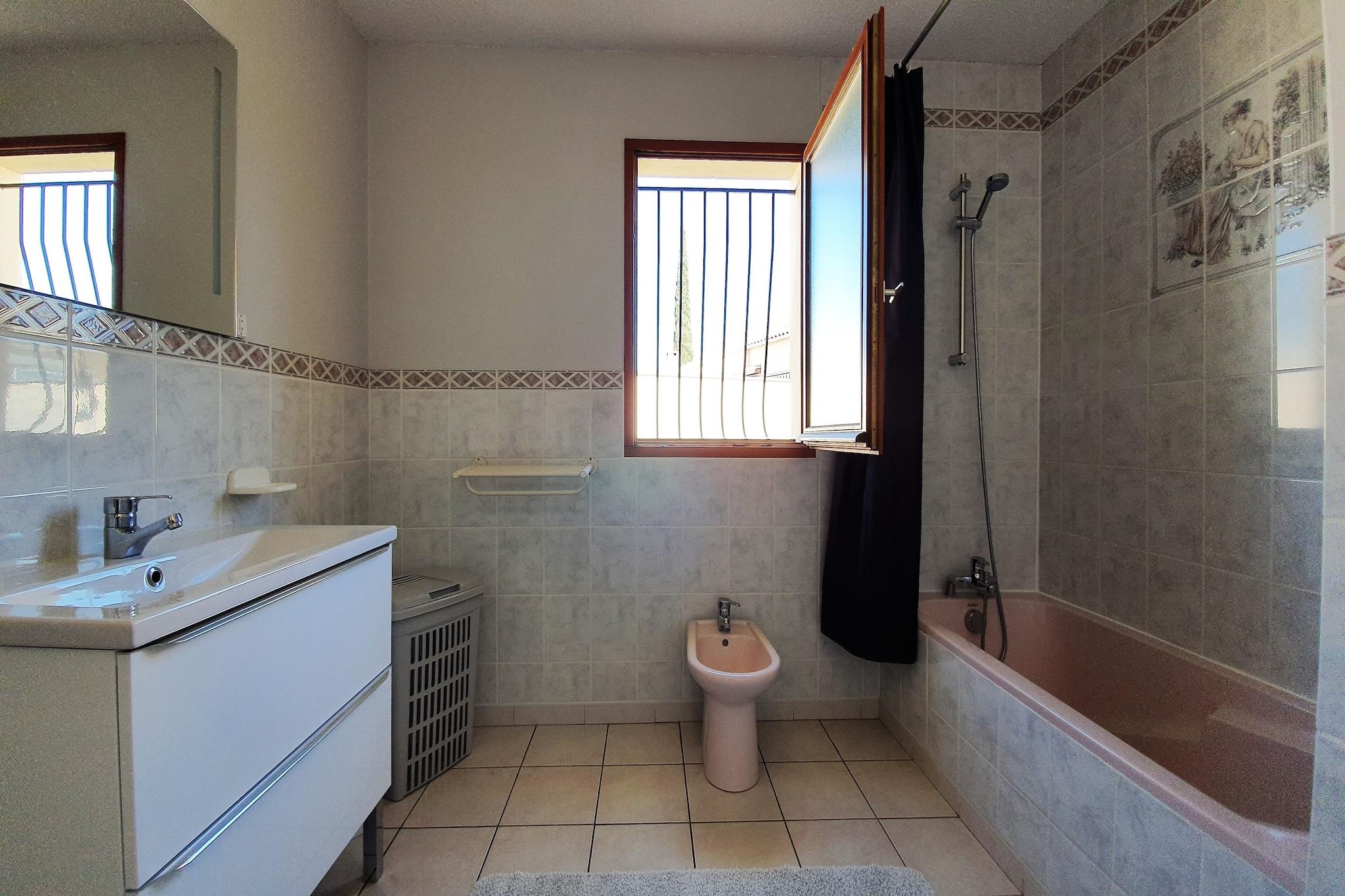 Flygt til denne dejlige villa i Saint-Geniès-de-Fontedit, perfekt for familier eller venner, der søger et fredeligt tilflugtssted. Kun 400 meter fra landsbyens centrum finder du charmerende butikker, hyggelige restauranter og maleriske gader at udforske. Villaen har en privat swimmingpool (åben juni til oktober), en komfortabelt møbleret have og praktisk parkering på stedet - ideel til at slappe af under middelhavssolen. Indenfor byder villaen på et varmt og indbydende opholdsrum med pejs, spisebord og TV. Det veludstyrede køkken giver dig mulighed for nemt at tilberede lækre måltider, mens vaskemaskinen sørger for bekvemmelighed under længere ophold. Uanset om du nyder en stille aften indendørs eller er vært for en livlig middag på terrassen, er hjemmet designet til komfort og forbindelse. Ud over villaen byder regionen på masser at opdage. Tilbring en dag ved havet i Agde (37 km), besøg kystbyerne Montpellier og Narbonne, eller udforsk nærliggende landsbyer som Murviel-lès-Béziers. Med en togstation kun 19 km væk og lokale faciliteter inden for gåafstand, kombinerer denne villa landlig charme med nem adgang til alt, hvad du behøver for en uforglemmelig ferie.