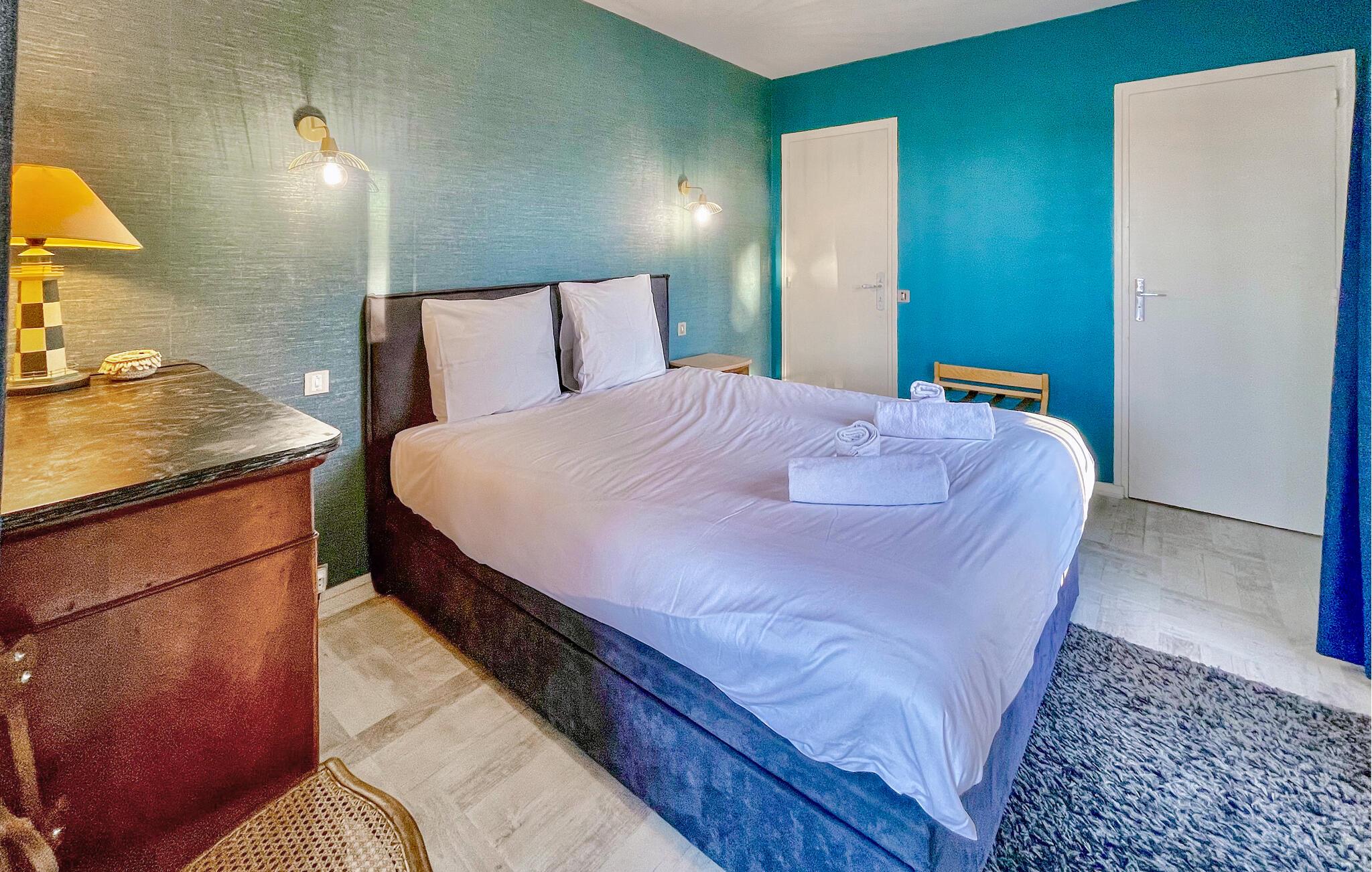 Tilbring en afslappende ferie i denne rummelige ferielejlighed med havudsigt og adgang til poolen.