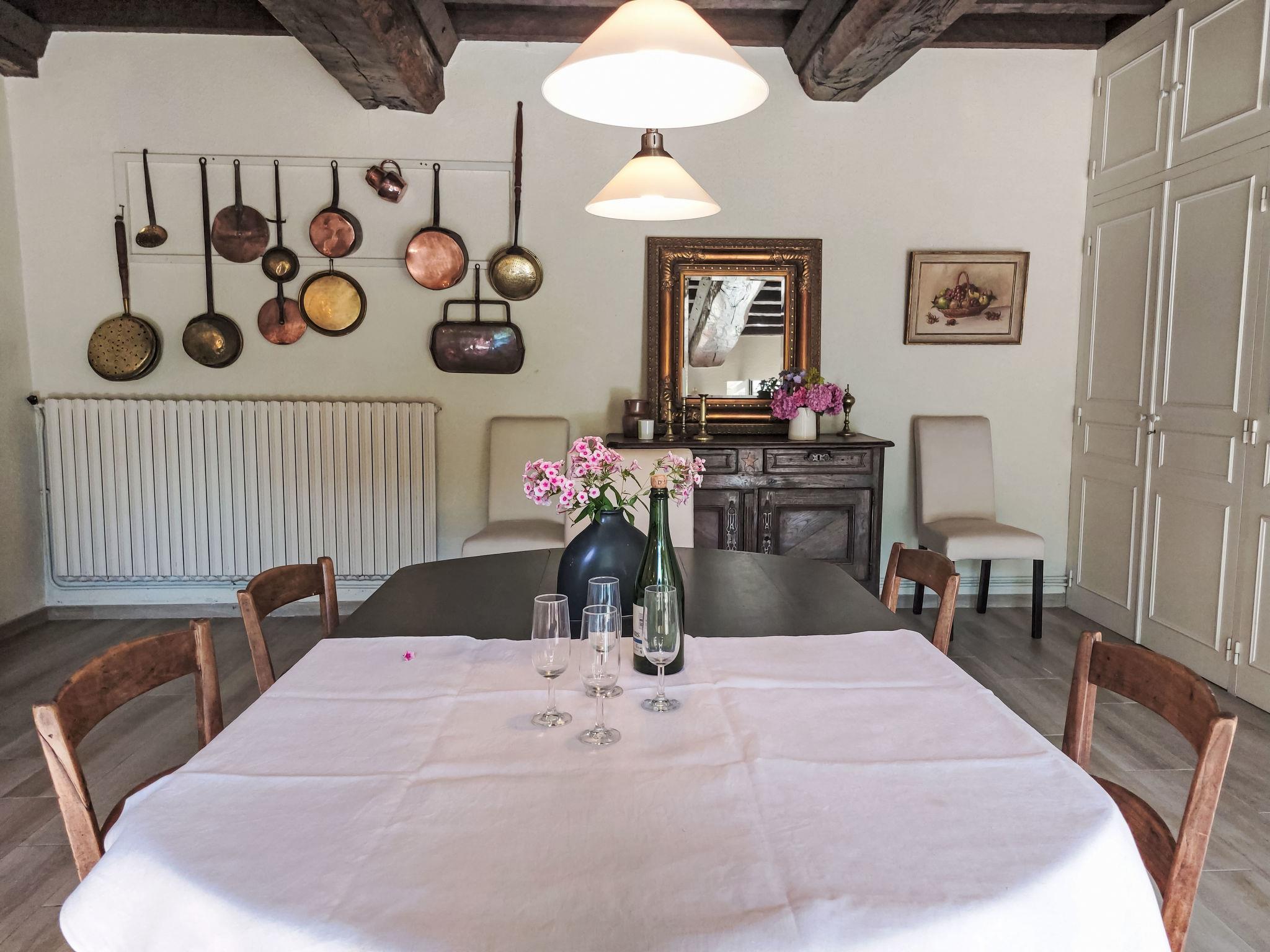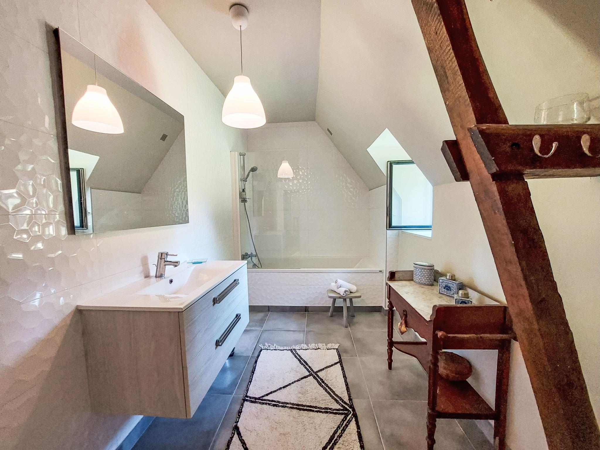 "La Grulais", 4-room house 160 m2 on 2 levels, south facing position. Comfortable and beautiful furnishings: large living/dining room with open-hearth fireplace. Exit to the terrace. Large kitchen (oven, dishwasher, 4 gas rings, toaster, kettle, microwave, freezer, electric coffee machine, Capsules for coffee machine (Nespresso) extra) with dining table. Exit to the terrace. Upper floor: 1 room with 1 french bed (160 cm, length 190 cm). Gallery with 1 french bed (140 cm, length 190 cm). 1 room with 1 french bed (140 cm, length 190 cm). Bathroom, sep. WC. Oil heating. Terrace furniture, barbecue, deck chairs (6). Facilities: washing machine, children's high chair, baby cot for up to 2 year olds, hair dryer. Internet (WiFi, free). Please note: non-smoking house. Smoke alarm. Offer by a private individual according to Art. 155, IV of CGI.