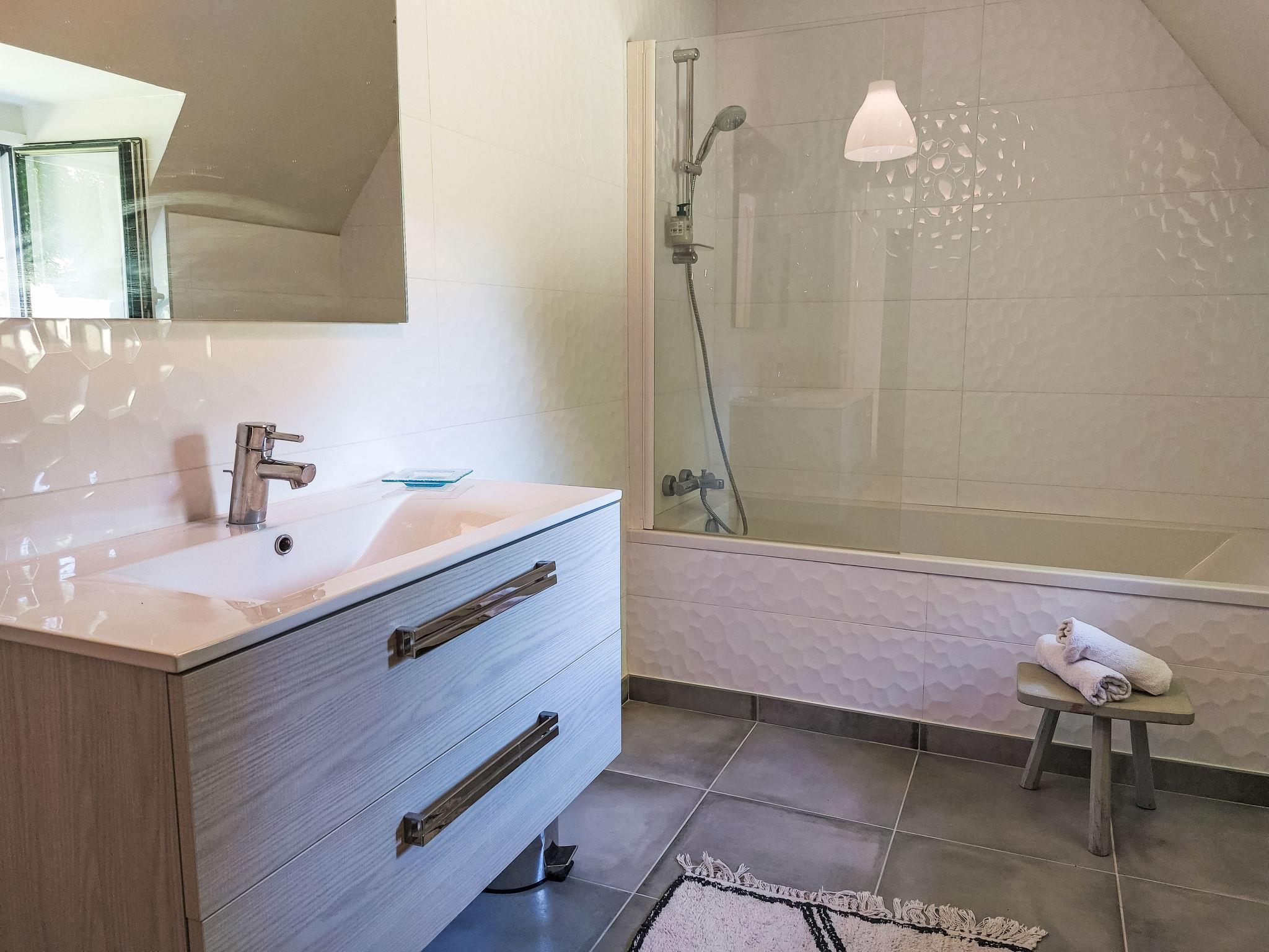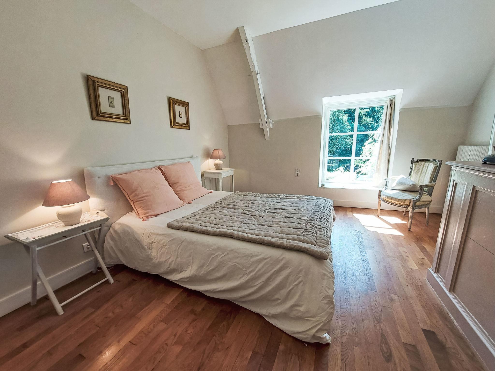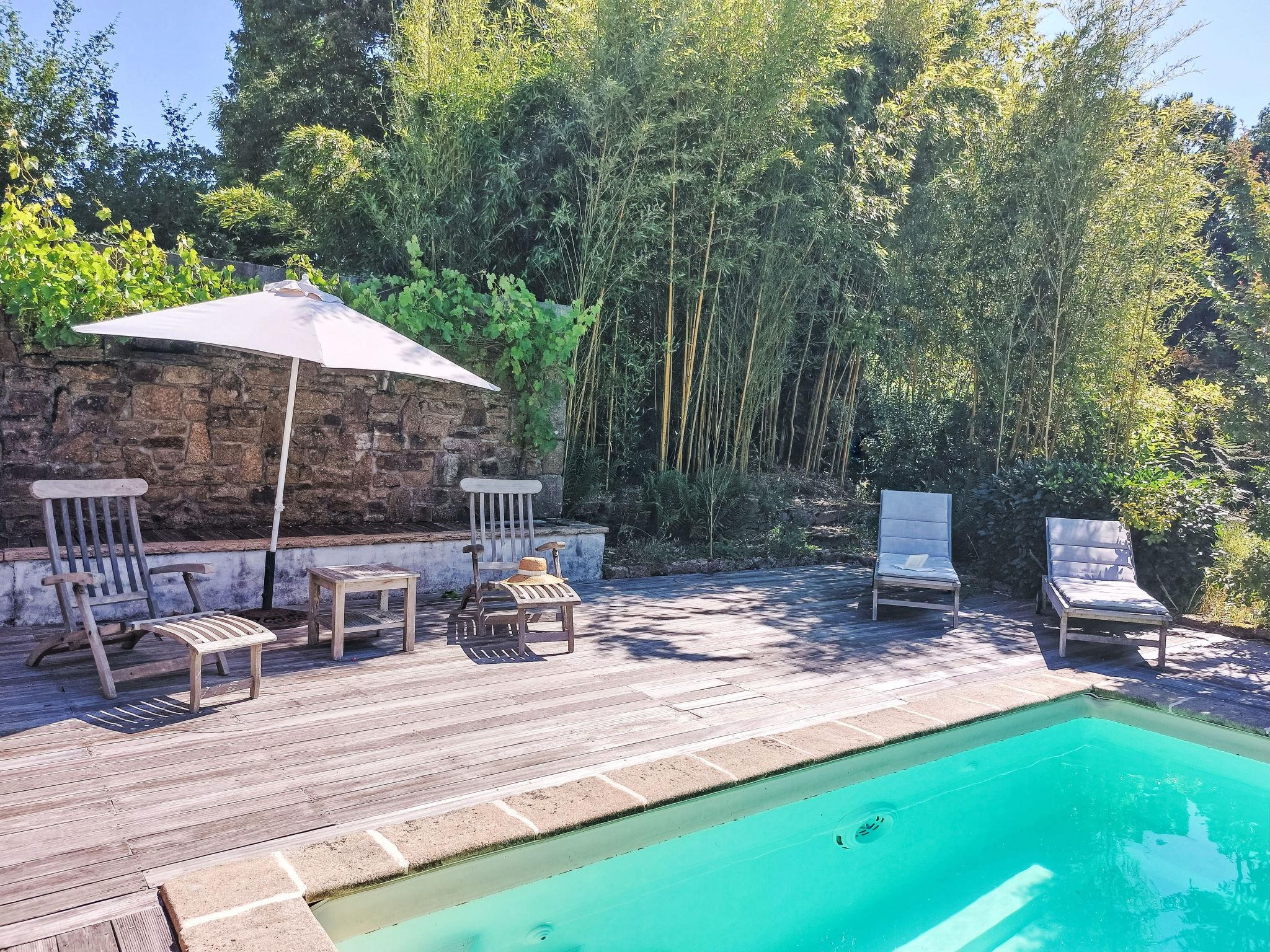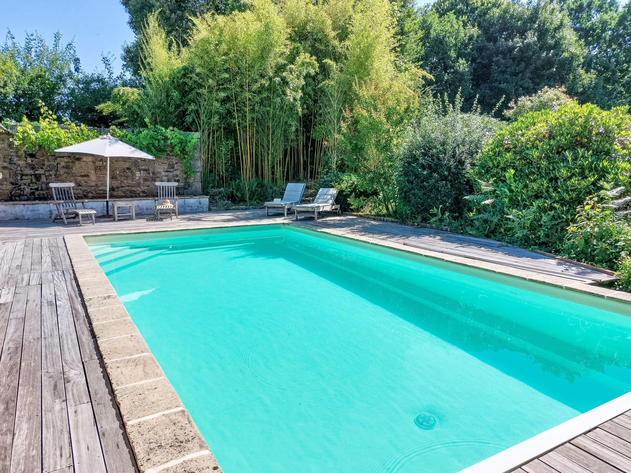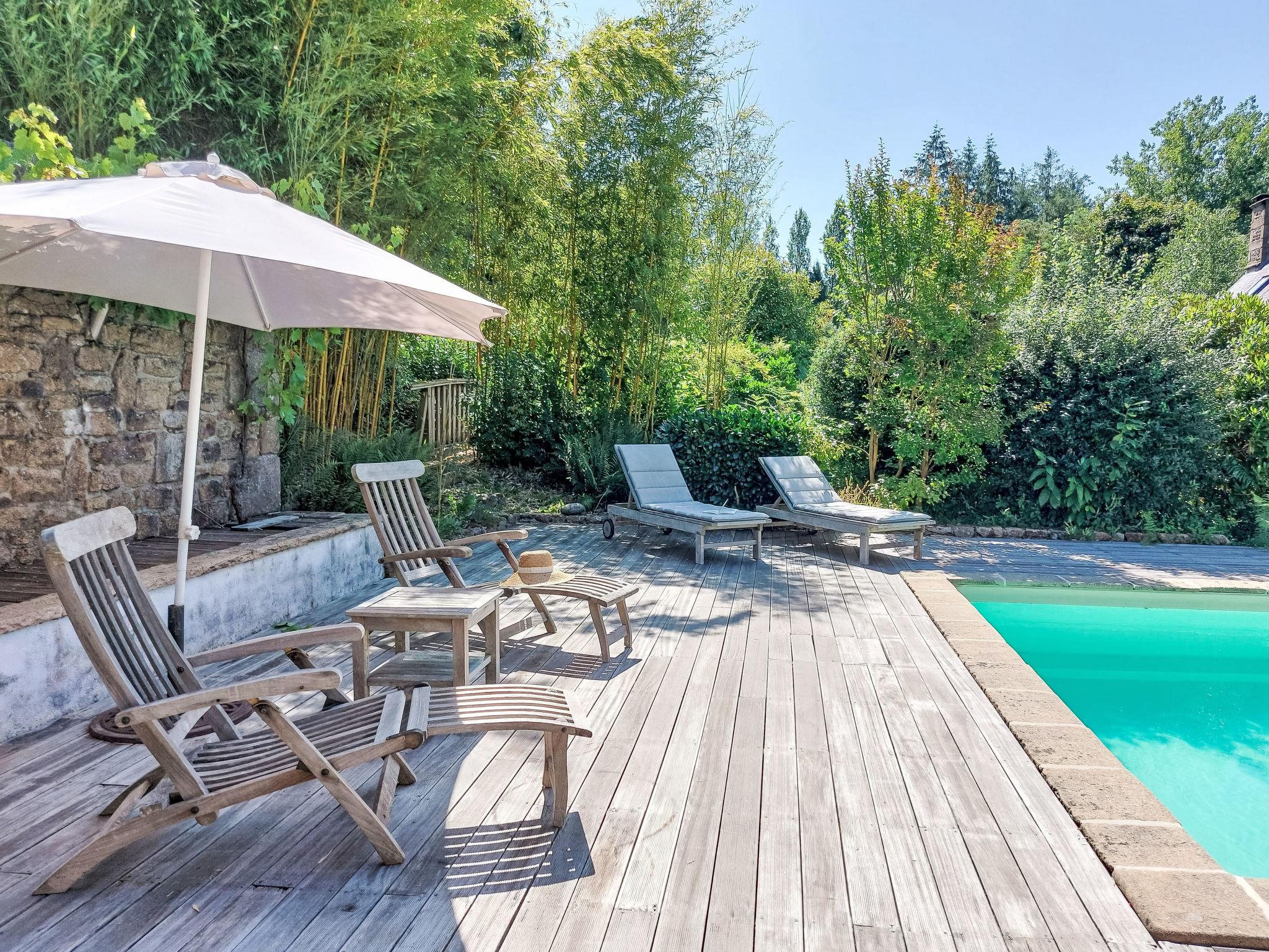 Large single-family house "La Grulais", surrounded by trees and fields. 1.7 km from the centre of St Georges-de-Reintembault, 26 km from the sea. For shared use: swimming pool angular heated, with privacy (9 x 4 m, depth 150 - 150 cm, seasonal availability: 01.Jun. - 30.Sep.) with shutter cover. Shower/WC in the pool area, pool maintenance by the owner/gardener. Private: property 400 m2, well-kept garden (not fenced) with lawn and wildlife garden, parking (for 2 cars) on the premises. Restaurant 1.7 km, bakery 1.7 km, bus stop 2 km, sandy beach "Jullouville, Carolles" 48 km, park "Parc Botanique de Haute Bretagne" 15 km. Golf course (9 hole) 15 km, cycle lane 3 km. Nearby attractions: Mont Saint-Michel 30 km, Fougères 24 km, Cancale 64 km, Vitré, Granville 51 km, Rennes 71 km, St Malo 70 km. Hiking paths: Jersey, Chaussey. Please note: car recommended. The owner lives on the same property.
