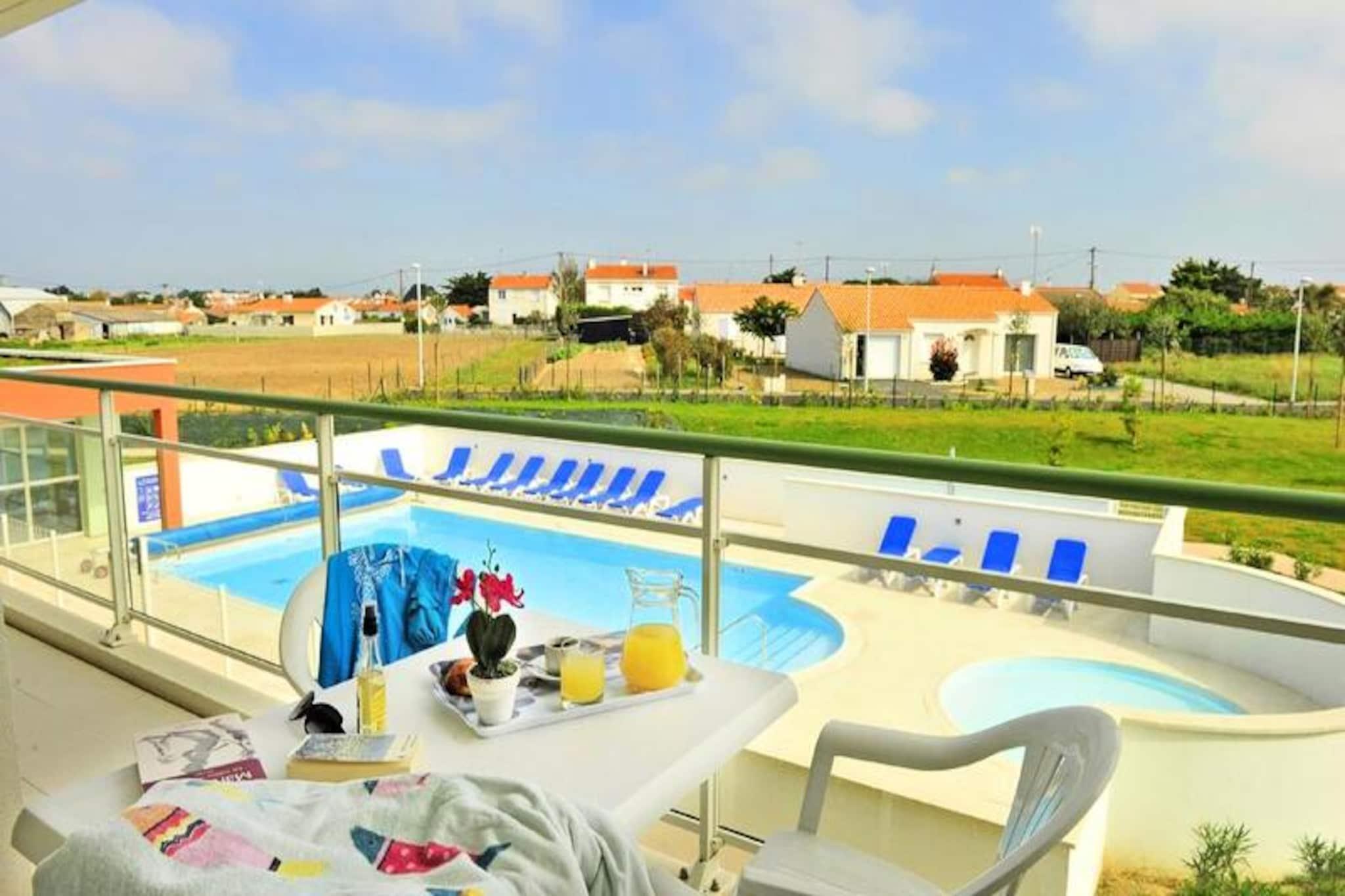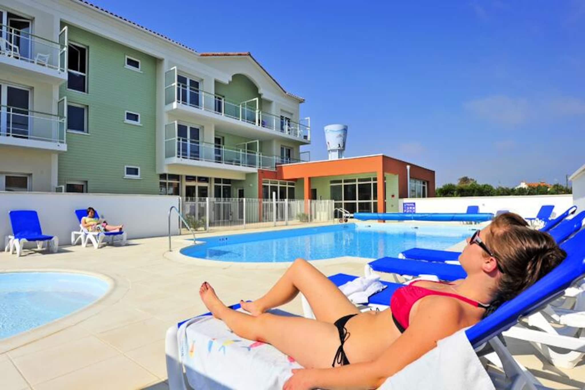 I Saint Gilles Croix de Vie er Résidence Goélia La Grande Plage*** ideelt beliggende 400 m fra en 3,6 km lang strand. Adgang til denne strand er til fods via en fodgængerbro. Boligen består af dobbelthuse og lejligheder. Dette kystmiljø er boligens virkelige "plus", surfentusiaster vil finde, hvad de leder efter, med pladsen "La Passerelle" dedikeret til denne sport. Strandklubben vil glæde børn, takket være de aktiviteter, den tilbyder: holdsport, hoppepude, trampoliner (klub uafhængig af boligen). Desuden er alle resortets butikker og aktiviteter (markeder, restauranter, barer, natklubber osv.) 1,8 km væk. Til dine fritidsaktiviteter i selve boligen finder du en opvarmet udendørs swimmingpool og et wellness-område (mod et ekstra gebyr) med sauna og spabade. 4 værelses hus 8 personer. Terrasse. I stueetagen, stue med sovesofa til 2 personer, soveværelse med udtrækssovesofa (2 enkeltsenge), brusebad og separat toilet. Ovenpå, soveværelse med dobbeltseng (140 x 190), soveværelse med 2 enkeltsenge, badeværelse med toilet Bemærk venligst: denne bolig er fordelt på 2 etager. Wifi-adgang - i receptionen i euro timer; åbning af den. Adgang begrænset til 30 minutter pr. dag pr. voksen. Priser for ubegrænset adgang: EURO6/dag, EURO21/uge, EURO31/2 uger. Minutpakker: 5€ i 60 minutter og 8€ i 2 timer. Kæledyr tilladt - 10,50EURO/nat, 49EURO/uge, 98EURO/uge i 3 til 4 uger. Bemærk venligst ved tilmelding (anti-rabies certifikat påkrævet). Angrebshunde (pittbull) og 2. kat. (vagt/forsvar) er forbudt. Kun 1 dyr pr. overnatning. Depositum (ekstra) - 250 Babykit - (seng, stole, bad) EURO5/ophold, skal forudbestilles samtidig med overnatning og afhængig af tilgængelighed. Sengelinned - 12,50 EURO/skift Håndklæder - 10€/pers/skift Slutrengøring - (ekskl. tekøkken) 60€ til 89€ afhængig af lejetype. Slutrengøring eller daglig rengøring efter anmodning Parkering - en parkeringsplads inkluderet, afhængig af tilgængelighed Morgenmad - EURO13/dag/voksen og EURO7,5/dag/barn under 16 til 12 år. Forudbestilles dagen før og betales på stedet. Swimmingpool - opvarmet udendørs - gratis adgang, åben fra april til slutningen af ??september (afhængigt af vejrforhold) + rund børnepool Sauna - Betales på stedet Turistskat (ekstra gebyr) - betales på stedet, afhængigt af tilgængelighed Fjernsyn - inkluderet