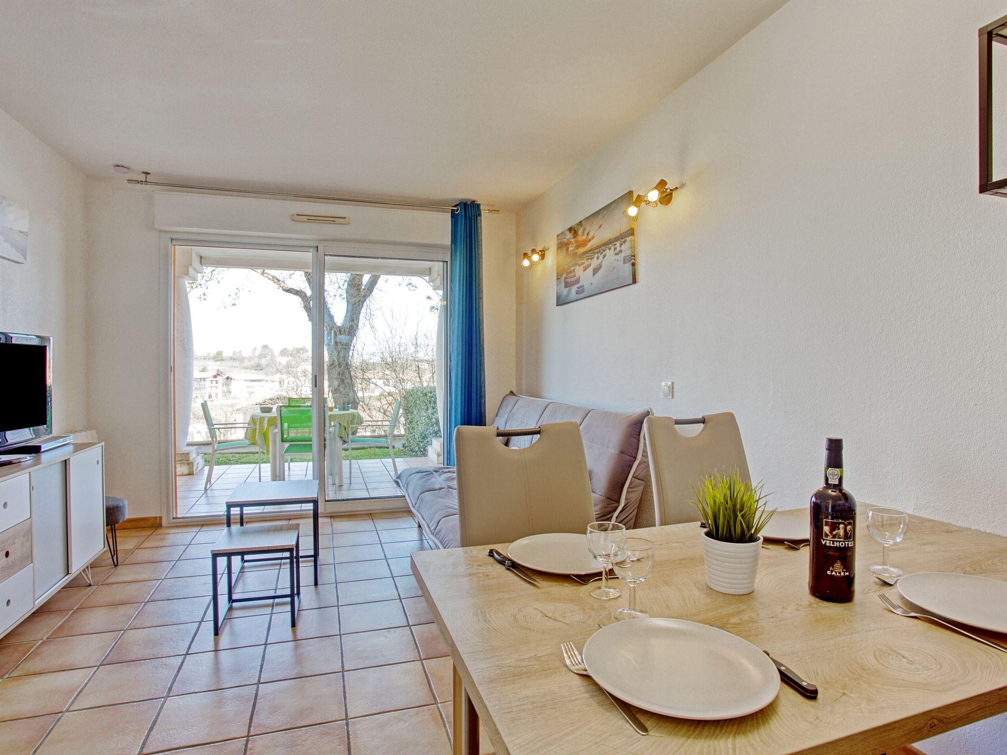 2-room apartment 31 m2, on the ground floor. Practical and cosy furnishings: small living/dining room with 1 double sofabed (140 cm, length 190 cm), TV (flat screen), DVD. Exit to the terrace, to the patio. 1 room with 1 french bed (160 cm, length 200 cm). Open kitchen (dishwasher, 2 induction hot plates, toaster, kettle, microwave, electric coffee machine). Shower, sep. WC. Electric heating. Terrace 9 m2. Terrace furniture, deck chairs (2). View of the valley. Facilities: iron, hair dryer. Internet (WiFi, free). Parking space n 184. Please note: smoke alarm. 64189000794BD