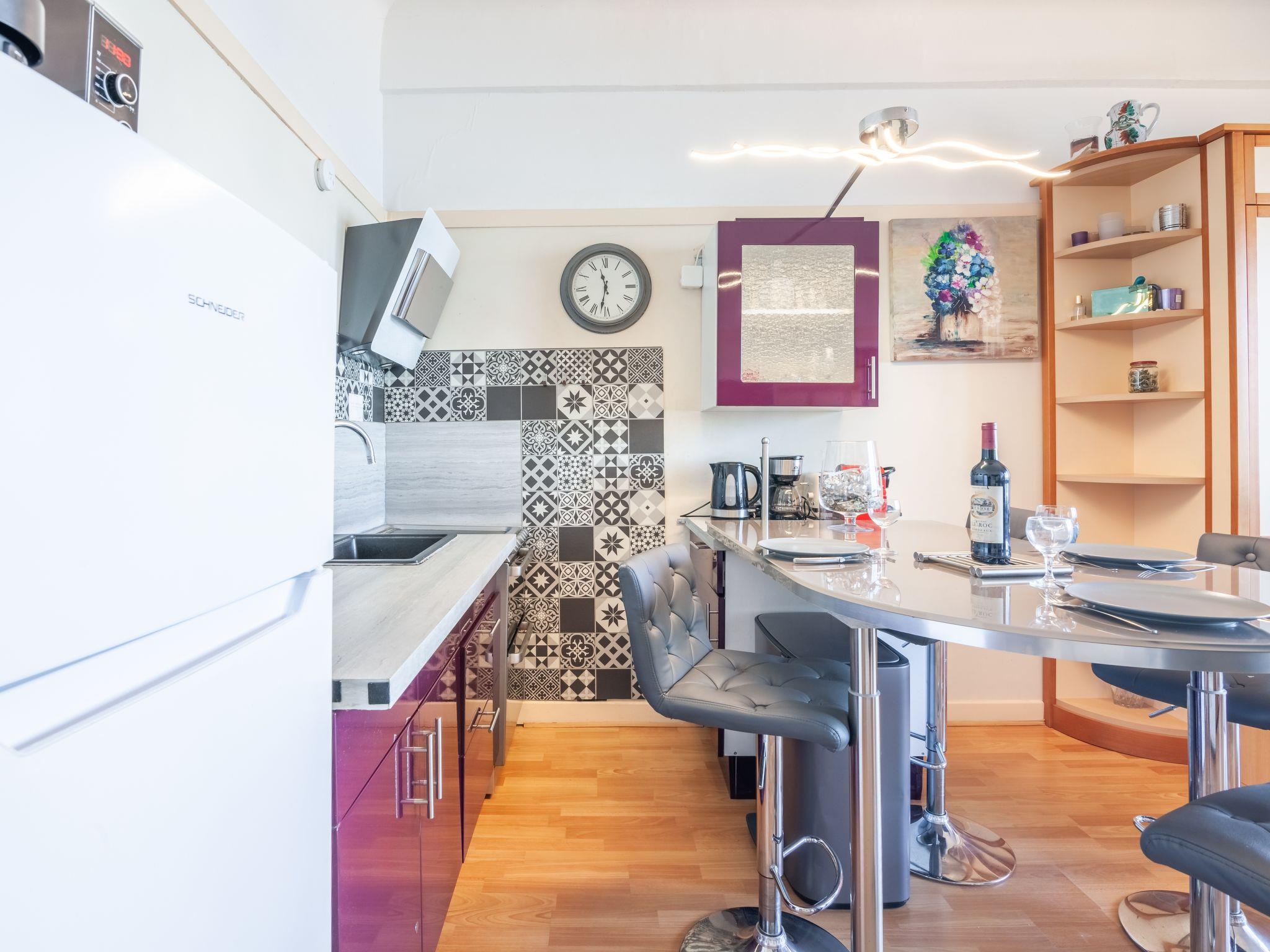 2-room apartment 44 m2 on 1st floor. Comfortable and beautiful furnishings: living/dining room with 1 double sofabed, TV and flat screen. Exit to the balcony, west facing position. 1 room with 1 french bed and shower/WC. Small kitchen (4 hot plates, dishwasher, microwave, freezer, grill). Sep. WC. Electric heating. Small balcony 6 m2. Marvellous view of the sea. Facilities: washing machine. Internet (WiFi, extra). Please note: smoke alarm. The bedroom windows face onto a small courtyard.