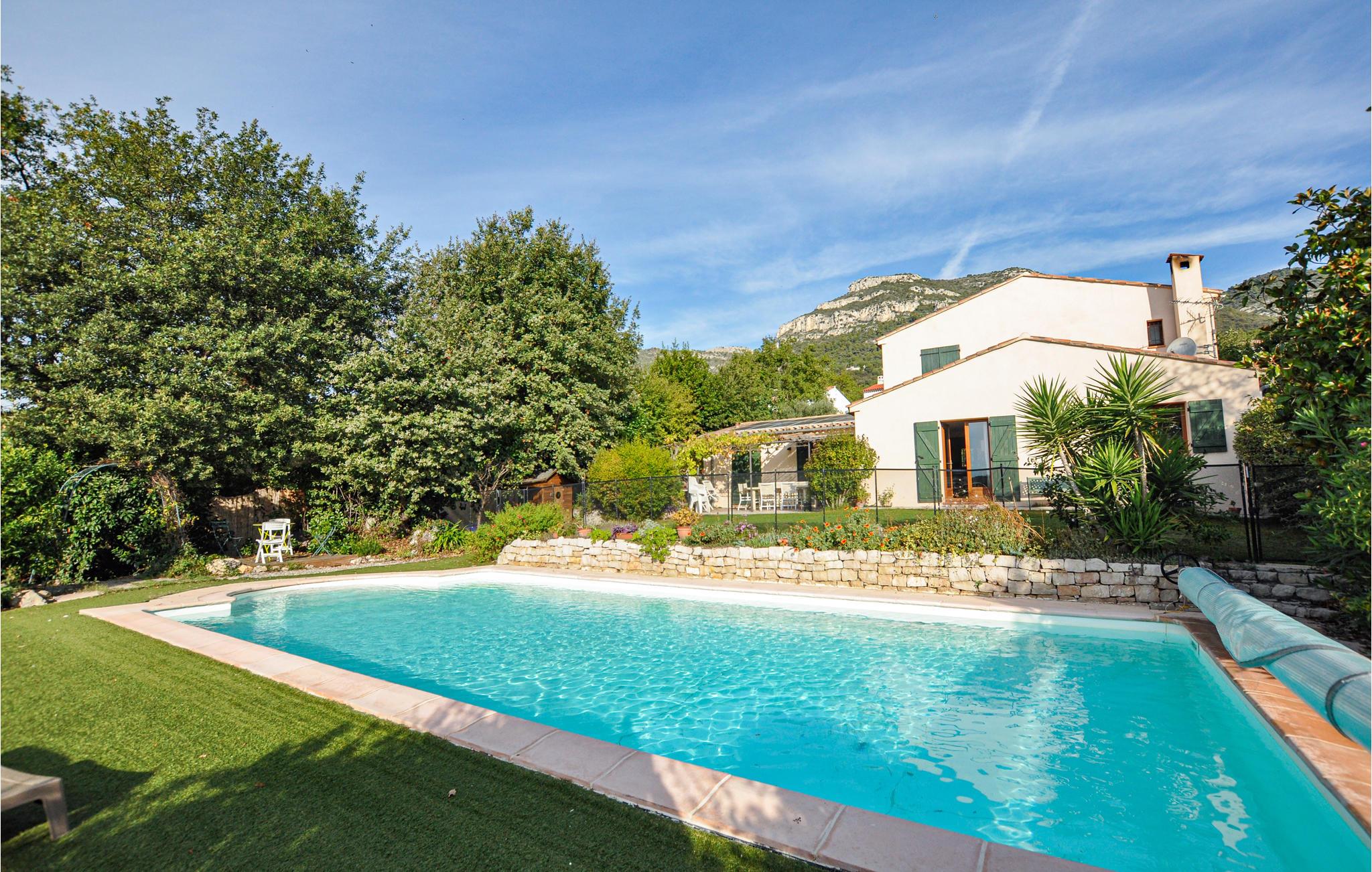 Dette rummelige feriehus ligger i Nices bagland. Den charmerende beliggende byder på et lyst interiør, der gør et indbydende indtryk. Det komfortabelt indrettede hus byder på alt hvad I behøver for en vellykket ferie og er ideel for op til flere familier. Tilbring solrige timer ved poolen i løbet af dagen og tag et spil backgammon i et af de hyggelige hjørner af haven om eftermiddagen, mens børnene boltrer sig på græsplænen. Glæd jer også til stemningsfulde, hyggelige sommeraftener omkring havebordet med lækre måltider.