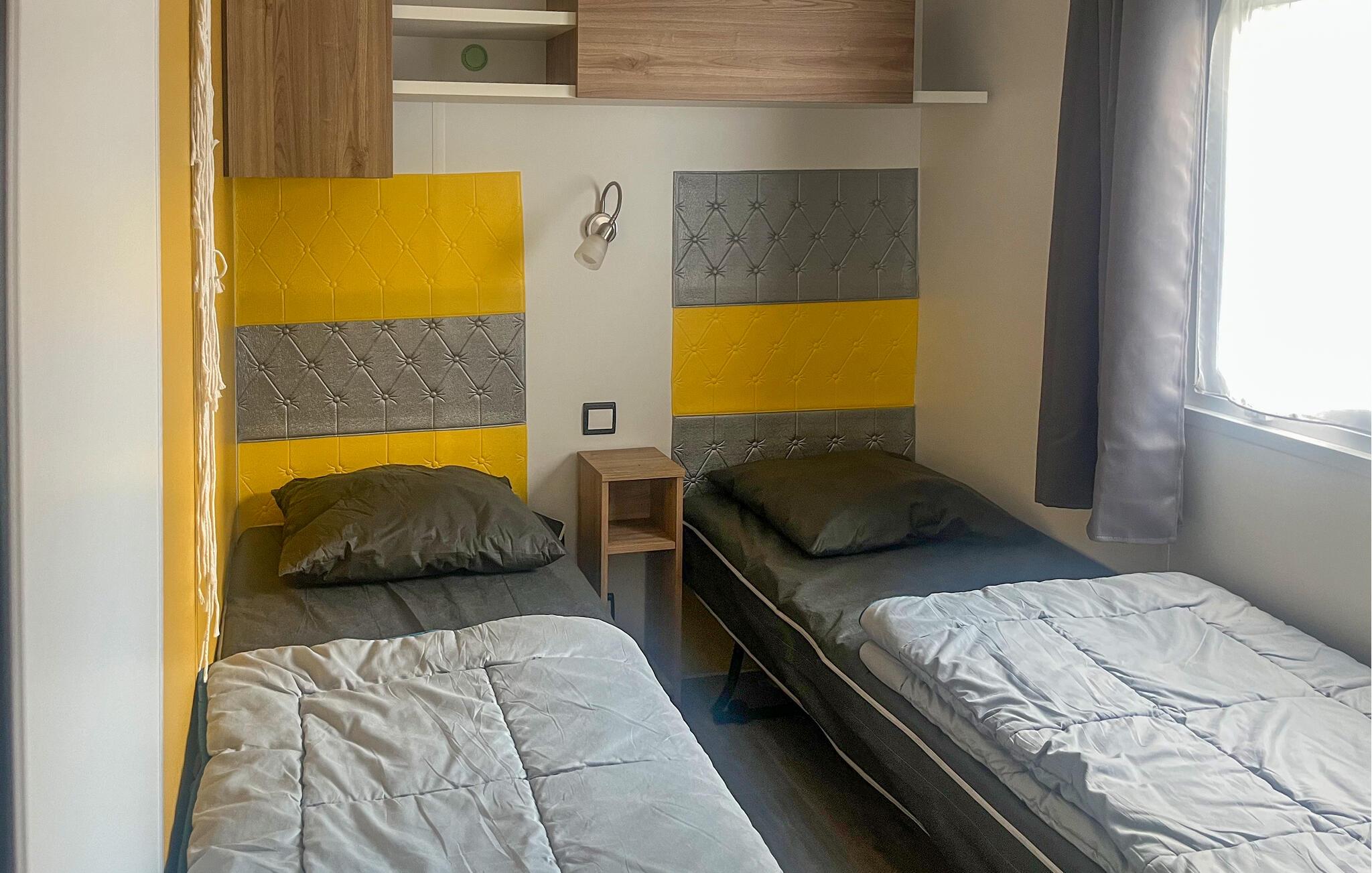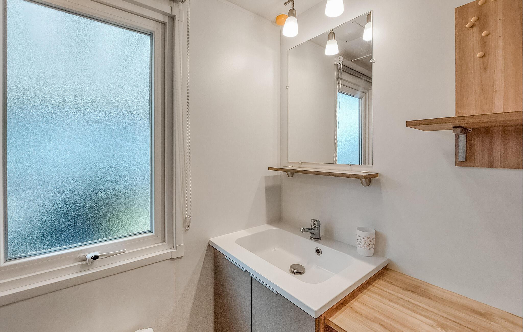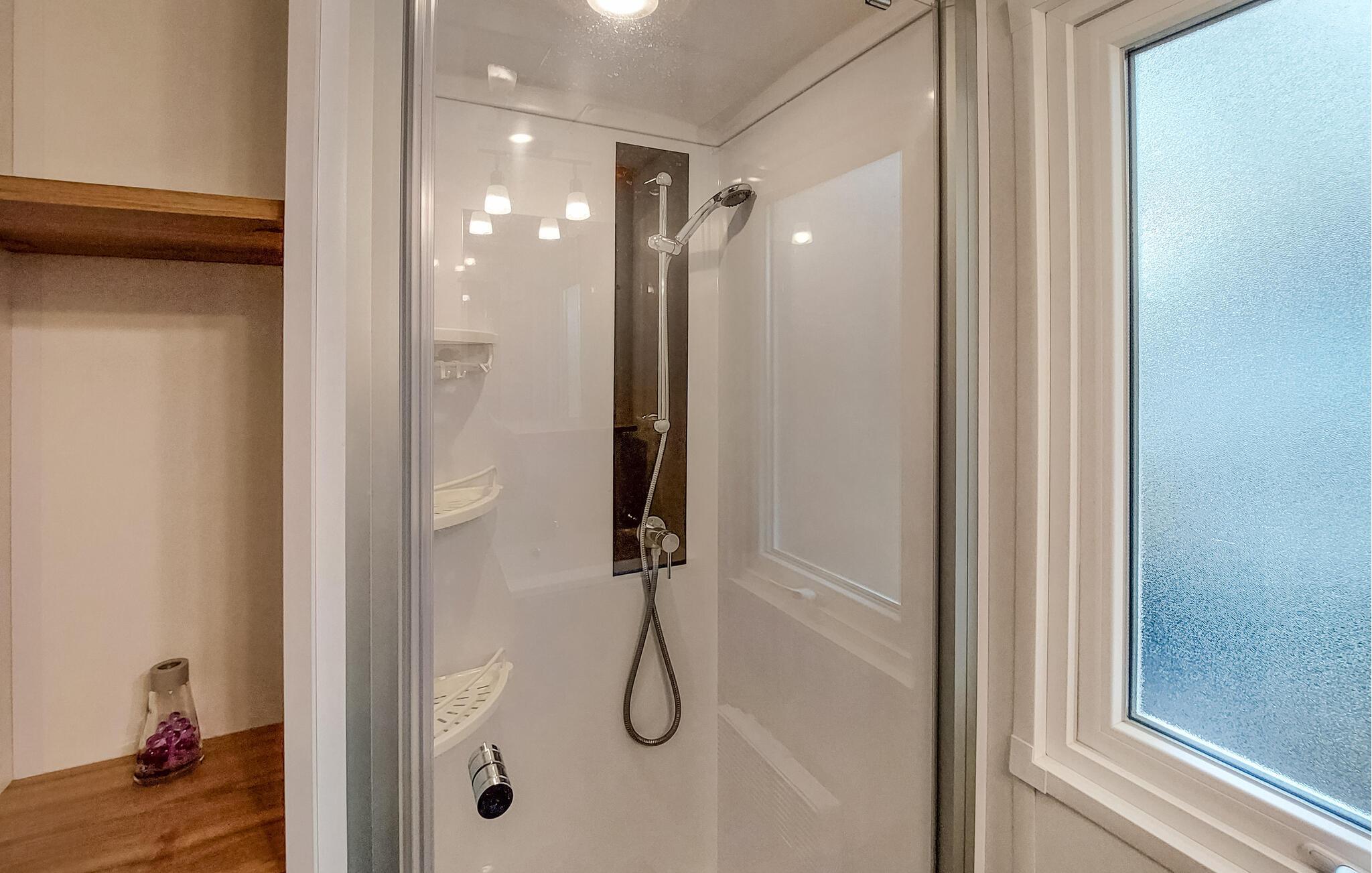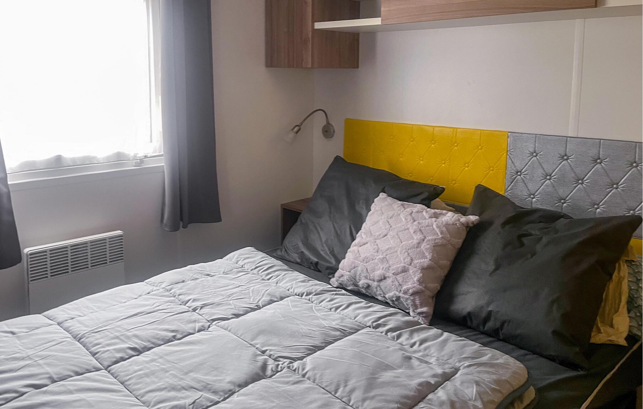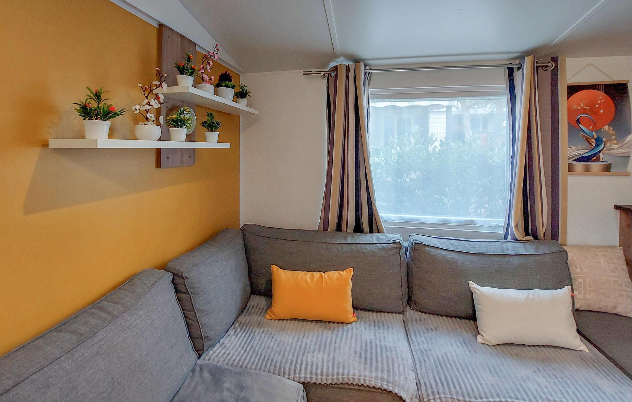 Mobilhomet byder jer velkommen med sin hyggelige indretning og imødekommende atmosfære. Det praktiske interiør er veludstyret og har alt, hvad I skal bruge for et behageligt ophold. I kan føle jer godt tilpas her med familien og nyde tiden sammen.