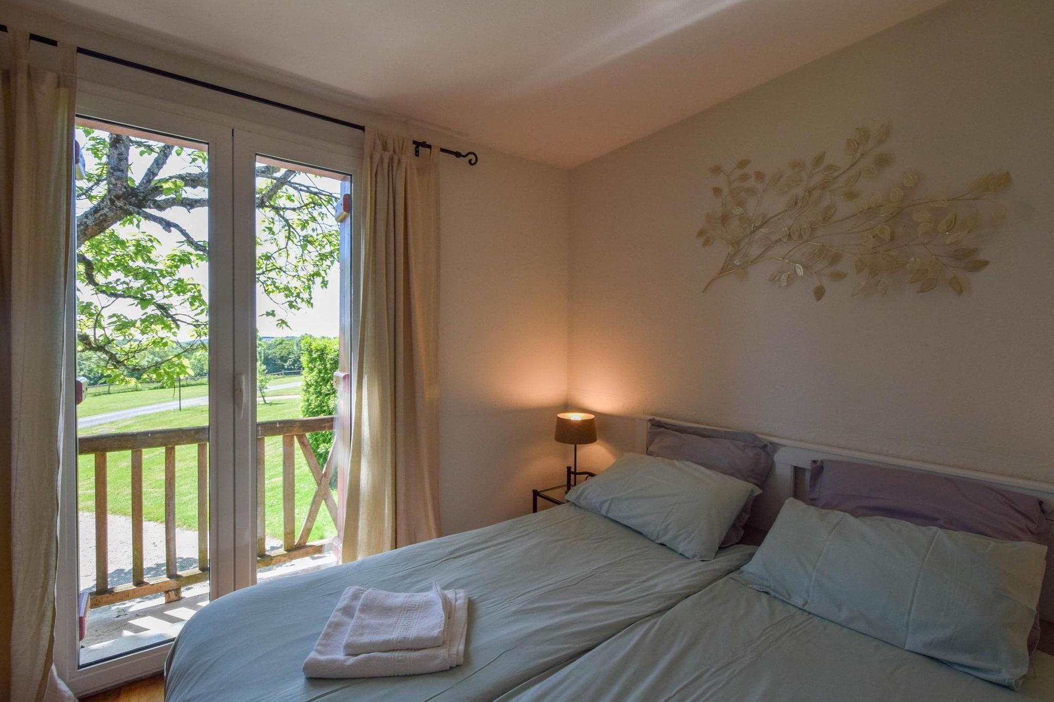 Beliggende i det rolige landskab i Saint-Médard-d’Excideuil tilbyder dette indbydende feriehus en fredelig oase omgivet af skove, åbne marker og Dordognes blide charme. Med en privat opvarmet swimmingpool, en rummelig have og masser af udendørs plads er det et ideelt sted at slappe af, nyde lange sommerdage og genoprette forbindelsen til naturen. Uanset om du svømmer, griller eller blot slapper af på terrassen, indbyder omgivelserne til ro og komfort. Indenfor er huset lyst og praktisk, perfekt til familier eller en lille gruppe. Stueetagen har to soveværelser med to enkeltsenge og et badeværelse med bruser, håndvask og toilet. Ovenpå ligger en hyggelig stue-spisestue med fladskærms-tv ved siden af et fuldt udstyret køkken med espressomaskine, ovn, mikrobølgeovn, opvaskemaskine, køleskab med fryser og alle de grundlæggende madlavningsfaciliteter. Et andet soveværelse med eget badeværelse tilbyder ekstra privatliv. Ekstra bekvemmeligheder såsom internetadgang, vaskemaskine, tørretumbler, barneseng, højstol, strygefaciliteter og privat parkering gør dit ophold nemt og bekymringsfrit. Beliggenheden tilbyder både ro og bekvemmelighed. På selve ejendommen finder du en skov, en sø, restauranter og masser af natur at nyde. Der ligger en café kun 100 m væk, og landsbyen Excideuil ligger kun 5 km fra huset. For aktiviteter kan gæsterne benytte sig af tennisbanen eller de tilgængelige cykler. Lufthavnene i Limoges og Brive (60 km), Bergerac (90 km) og Bordeaux (200 km) tilbyder gode rejsemuligheder. Uanset om du udforsker lokale landsbyer, går på skovstier eller slapper af ved poolen, er dette feriehus en komfortabel og fredelig base for at opdage Périgords skønhed.