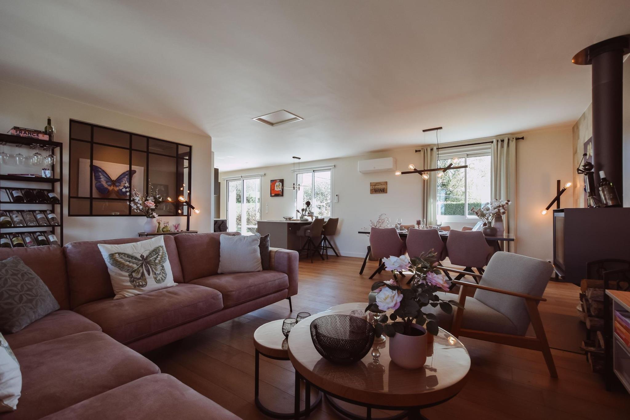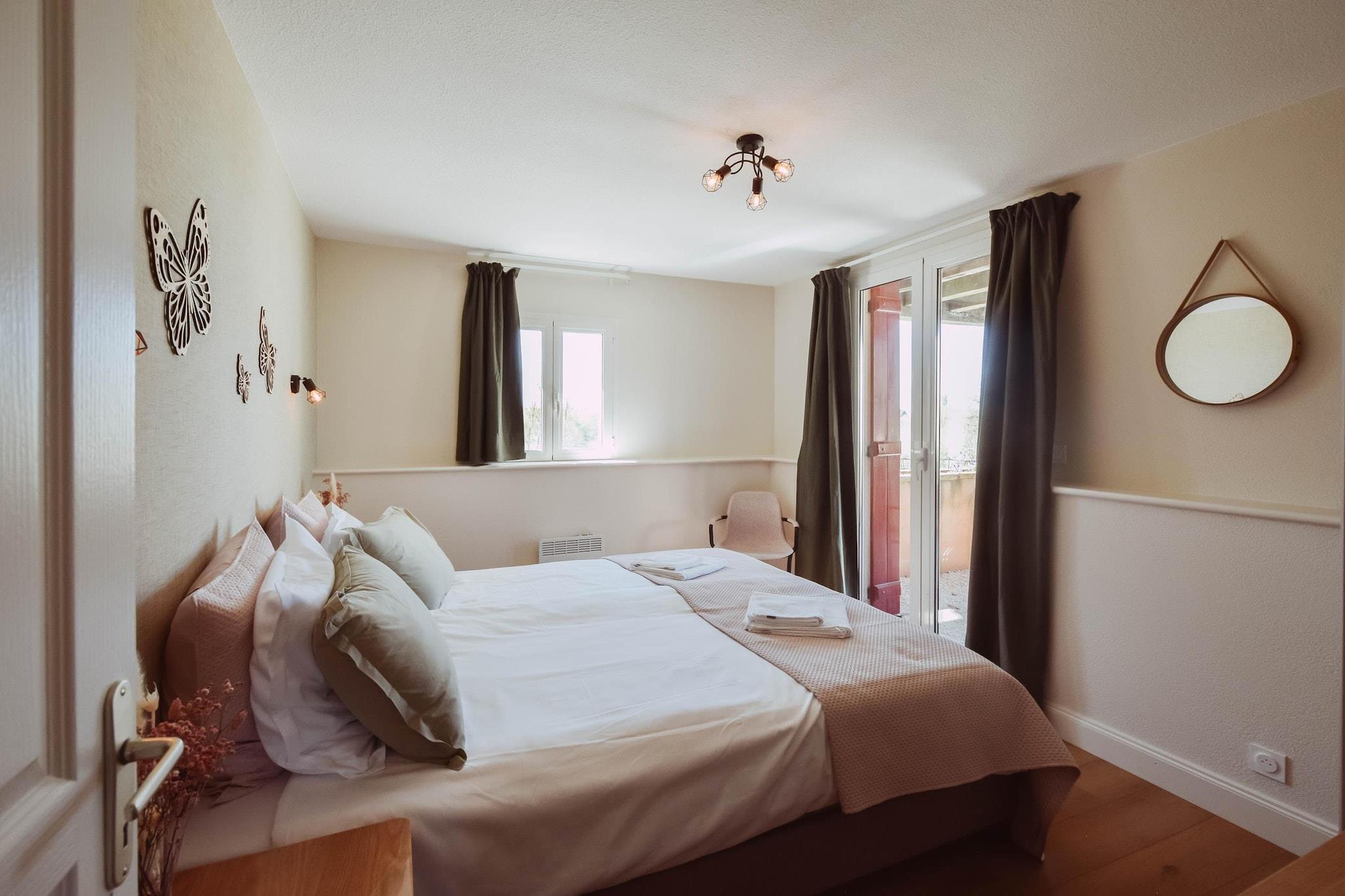 Beliggende i hjertet af Dordogne-landskabet tilbyder dette smukt renoverede feriehus til seks gæster en fredelig oase med en fantastisk udsigt over Domaine d’Essendiéras slotte og golfbane. Med aircondition, elegant interiør og en privat opvarmet pool er det et sted designet til lange solrige dage, rolige morgener og aftener tilbragt sammen i naturen. Uanset om du rejser med familie eller venner, føles huset øjeblikkeligt indbydende og blander komfort med Périgords charme. Indenfor er der på første sal en lys stue/spisestue, der åbner ud til en overdækket terrasse, det perfekte sted til udendørs måltider eller til at nyde panoramaudsigten. Det fuldt udstyrede køkken er direkte forbundet med haven og poolen, hvilket gør sommerlivet ubesværet. Huset har tre dobbeltværelser: et ovenpå med eget brusebad og to nedenunder, der deler et andet moderne badeværelse. Højkvalitetsfaciliteter såsom hurtigt fiberinternet, HDTV, pejs, espressomaskine, opvaskemaskine, vaskemaskine og tørretumbler sikrer et ophold, der føles både behageligt og bekvemt. Udenfor inviterer den private opvarmede pool (åben maj til september) dig til at slappe af i total privatliv, omgivet af åben udsigt og rolige grønne områder. Gæster på Domaine kan nyde en bred vifte af aktiviteter: golf, tennis, padel, fodbold, petanque, legepladser, vandcykler i fiskedammen og utallige vandre- eller mountainbike-stier. Med sengelinned inkluderet, slutrengøring inkluderet, cykler tilgængelige i receptionen, levering af frisk brød på forespørgsel og gratis på stedet. parkering, alt er klar til en ubekymret ferie i et af de smukkeste hjørner af Dordogne.