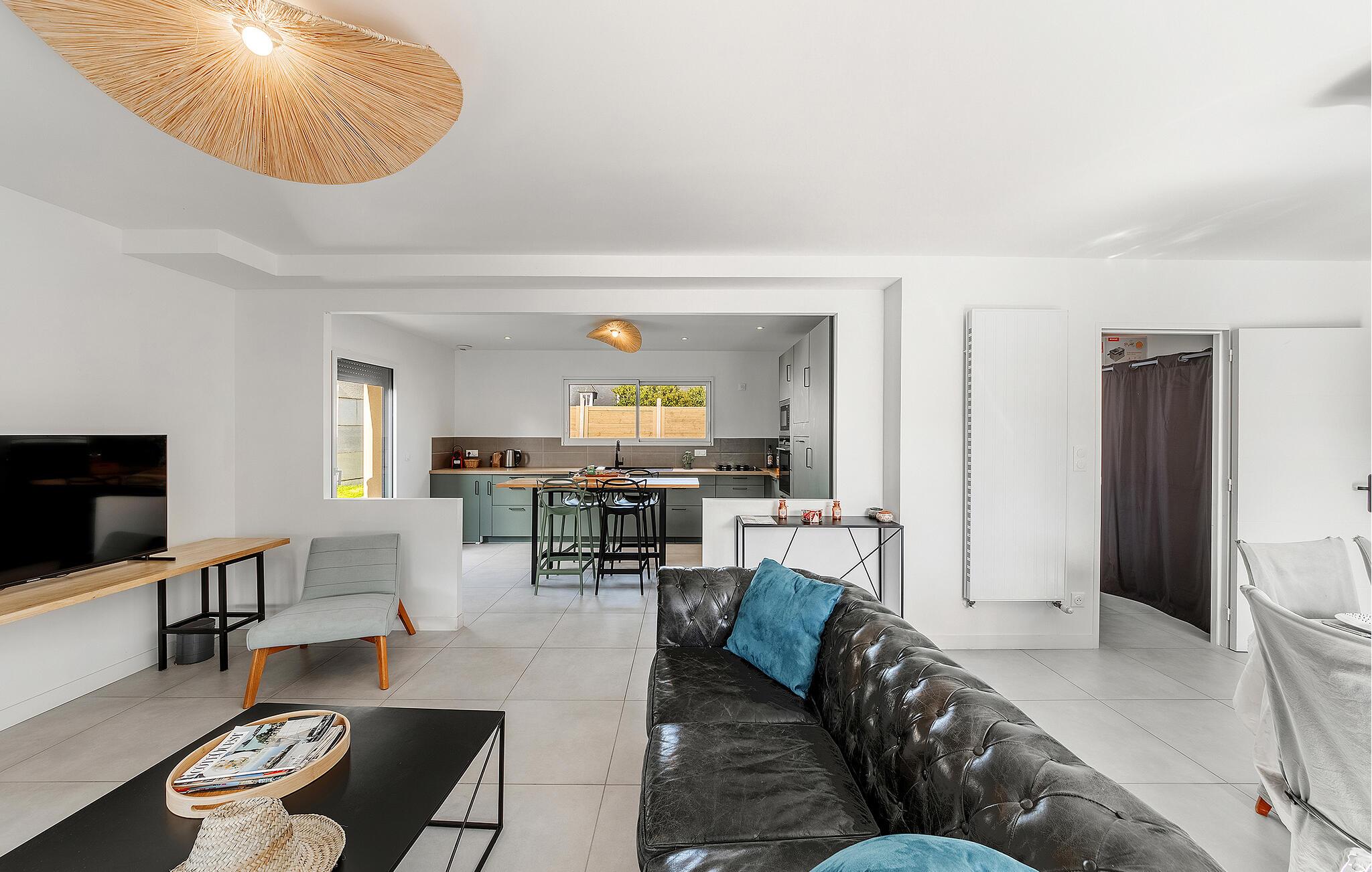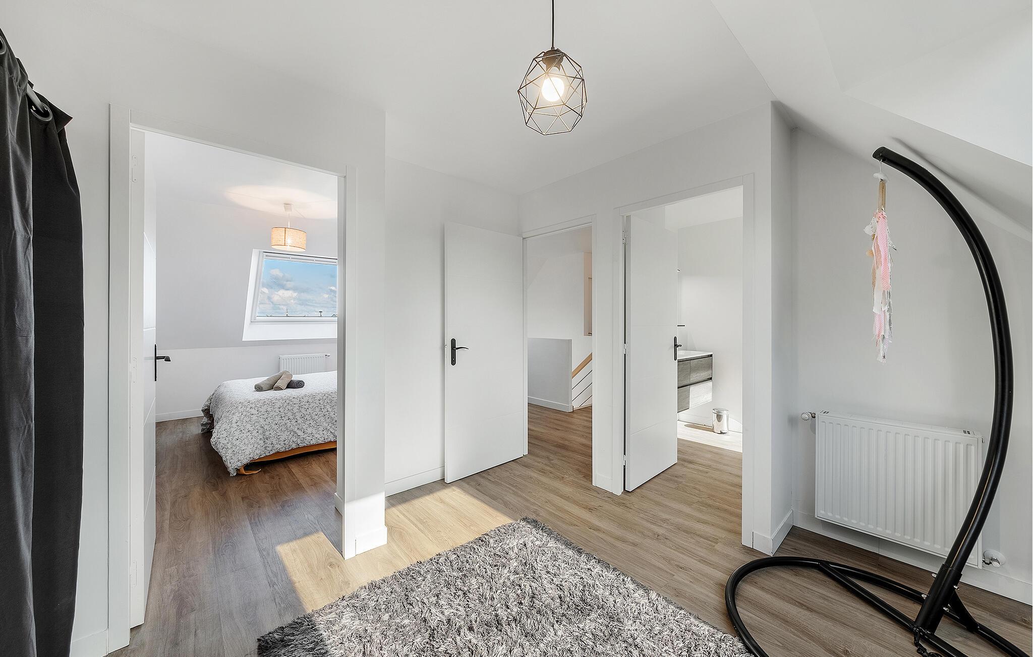 Dette rummelige og funktionelt indrettede feriehus tilbyder alt, hvad I behøver for et afslappende ophold. De lyse rum og det moderne design skaber en indbydende atmosfære, hvor I straks føler jer velkomne. Med et veludstyret køkken og komfortable opholdsområder bliver det nemt at føle sig hjemme. Nyd solrige eftermiddage på træterrassen eller afslappende aftener i den store have – jeres private oase til ren afslapning.