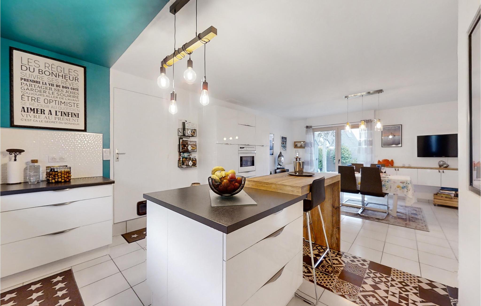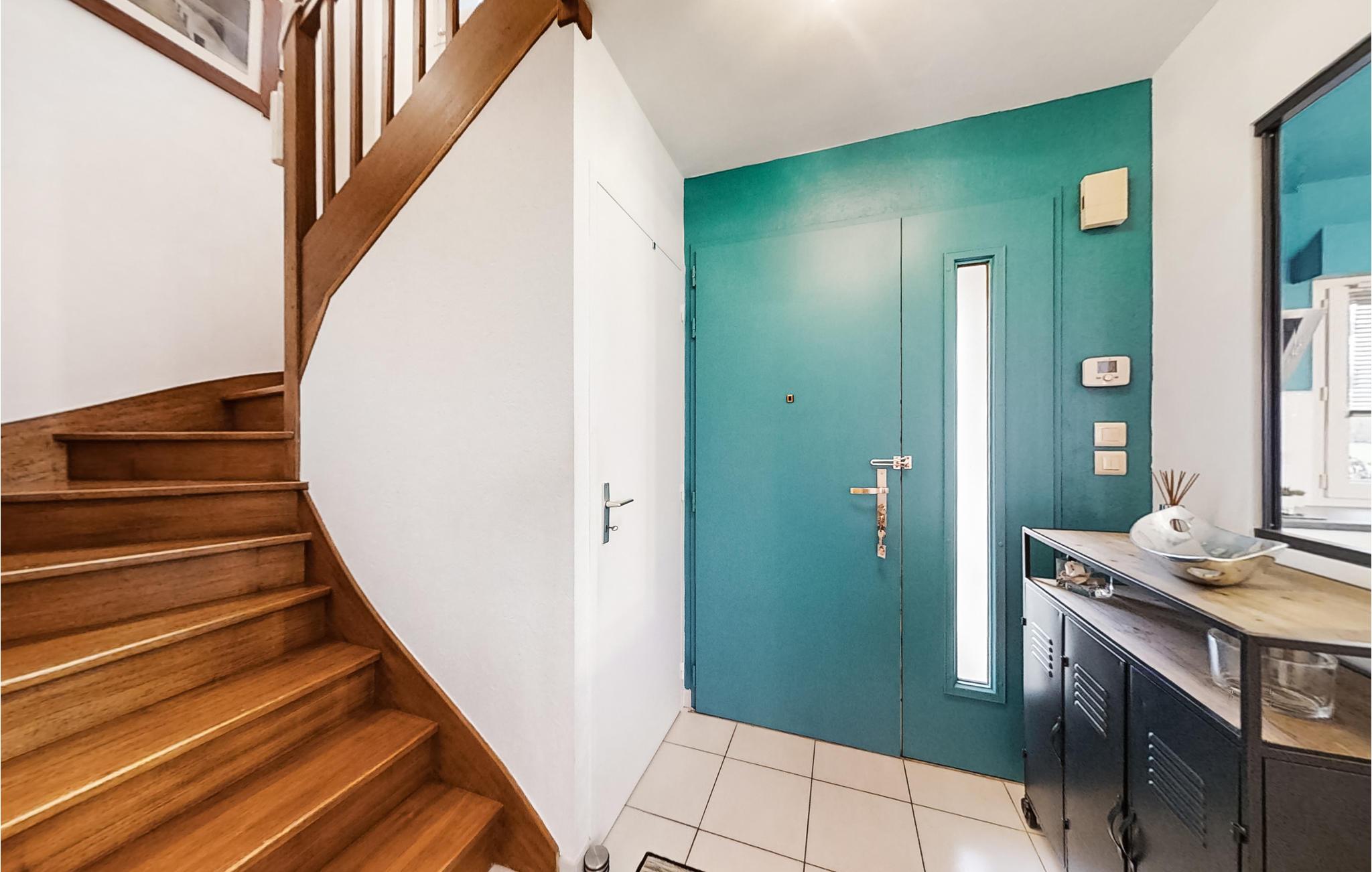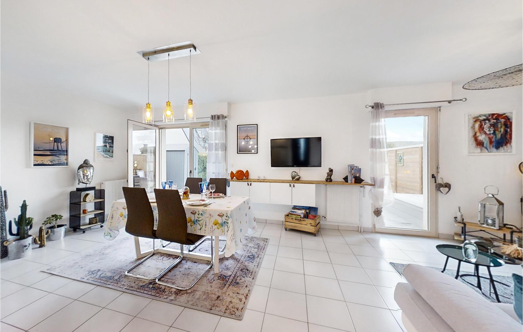 Glæd jer til en dejlig ferie i dette indbydende feriehus med en moderne indretning, livlige detaljer og flotte farver. Her kan I se frem til nogle afslappende nætter i soveværelserne og samles til en lækker morgenmad i den åbne stue. I kan også gå ud på terrassen med jeres morgenkaffe og nyde solens første stråler. Bagefter kan I slappe af på liggestolene, og skulle I få brug for mere skygge, kan I forlænge markisen.