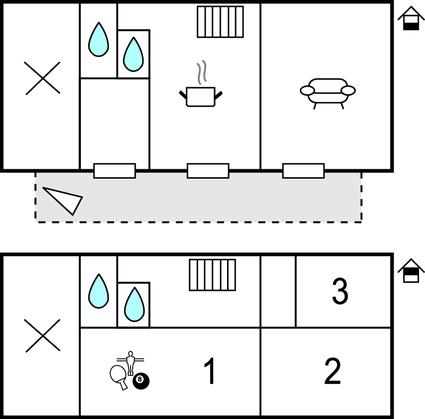 Badeværelse 5m2 (nr. 1) - Varmt og koldt vand. Håndbruser og badekar