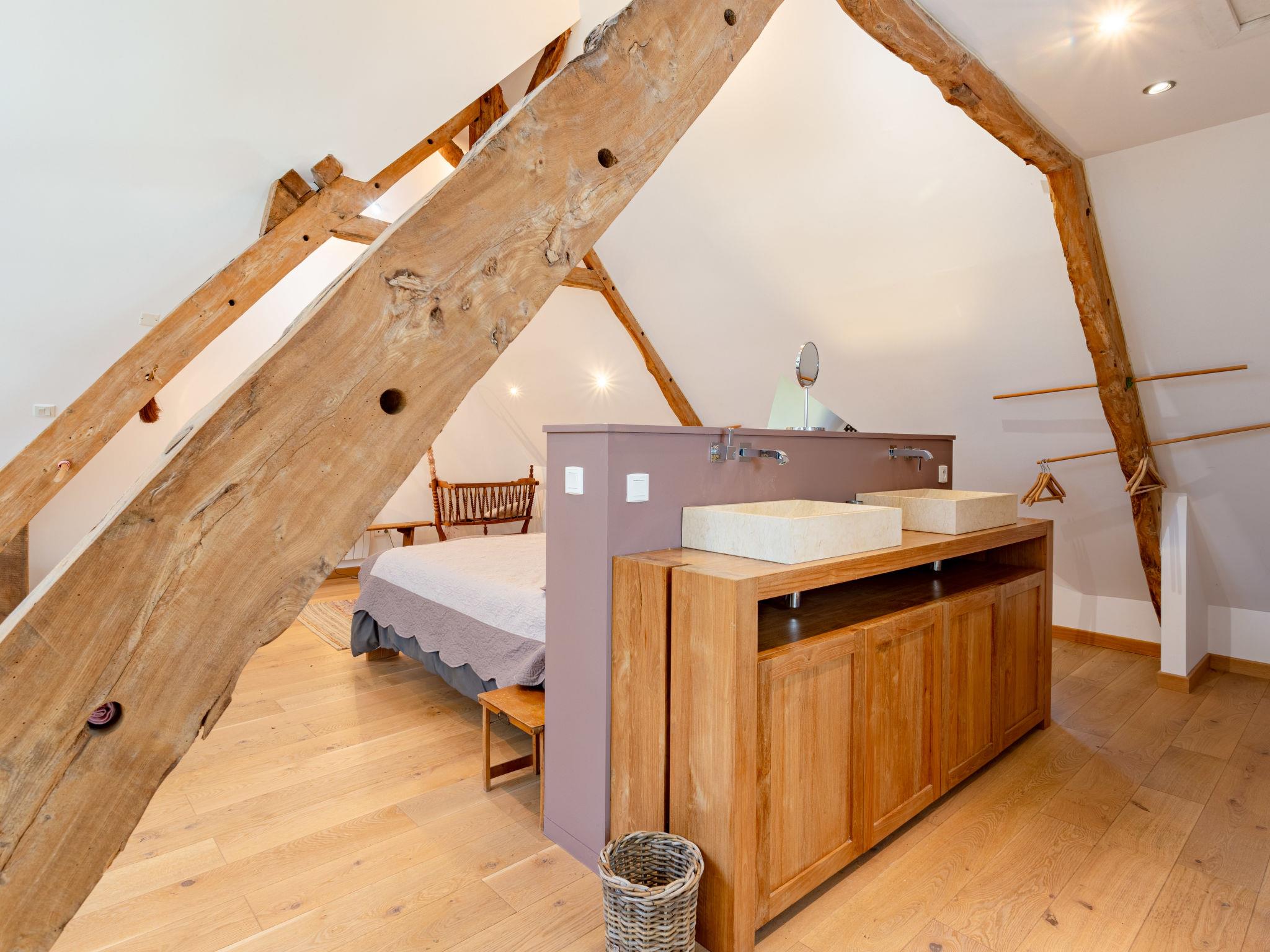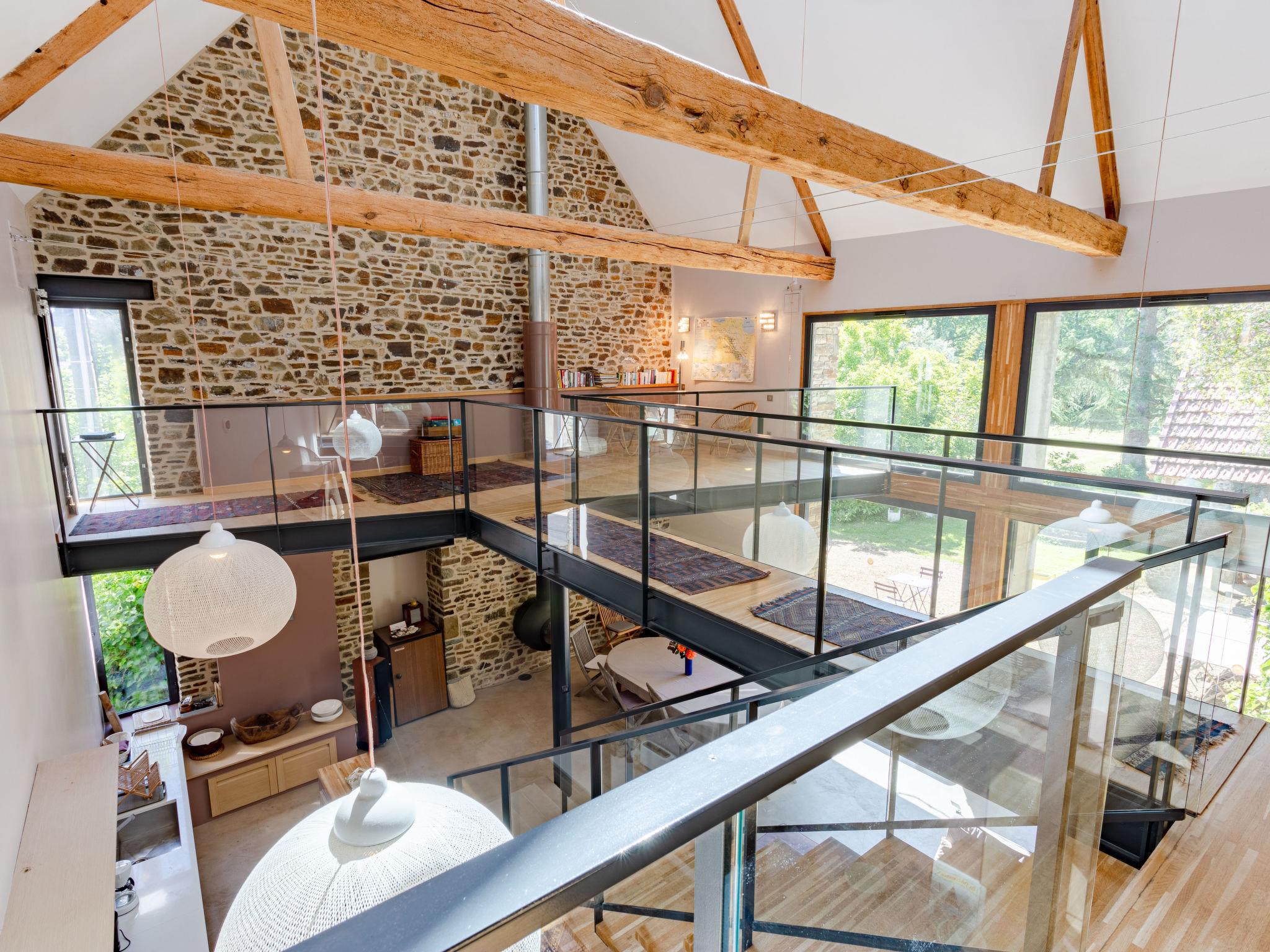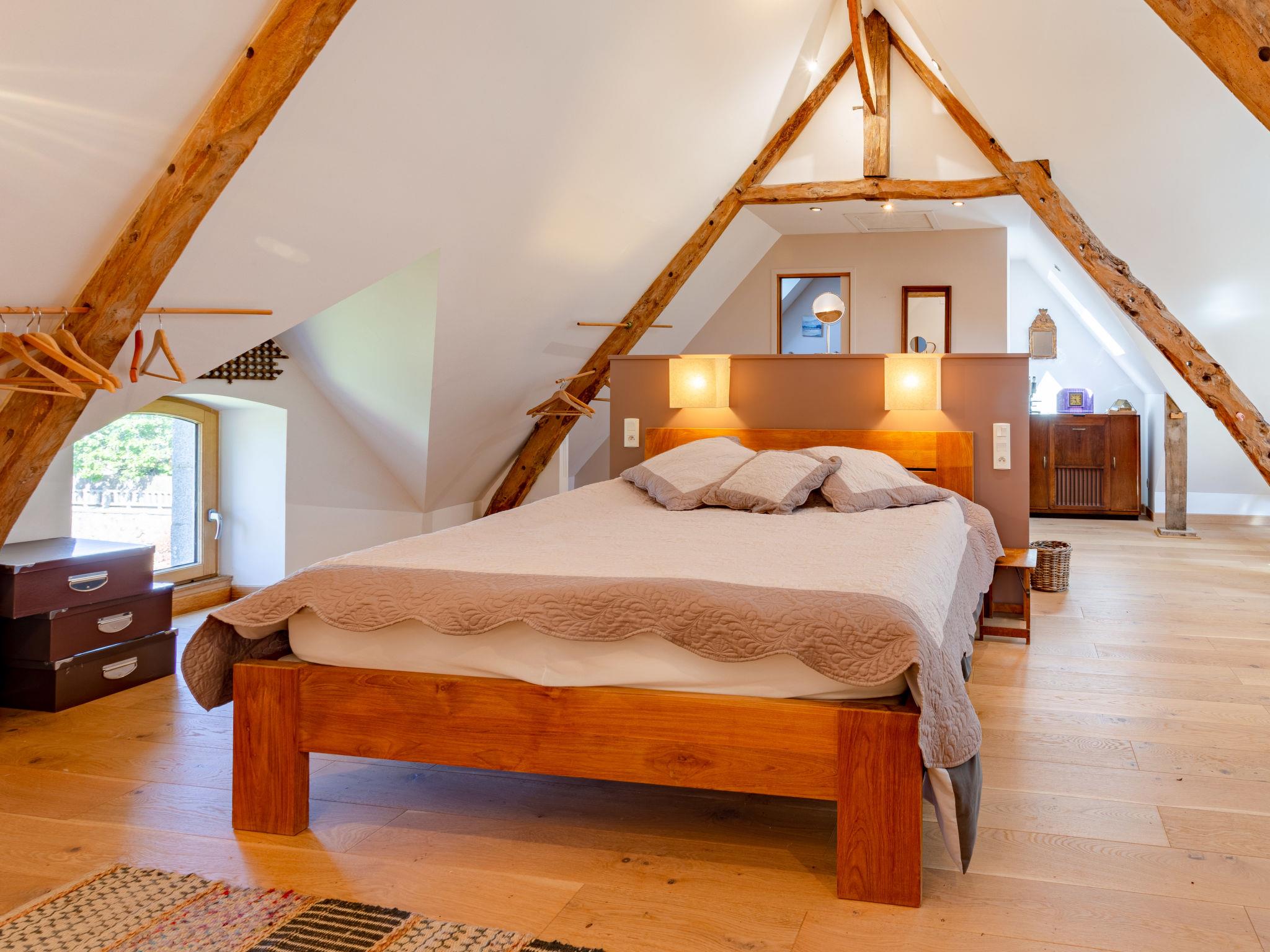 6-room house 290 m2 on 3 levels, south facing position. Modern furnishings: living/dining room 89 m2 with Scandinavian wood stove. Exit to the garden, to the terrace, south facing position. Lounge with 1 double sofabed (130 cm), open-hearth fireplace. Open kitchen (oven, dishwasher, 4 induction hot plates, microwave) with bar. Shower/WC, sep. WC. Electric heating. Upper floor: 1 room with sliding door with 1 french bed (160 cm). 1 room with sliding door with 1 x 2 bunk beds (90 cm). 1 room with 1 french bed (160 cm). Bathroom, sep. WC. 2nd upper floor: 1 large room with sloping ceilings with 1 french bed (160 cm), shower and double hand-basin. Sep. WC. Large garden 300 m2. Deck chairs (5). Facilities: washing machine, children's high chair, baby cot for up to 3 year olds, logs (free). Internet (WiFi, free). Please note: non-smoking house. Smoke alarm.