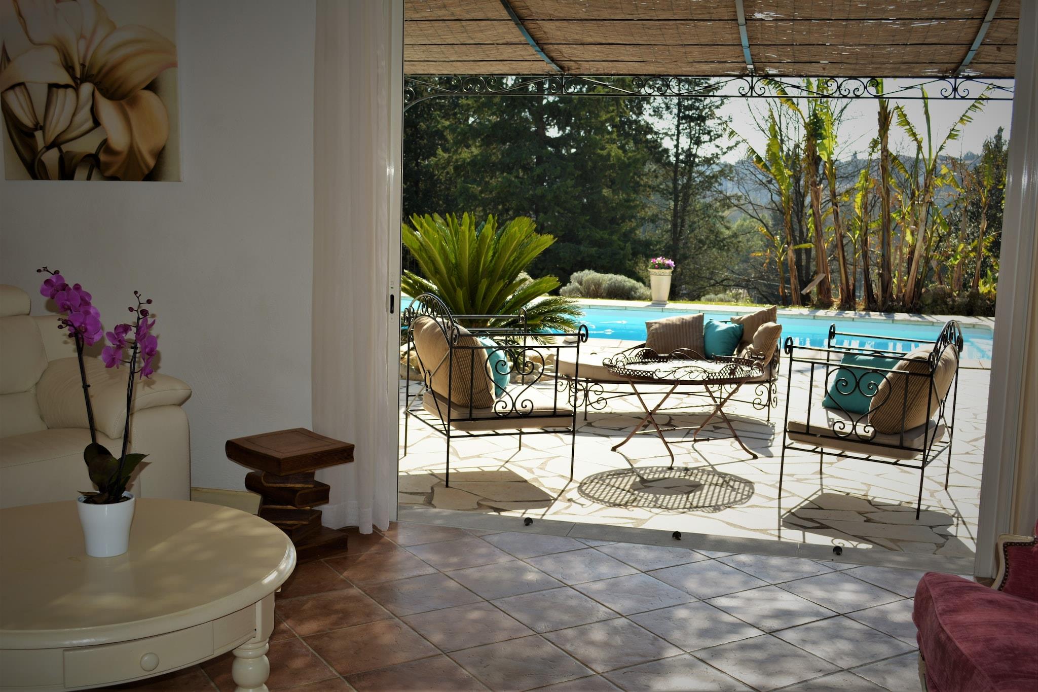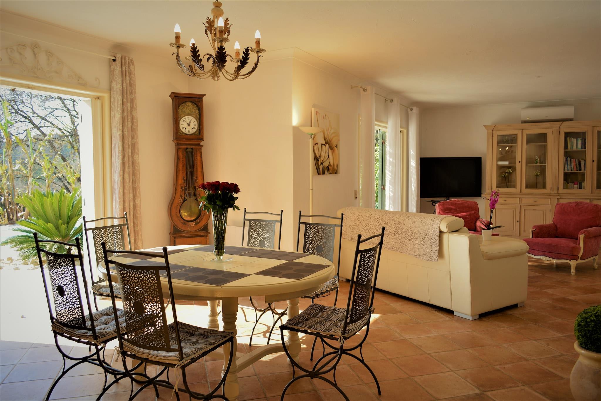 Provencalsk charme med privat pool og have Flygt til en fredfyldt villa kun 1,3 km fra den fortryllende kunstnerlandsby Saint-Paul-de-Vence. Beliggende i en smukt anlagt, indhegnet have (1800 m²), kombinerer denne 3-værelses villa autentisk provencalsk karakter med moderne komfort. Slap af ved din private pool (9 x 4,5 m), nyd petanque i forhaven, eller slap af under den overdækkede terrasse med en afkølet rosé i hånden. Med plads til op til 6 gæster er det en rolig oase for familier, par og venner - plus kæledyr er hjerteligt velkomne! Ideel beliggenhed for opdagelsesrejsende med kæledyr Udforsk de brostensbelagte gader i Saint-Paul-de-Vence med din hvalp, hvor kunstgallerier, caféer og kæledyrsvenlige butikker venter. Kun 12 km væk tilbyder strandene i Cagnes-sur-Mer hundevenlige strækninger til spadsereture ved havet. Nærliggende vandrestier, olivenlunde og lokale markeder giver uendelige muligheder for at nyde regionen med din lodne følgesvend. Og for golfspillere ligger den prestigefyldte Cannes Mougins-klub kun 15 km væk. Spis, slap af og genoplad Nyd gårdens friske retter på lokale restauranter kun 1,5 km fra villaen, eller lav din egen fest i det veludstyrede køkken eller på gas-/kulgrillen. Villaen tilbyder aircondition, højhastigheds-WiFi, internationalt tv og endda en gratis 22kW EV-ladestation. Med liggestole, frodige haver og stjerneklare provencalske nætter er dette hjem, hvor afslapning møder raffinement - for både dig og dit kæledyr.