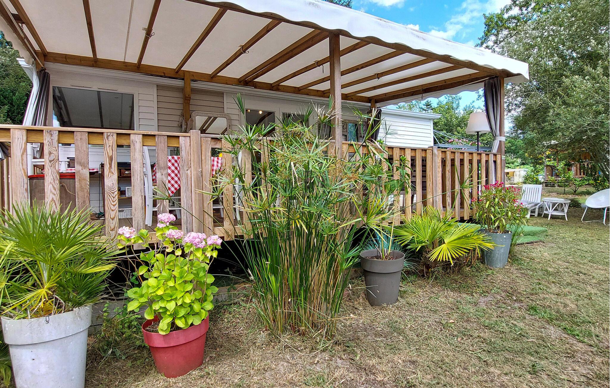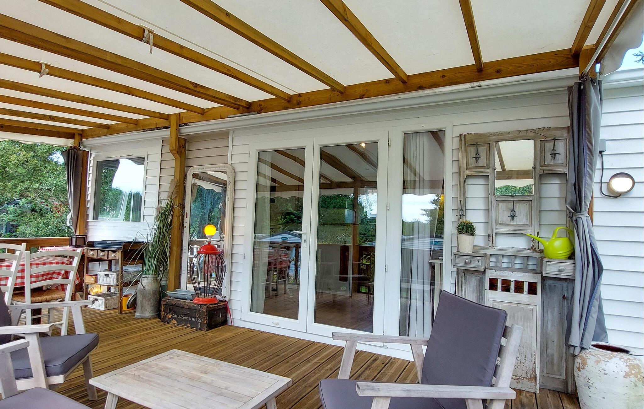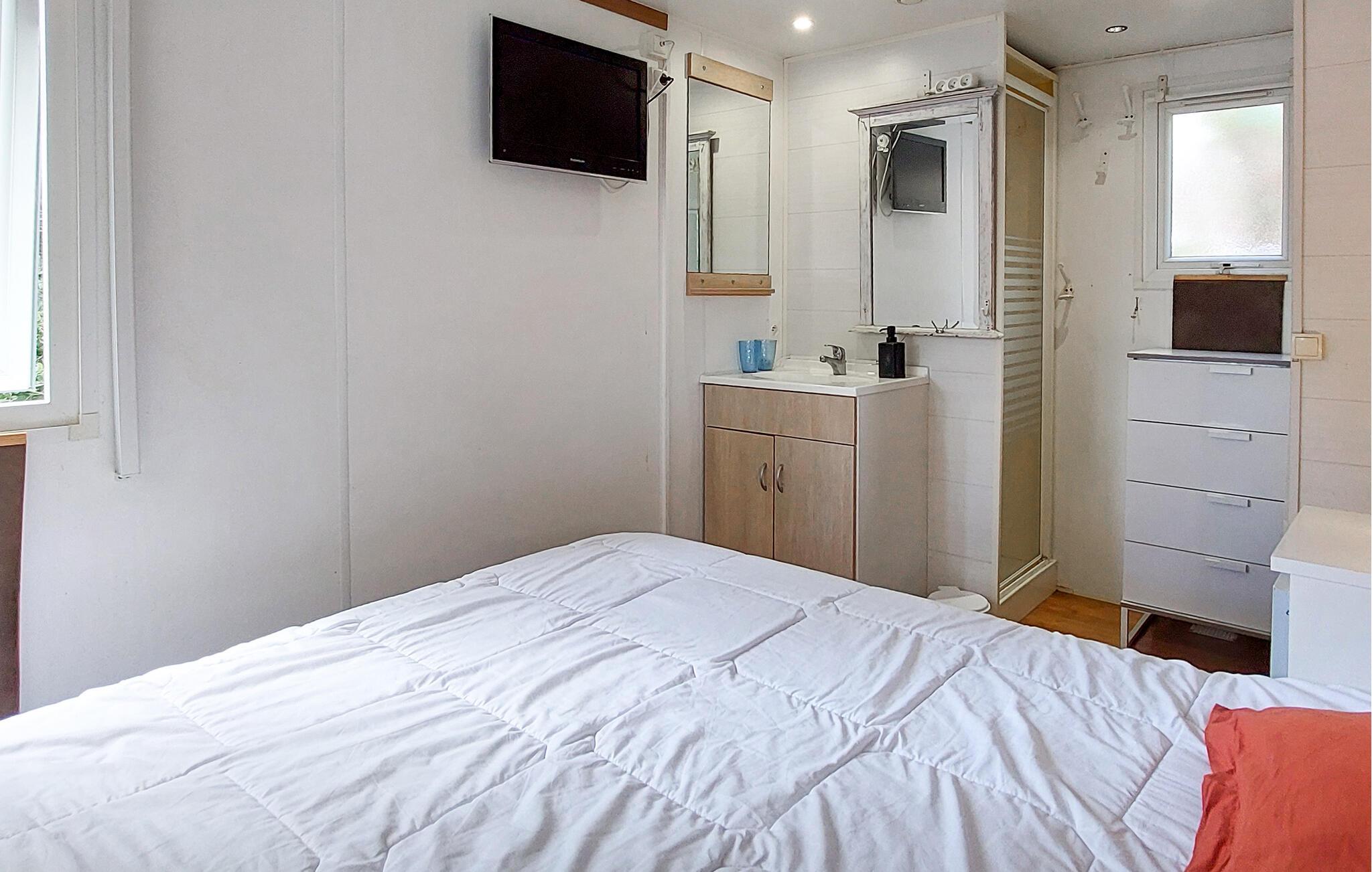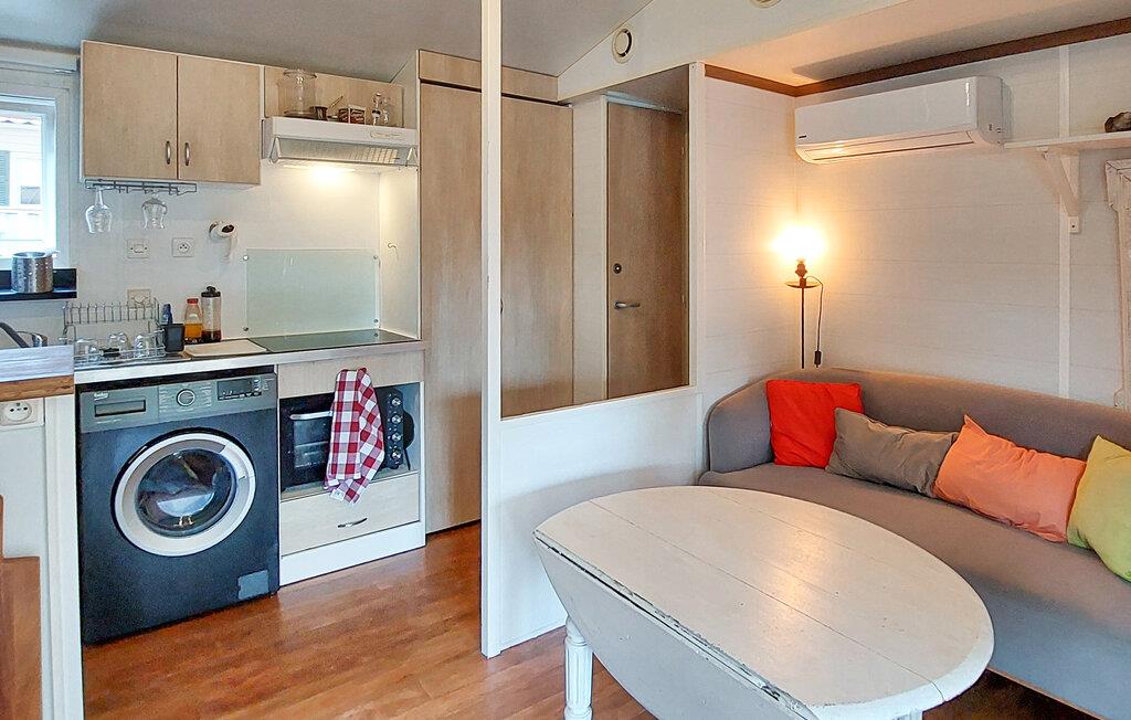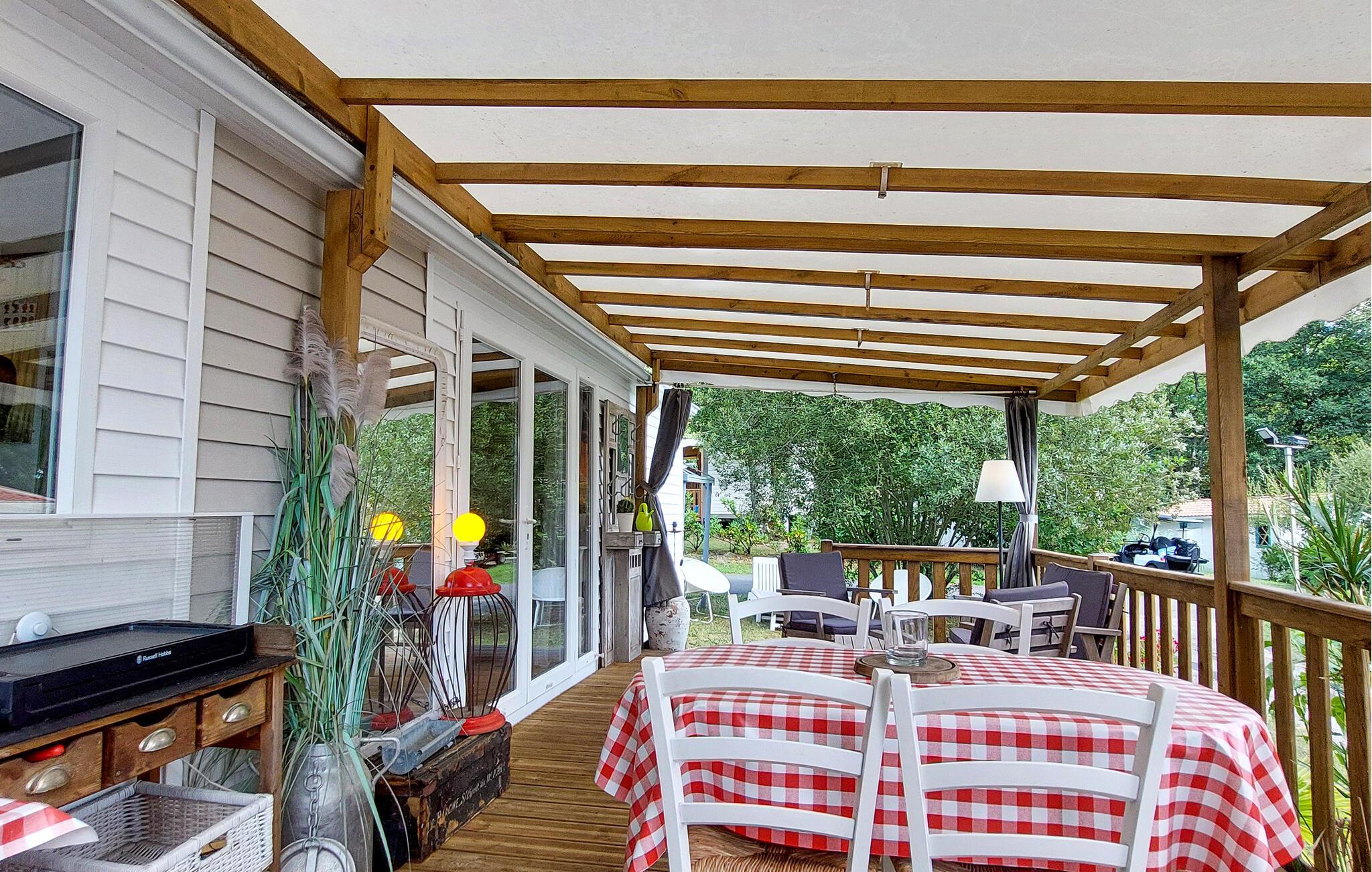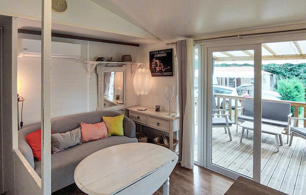 Overrask jeres familie med en oplevelsesrig ferie i dette charmerende feriehus med adgang til pool. Velkommen til dette hyggelige mobilhome, hvor I kan nyde en solrig ferie med et udvalg af fritidsaktiviteter. Fremstil jeres yndlingsretter, planlæg jeres aktiviteter over harmoniske måltider, og afrund en aktiv dag med en sjov spilleaften. Server en lækker morgenmad på jeres rummelige, sydvendte veranda. Forfrisk jer i den store pool, og lad jeres børn få nye venner på fodboldbanen eller trampolinen. Spil bordtennis, petanque eller volleyball, og server kølige drinks i skyggen af jeres lille, grønne naturgrund. Udforsk den charmerende gamle bydel i Dax, og forkæl jer selv med en dag med wellness i dens termiske bade. Cykl langs floderne Adour og Midouze, vandr gennem den idylliske naturpark Landes de Gascogne, forkæl jeres børn med sjov i forlystelsesparken Aqualand, eller udforsk de kilometervis af sandstrande langs Atlanterhavskysten på en dagstur.