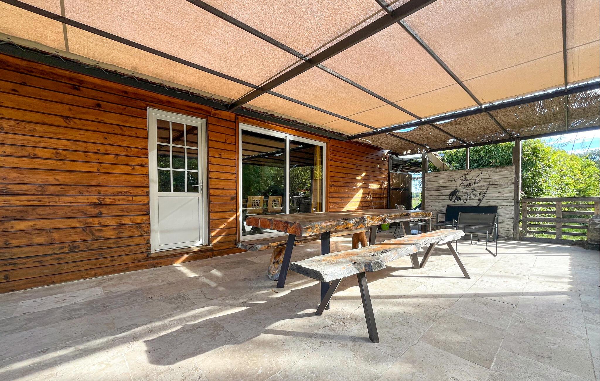 Jeres store, skyggefulde terrasse er det ideelle sted til en solid morgenmad med udsigt over naturen. I de varme sommermåneder kan I nyde roen med en forfriskende dukkert i dammen og se frem til stemningsfulde grillaftener under åben himmel.