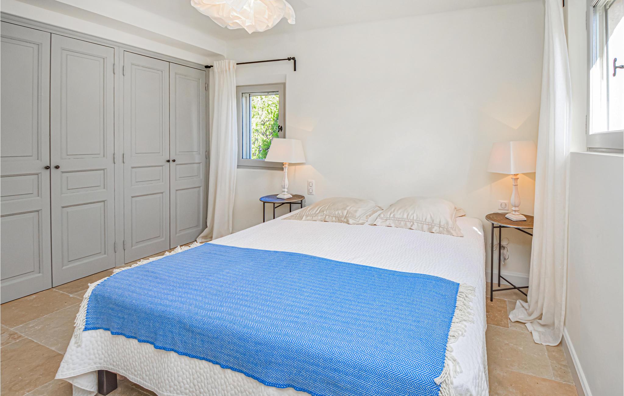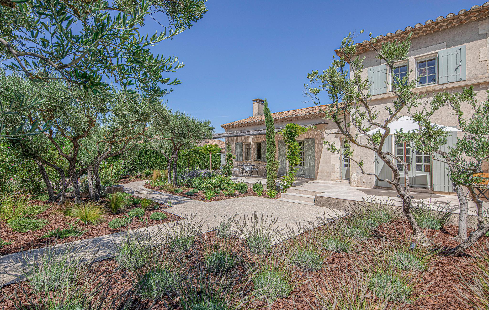 Dette fuldt airconditionerede feriehus er en sjælden perle og ligger i en smuk, indhegnet træforet hav kun få minutters gang fra centrum af Saint-Rémy-de-Provence. Det er smukt restaureret, har en dejlig terrasse ved siden af ??køkkenet med udsigt over poolen, er meget lys med tre store soveværelser og to badeværelser, hvoraf det ene har et bad. Huset har et vaskerum og et stort moderne køkken. Interiøret er elegant og meget smagfuldt indrettet i pasteltoner med synlige bjælker.