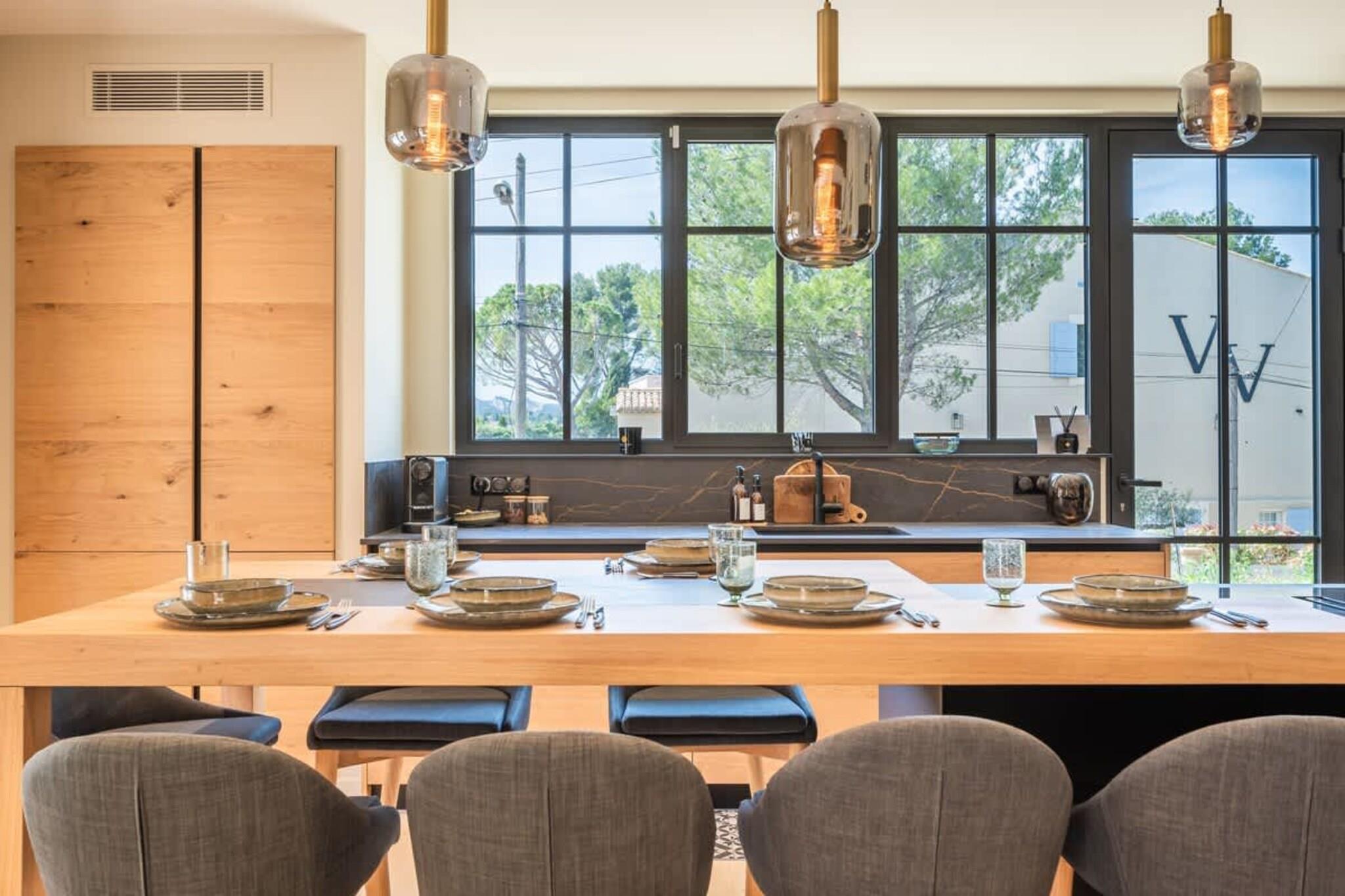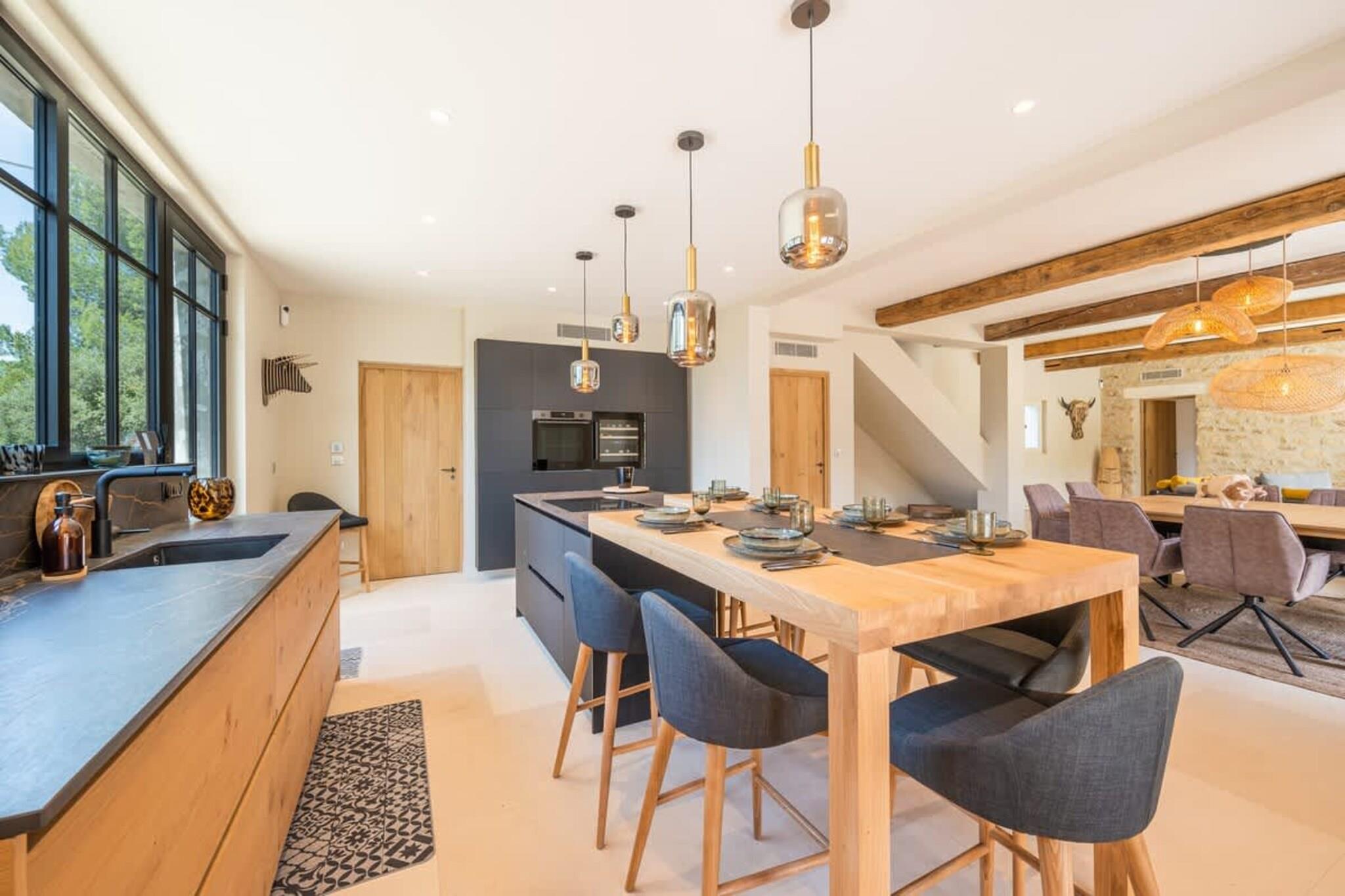 Der er en bestemt form for ro, man kun finder i Provence - oliventræer, blødt lys og stille aftener udendørs. Villa Lou Pantaï er med rette placeret i den stemning. Med et fuldstændig renoveret provencalsk hjem på en privat, grøn grund på 2.000 m² i udkanten af Alpilles Regional Naturpark, kun en kort gåtur fra centrum af Saint-Rémy-de-Provence. Villaens layout er æstetisk designet til at imødekomme komfort og luksus - i stueetagen finder du det primære opholdsområde, der samler alle, et moderne, fuldt udstyret køkken, der løber ud i spisestuen og stuen, så uanset om du laver mad, snakker eller nyder drinks, er I alle på samme sted, to soveværelser med direkte adgang til udendørs gangsti, ideelt for gæster, der kan lide at træde ud som det første med en kop kaffe. Første sal har en rummelig master suite med en overdækket terrasse og udendørs siddeområde, perfekt til afslapning i ro, og et ekstra soveværelse. Alle soveværelser er møbleret med en queensize-seng, et tv og fuldt udstyrede badeværelser. For ekstra bekvemmelighed er der et bryggers med bagage og forsyninger. Herfra kan du slentre ind i Saint-Rémys gamle gader, kigge på markeder og caféer eller besøge Saint-Paul de Mausole og det arkæologiske område Glanum, som begge ligger i nærheden og er rige på Van Gogh- og romersk historie. Eller du kan blive tilbage og nyde den enorme opvarmede pool med grøn udsigt og en kølig brise. En fredelig, poleret base i Alpilles – skabt til små grupper, der ønsker plads, komfort og nem adgang til alt, hvad der gør Provence speciel.