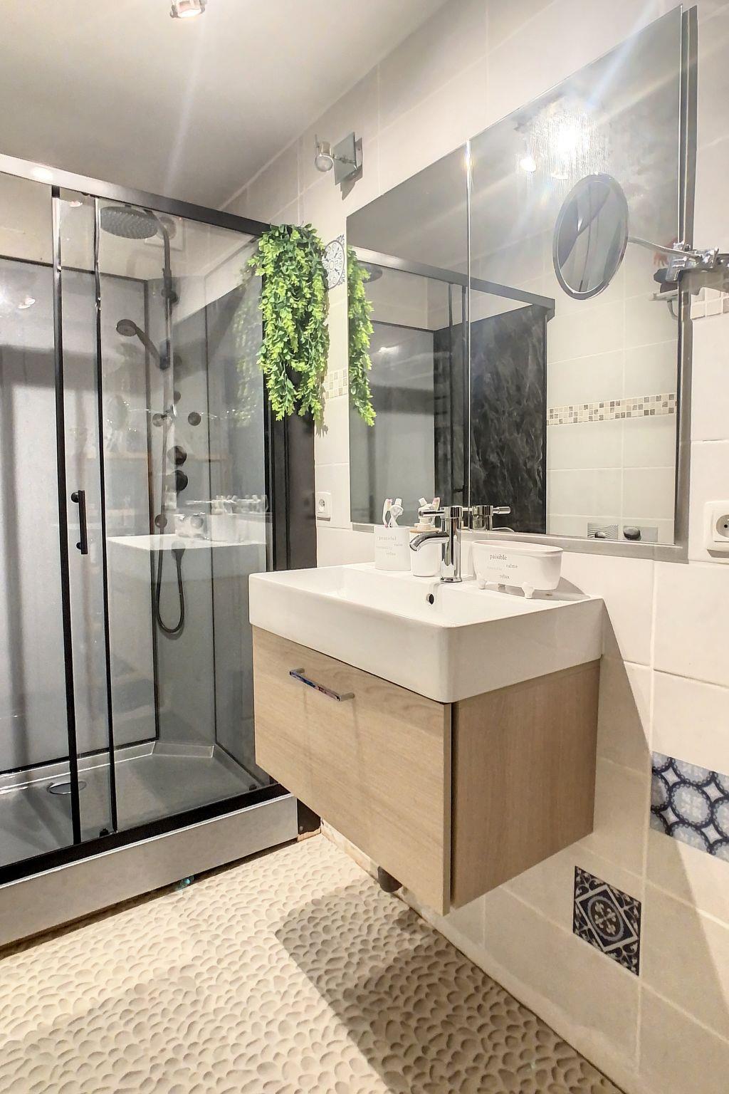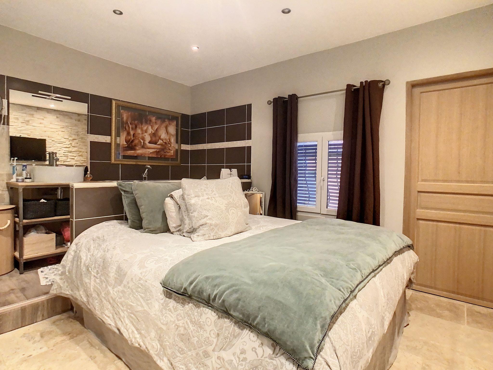 "Villa Clem", 4-room house 85 m2 on 2 levels. Modern furnishings: living/dining room with dining table, TV, flat screen, electric heating and air conditioning. Exit to the terrace, to the swimming pool. 1 large room with 1 french bed (1 x 160 cm, length 200 cm), separate WC, bath/shower, electric heating and air conditioning. Open kitchen (5 hot plates, oven, dishwasher, toaster, kettle, microwave, freezer, electric coffee machine, Capsules for coffee machine (Nespresso) extra, cooking island). Upper floor: 1 room with 1 french bed (2 x 90 cm, length 200 cm), electric heating and air conditioning. Exit to the balcony with separate WC and shower. 1 room with 1 sofabed (140 cm, length 200 cm), electric heating and air conditioning. Exit to the balcony. Large terrace 30 m2. Terrace furniture. View of the swimming pool. Facilities: washing machine, dryer, iron. Internet (WiFi, free). Parking (2 cars). Please note: non-smokers only. TV only FR. Smoke alarm. Offer by a private individual according to Art. 155, IV of CGI.