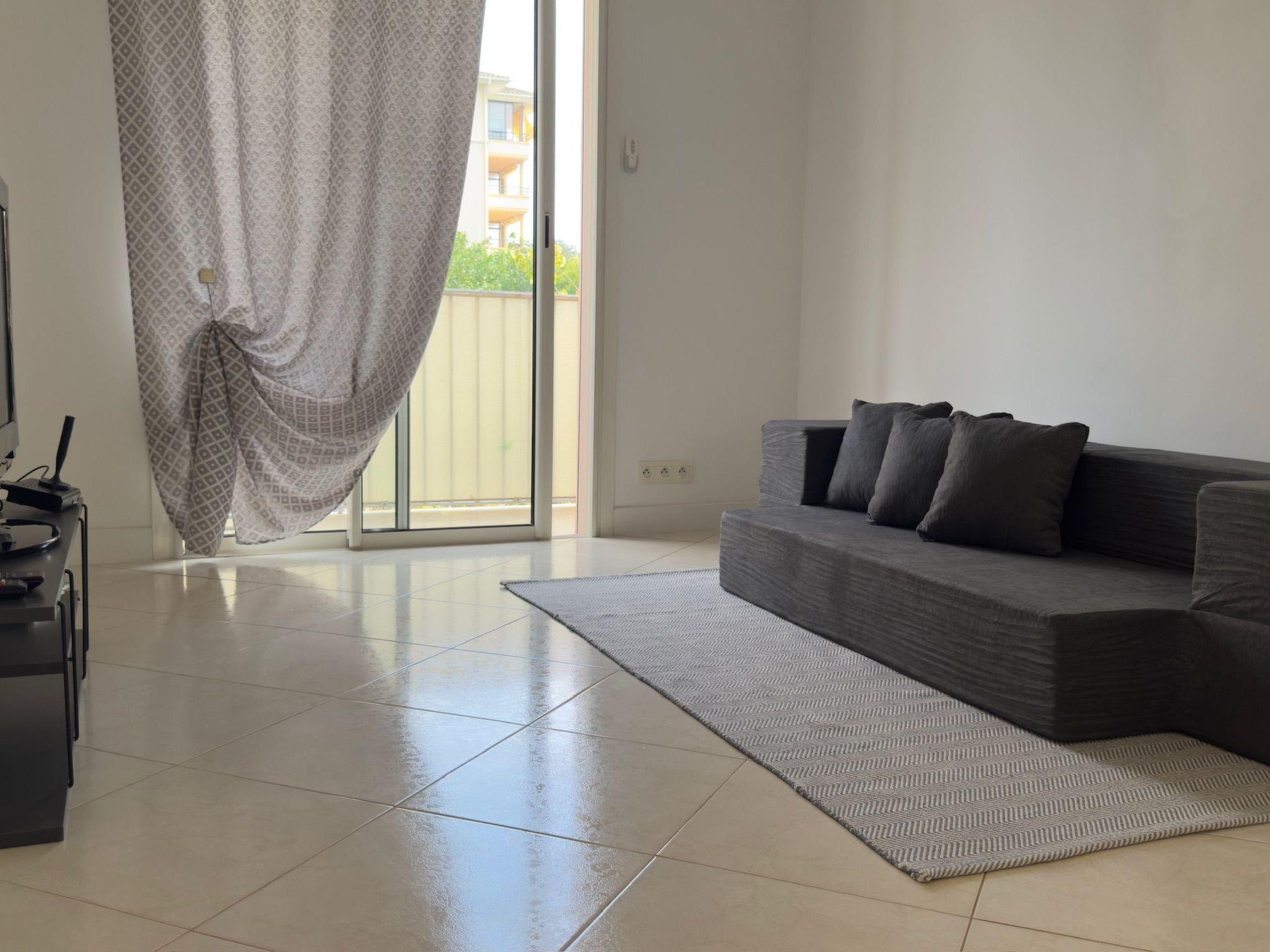 - Sleeping area in the living room with sofa bed for 2 people, flat-screen TV and access to a balcony