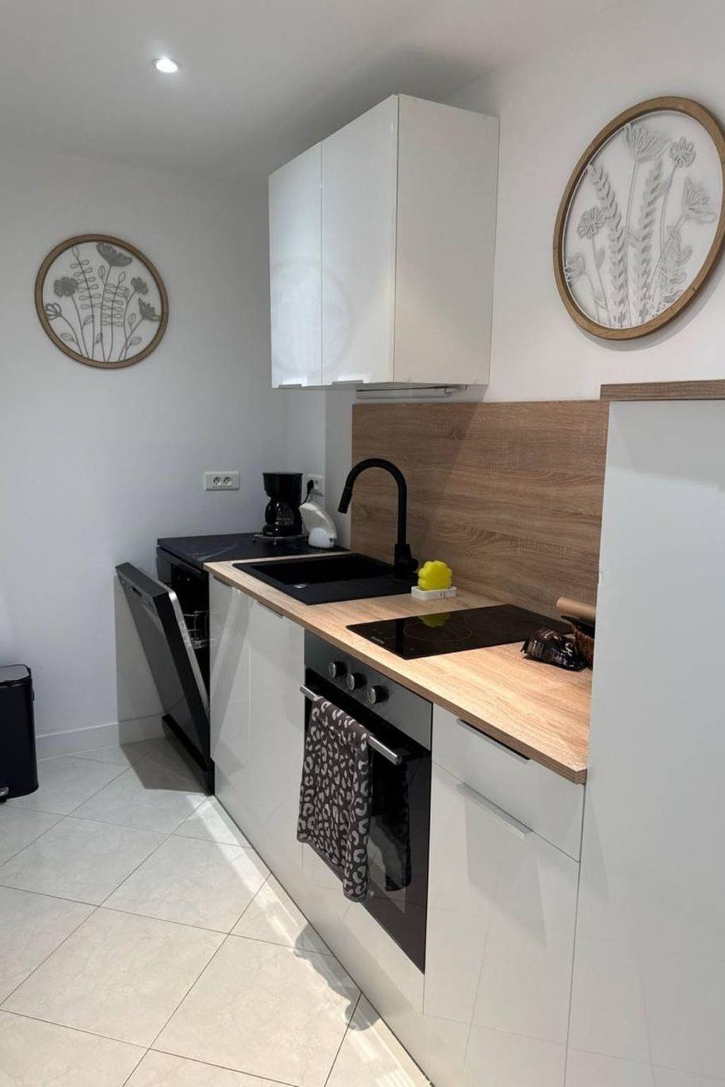 - Equipped kitchen: ceramic hob, oven, dishwasher, fridge, coffee machine, storage space