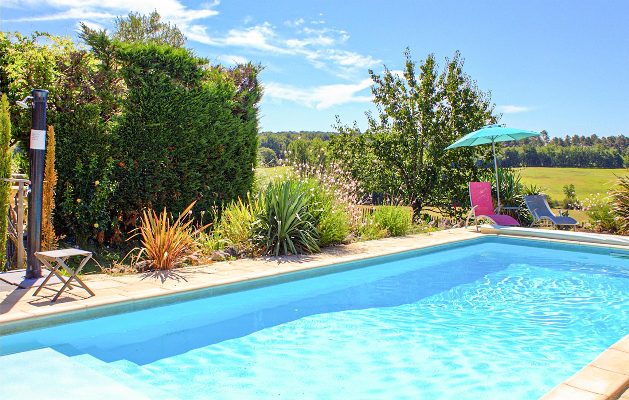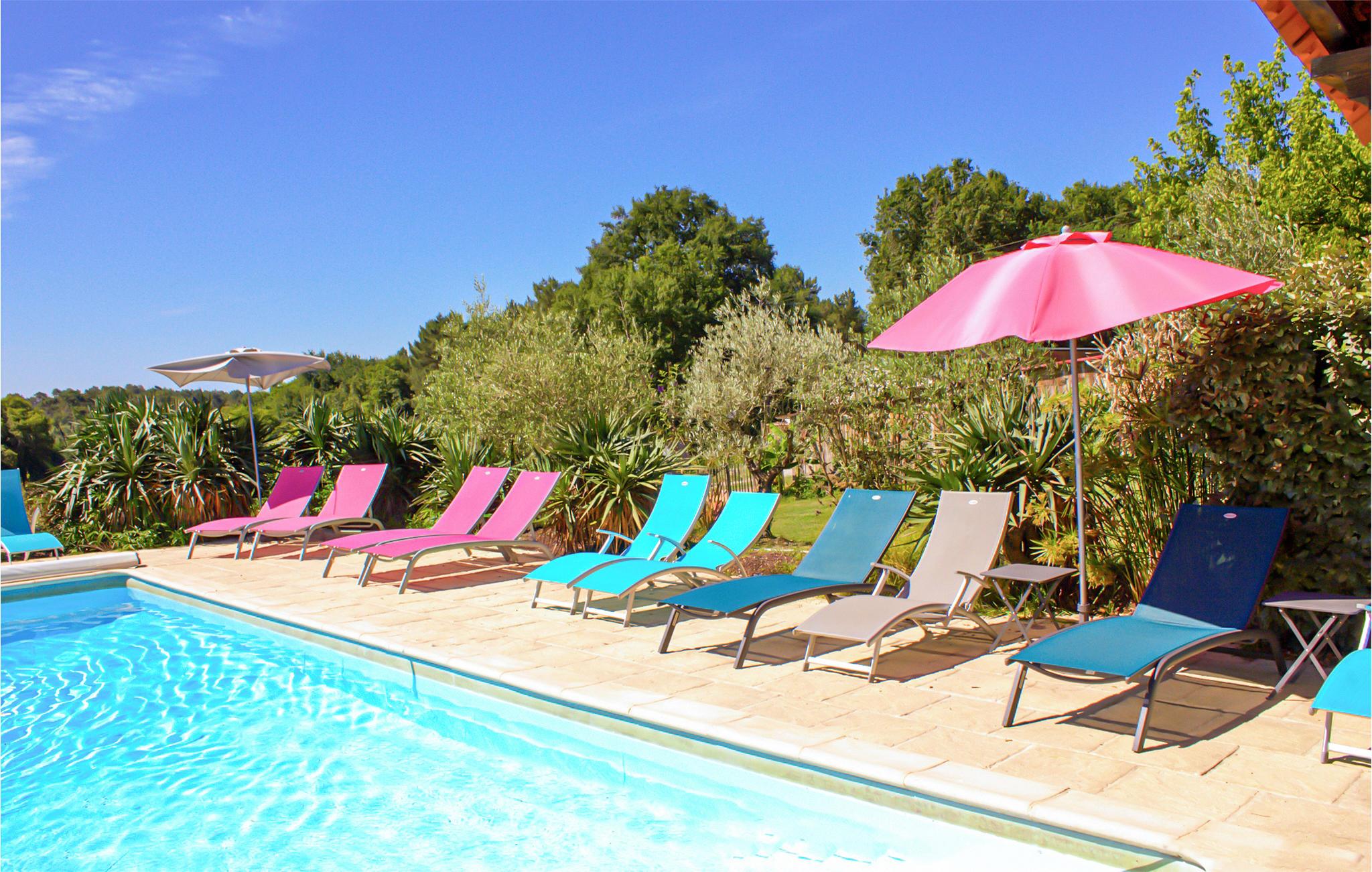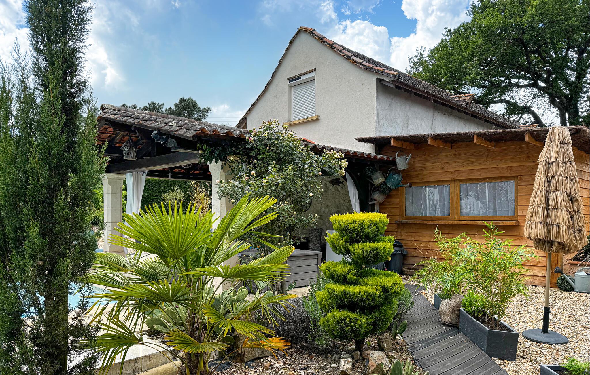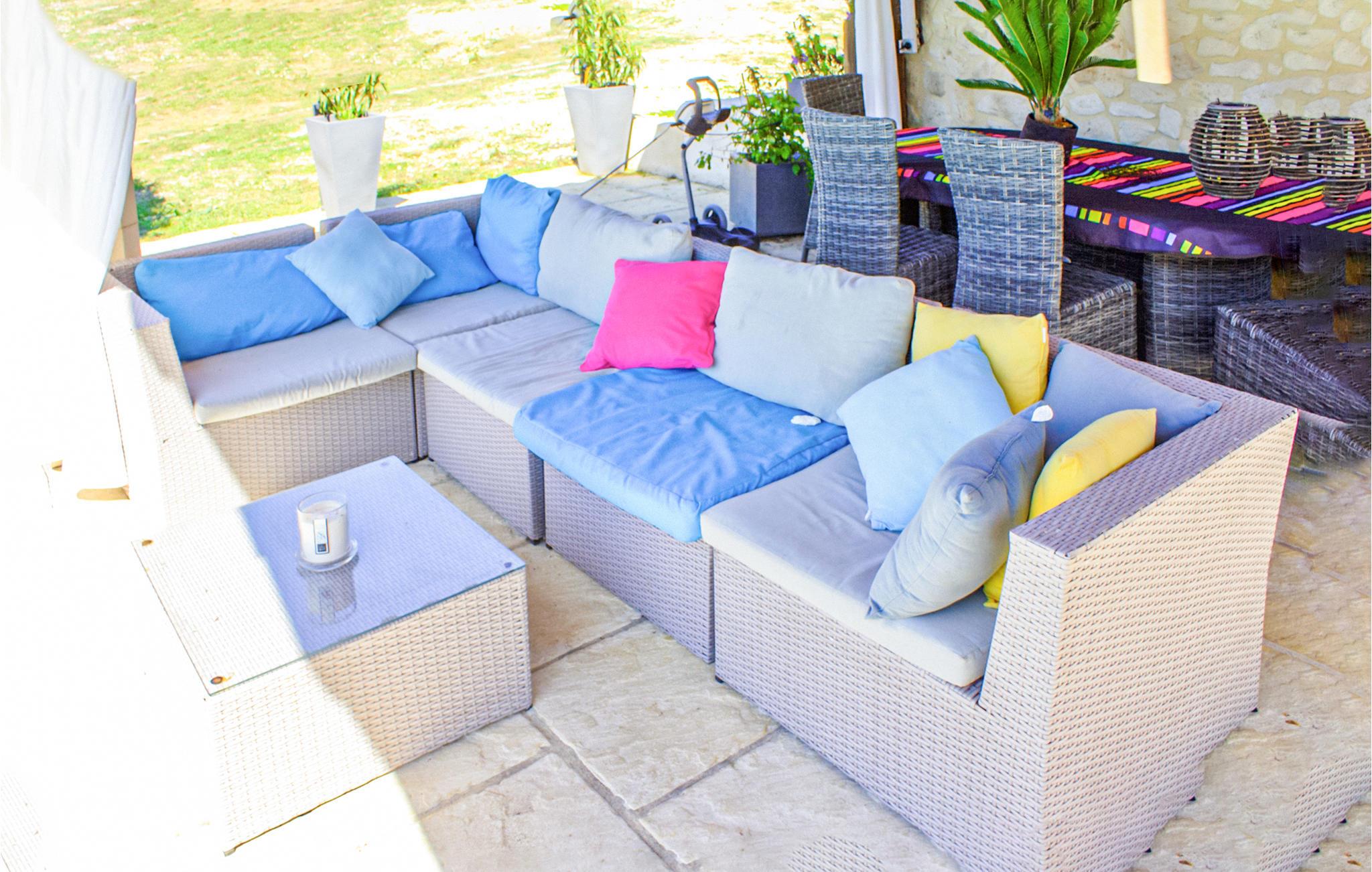 Den overdækkede terrasse er et skønt sted til at slappe af og tilbringe mange timer udendørs. Her kan I nyde jeres morgenkaffe, mens I planlægger dagens program og lade dagen ende smukt, mens I ser på landskaberne. Snup et spil petanque og slap bagefter af med en kold forfriskning i skyggen. En fællespool med liggestole står også til rådighed, hvis I skulle få behov for en kølig dukkert.