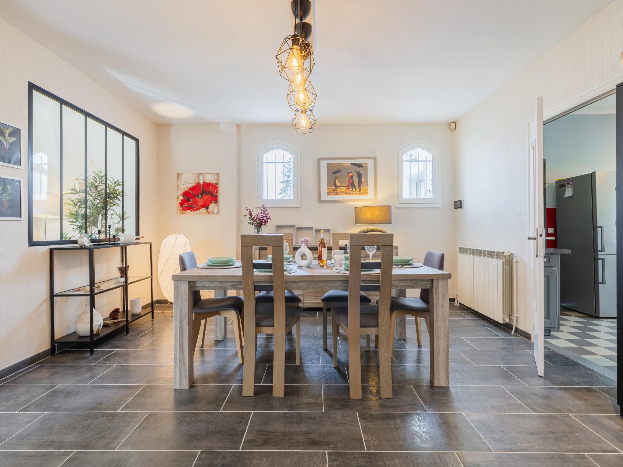 4-room house 120 m2. Spacious, beautiful and cosy furnishings: living/dining room with open-hearth fireplace (only for decoration), TV (flat screen). Exit to the garden, to the terrace. 1 room with 1 french bed (1 x 140 cm, length 190 cm). 1 room with 1 double bed (2 x 80 cm, length 200 cm), shower/WC. 1 room with 1 french bed (1 x 140 cm, length 190 cm), shower/WC. Exit to the garden, to the terrace. Kitchen (oven, 4 induction hot plates, toaster, kettle, microwave, freezer, electric coffee machine). Exit to the garden, to the terrace. Sep. WC. Gas heating. Large terrace. Terrace furniture, barbecue. Facilities: washing machine, dryer, iron. Internet (WiFi, free). Parking (3 cars). Please note: one double bedroom is outside the apartment. Smoke alarm. Offer by a private individual according to Art. 155, IV of CGI.
