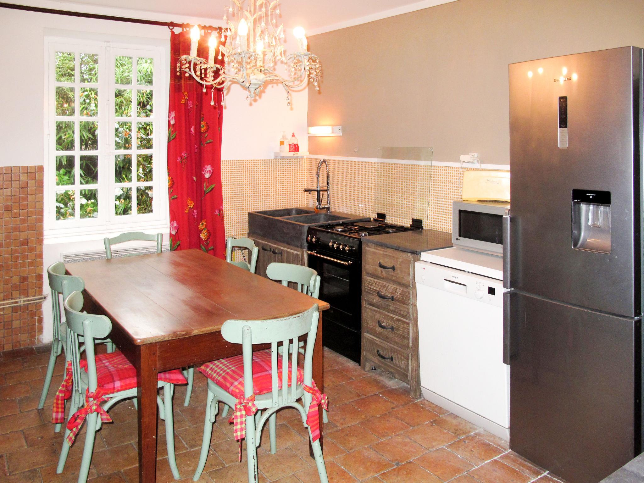 "Peuchaud", 6-room house 144 m2 on 2 levels. Renovated, rustic and tasteful furnishings: living/dining room with Scandinavian wood stove and dining table. Lounge with TV and DVD. 1 room with 1 french bed (140 cm, length 190 cm). Kitchen (1 hot plate, oven, dishwasher, Gas stove, 3 gas rings, toaster, kettle, microwave, freezer, electric coffee machine) with dining table. Bath/WC, shower/WC, hydro massage bath. Upper floor: 1 room with 1 french bed (140 cm, length 190 cm). 1 room with 2 beds (100 cm, length 180 cm). 1 room with 1 bed (110 cm, length 180 cm), 1 french bed (140 cm, length 190 cm). Shower, sep. WC, double hand-basin. Electric heating. Parquet floors, natural stone floors. Terrace, large patio. Terrace furniture, barbecue (portable). Facilities: washing machine, iron, baby cot, logs (extra). Internet (WiFi, free). Please note: non-smokers only. Maximum 3 pets/ dogs allowed. Smoke alarm.