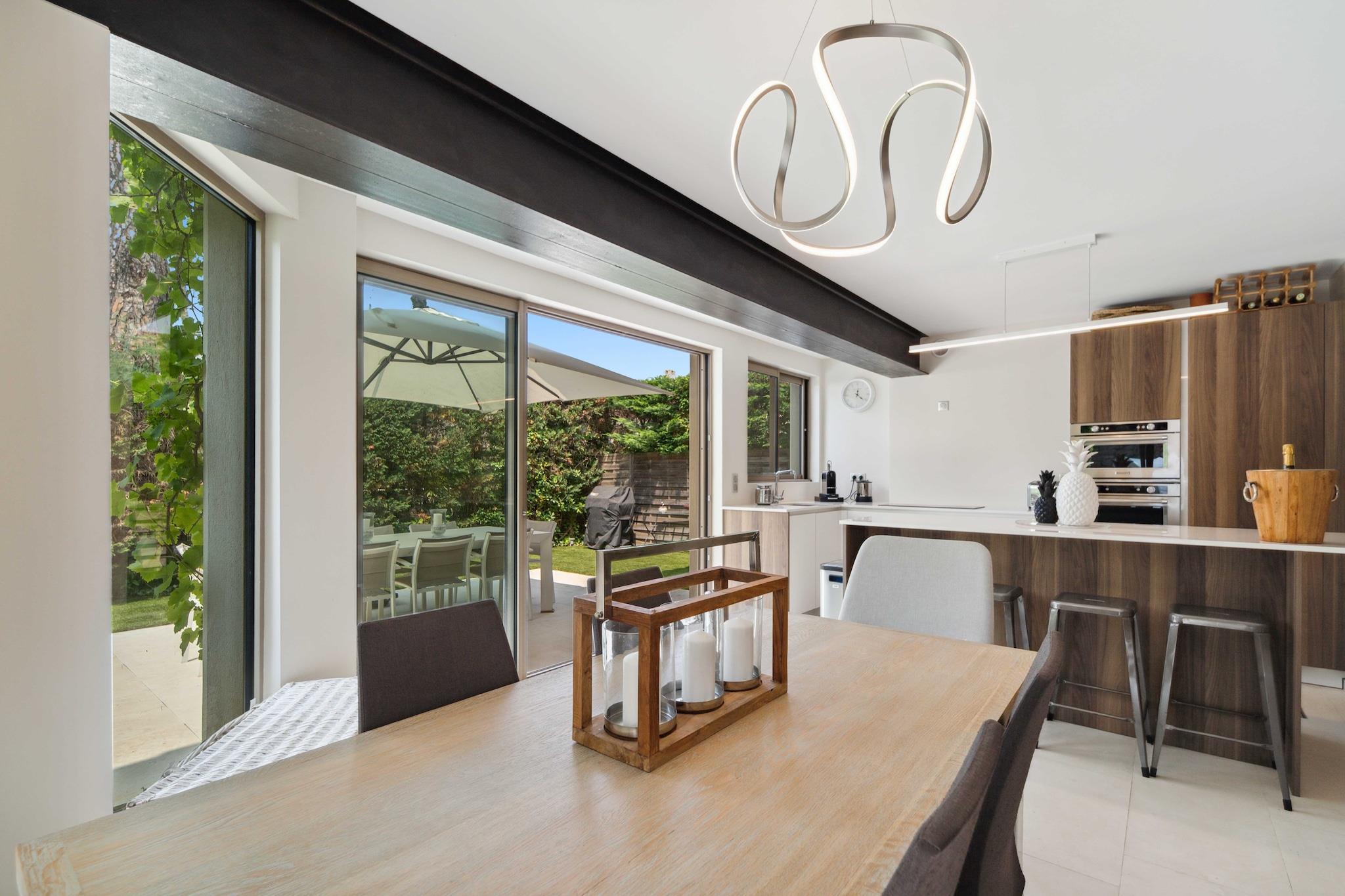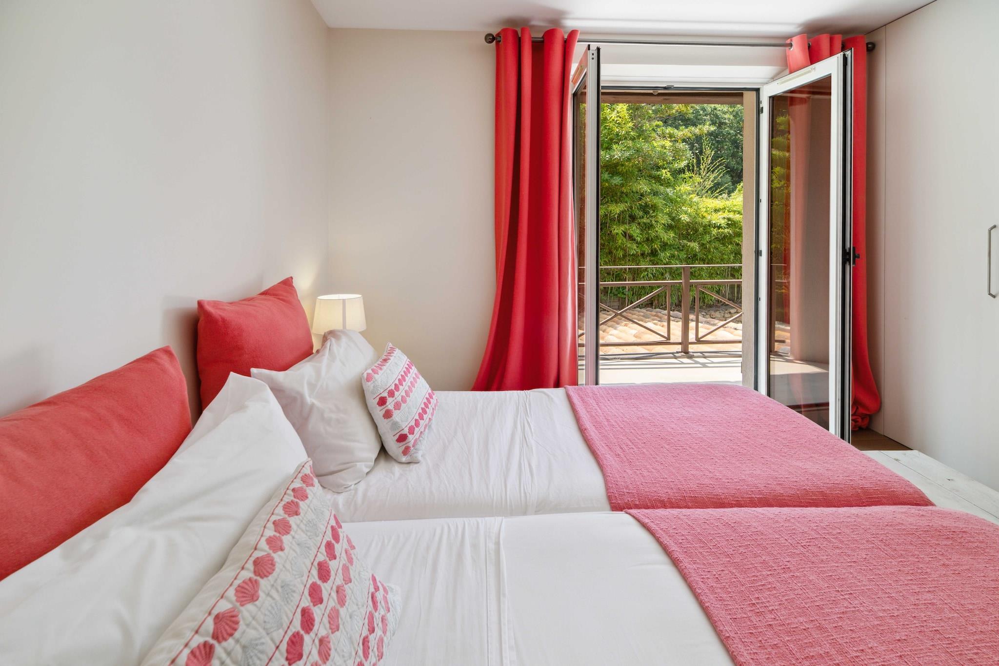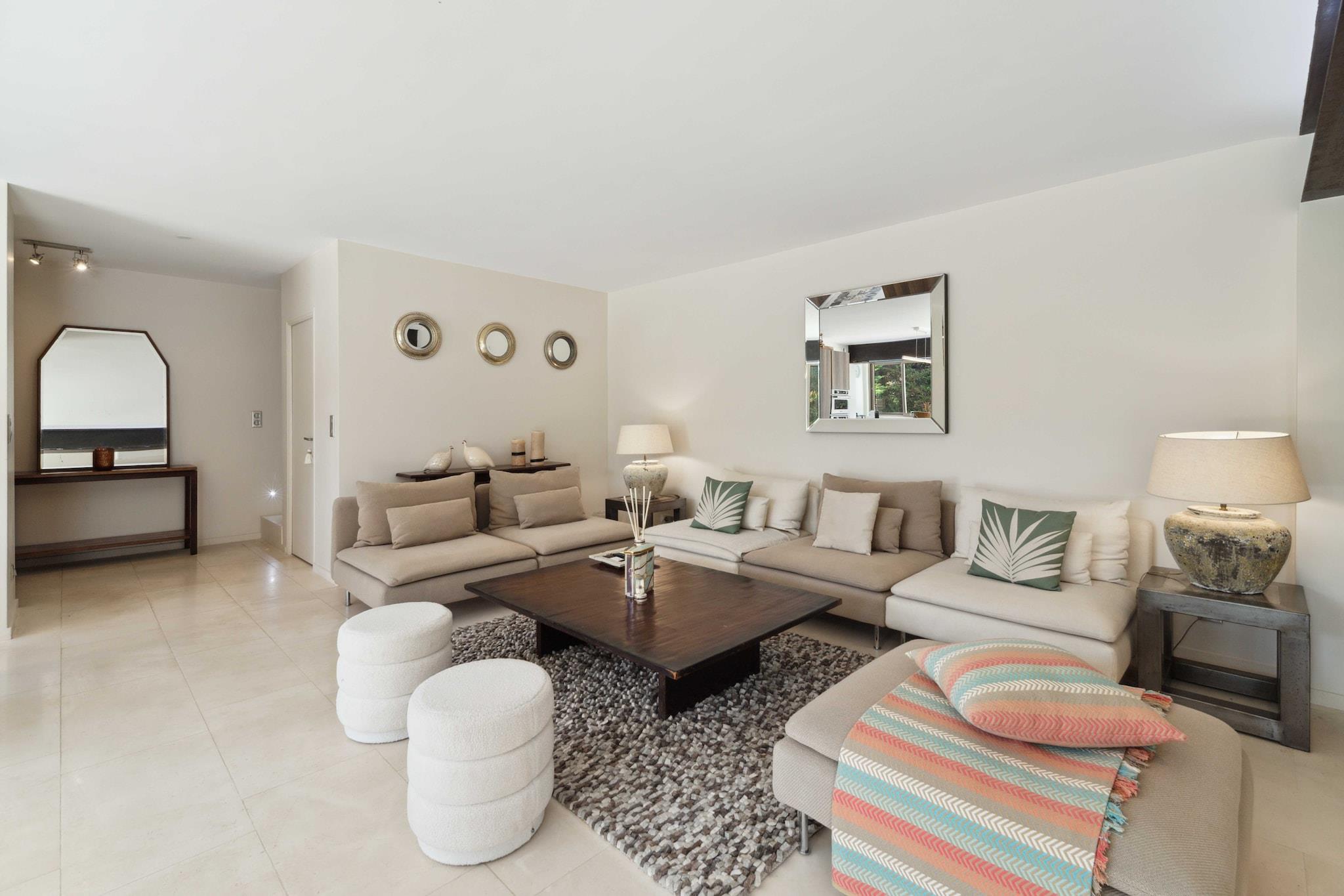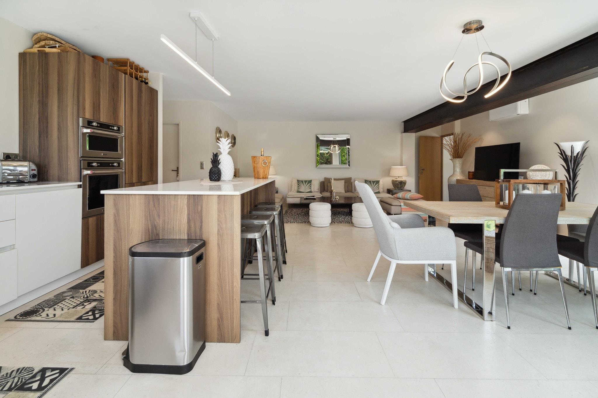 Stueetage: (Køkken(kakkelovn, elkedel, brødrister, kaffemaskine, ovn, mikrobølgeovn, opvaskemaskine , køleskab, fryser), stue / spisestue(Fjernsyn, spisebord, sofahjørne), soveværelse(enkeltseng, enkeltseng), badeværelse(bruser, håndvask, toilet)) På 1. etage: (soveværelse(enkeltseng, enkeltseng), Soveværelse med badeværelse(dobbeltseng, bruser, håndvask, toilet), badeværelse(bruser, håndvask, toilet)) , , , , Førstehjælp, Legeområde, Fjernsyn, tørretumbler, vaskemaskine, balkon eller terrasse, varme, klimaanlæg, swimmingpool, strygejern, føntørrer, Håndklæder/sengelinned (inkl.), , , , , , Carbon monoxide detector, Cleaning Disinfection, Enhanced cleaning practices, High touch surfaces disinfected, Long term stays allowed, Room-darkening shades