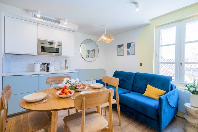 The flat is ideally located in the hyper centre of St Tropez, 3 minutes walk from the port. null The 54m2 apartment, located on the second floor without an elevator and spread across two levels, presents a modern and spacious configuration, carefully designed to provide a delightful stay. Here's a detailed overview of the features: Inviting Living Room: The welcoming living room serves as the heart of the space, featuring a sofa bed for moments of relaxation or accommodating additional guests. The layout of the living room is thoughtfully crafted to create a warm and friendly atmosphere, ideal for family gatherings or socializing with friends. Fully Equipped Kitchen: The modern kitchen is equipped with a refrigerator, oven, induction hob, toaster, coffee machine, kettle, microwave, and a washer-dryer. These high-quality appliances facilitate meal preparation, offering residents the flexibility to cook at their convenience. Comfortable Bedrooms: Two comfortable bedrooms, each furnished with a double bed (160x190), ensure restful nights. The two-level layout provides a sense of privacy, creating distinct spaces for optimal comfort. Practical Bathrooms: Two bathrooms with showers and WC each, providing additional convenience. This layout is particularly advantageous for groups or families, avoiding morning queues. Additional Amenities: Air Conditioning: A climate control system ensures a comfortable environment, suitable for all seasons. TV: A television for diverse entertainment, adding a touch of comfort after a busy day. Sheets and Towels Provided: The provision of sheets and towels simplifies the travel preparations for residents. This two-level apartment offers a unique experience, blending practicality and aesthetics. Whether for a family stay, with friends, or for business trips, this modern space caters to the varied needs of its residents. Enjoy an unforgettable stay in this well-appointed apartment.