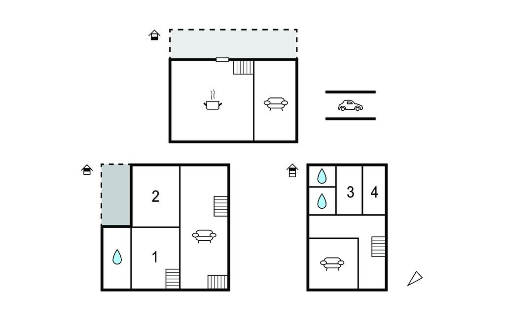 Badeværelse 6m2 (nr. 1) - WC. Varmt og koldt vand. Bruser