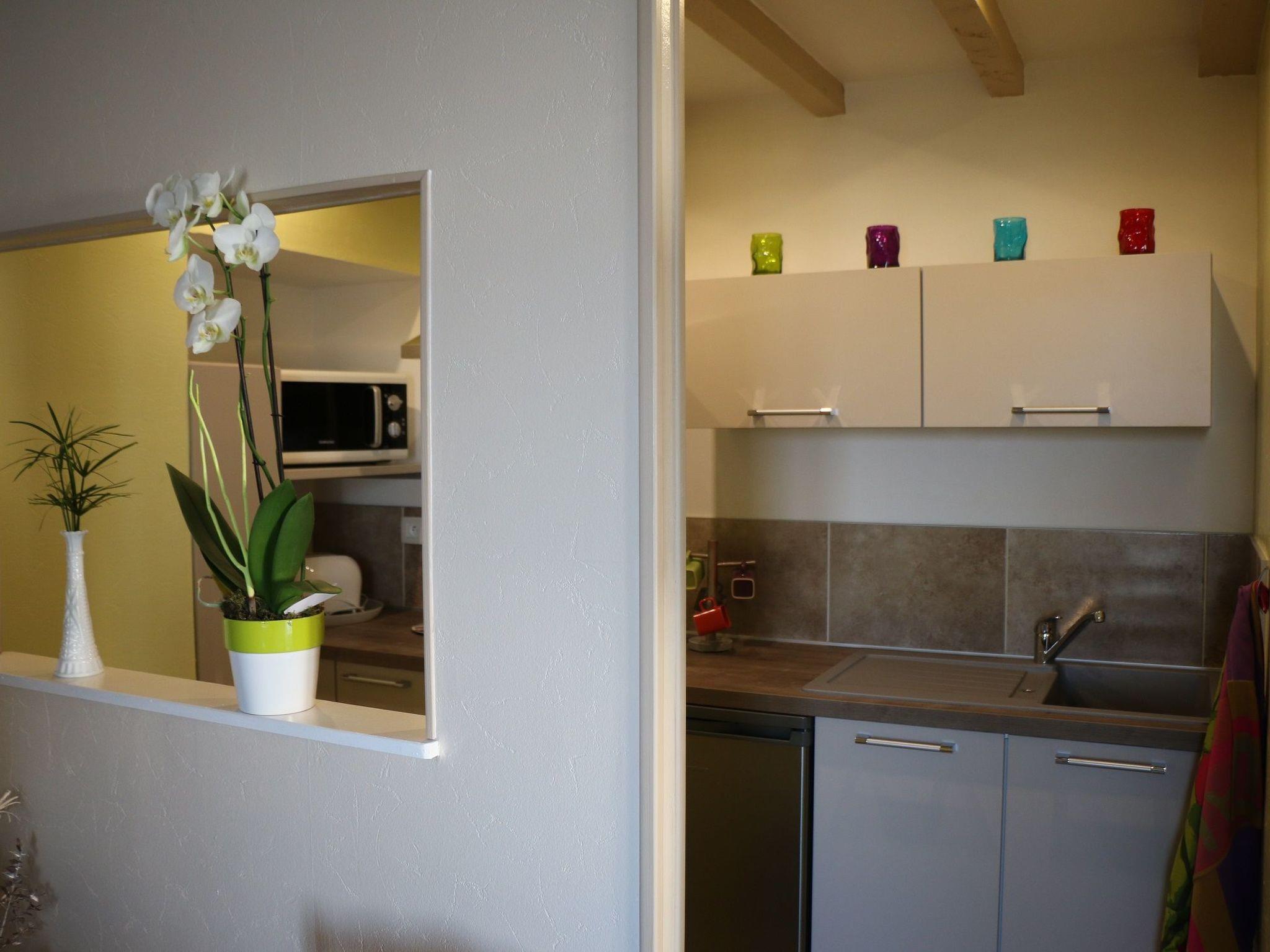 The small stable, separate from the house, is 35 m2 and sleeps 2 with a 140 x 190 cm double bed and sitting area. 32-inch television, WIFI. Fully-equipped kitchen (microwave, grill, fridge, coffee maker, toaster, crockery, etc.) Bathroom with large walk-in shower, washbasin and WC.