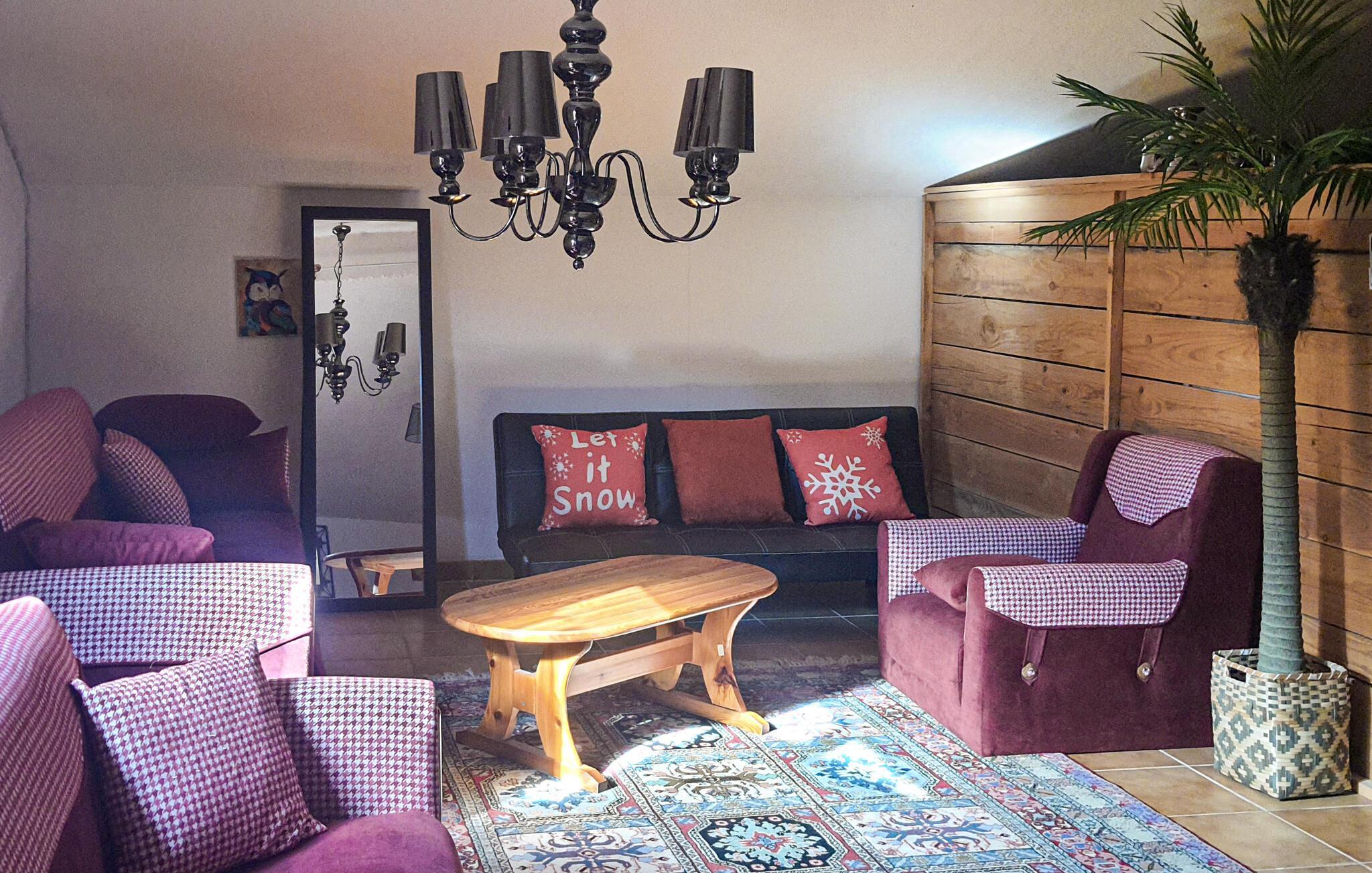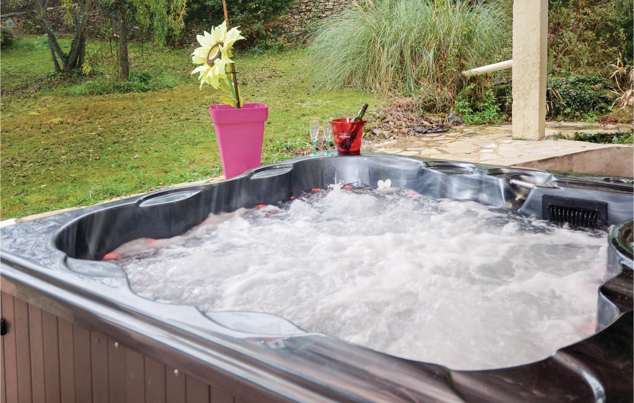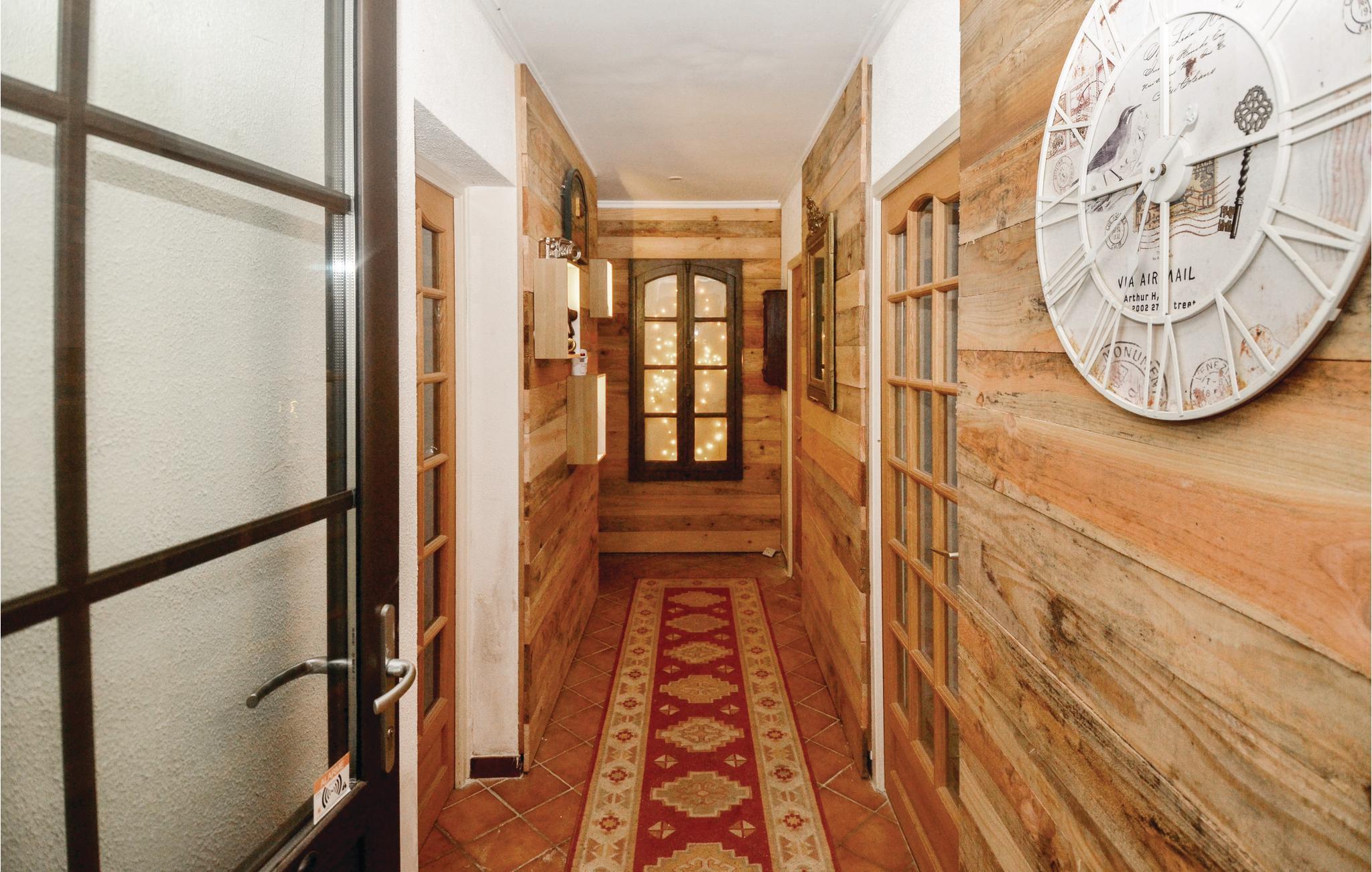 Feriehuset indeholder alt, hvad I har brug for til en skøn ferie: fitnessraum, hammam, udendørs spabad med kig til poolen, sauna til seks personer, et poolhus med grillsted samt en stor trampolin med sikkerhedsnet i haven. I overetagen findes et stort værelse (26 m²) der er udstyret med en dobbeltseng, tekøkken og badeværelse. Fra bl.a. fitnessrummet har I kig til poolen og haven. Nyd jeres feriemåltider på den store terrasse, der omkranser huset.