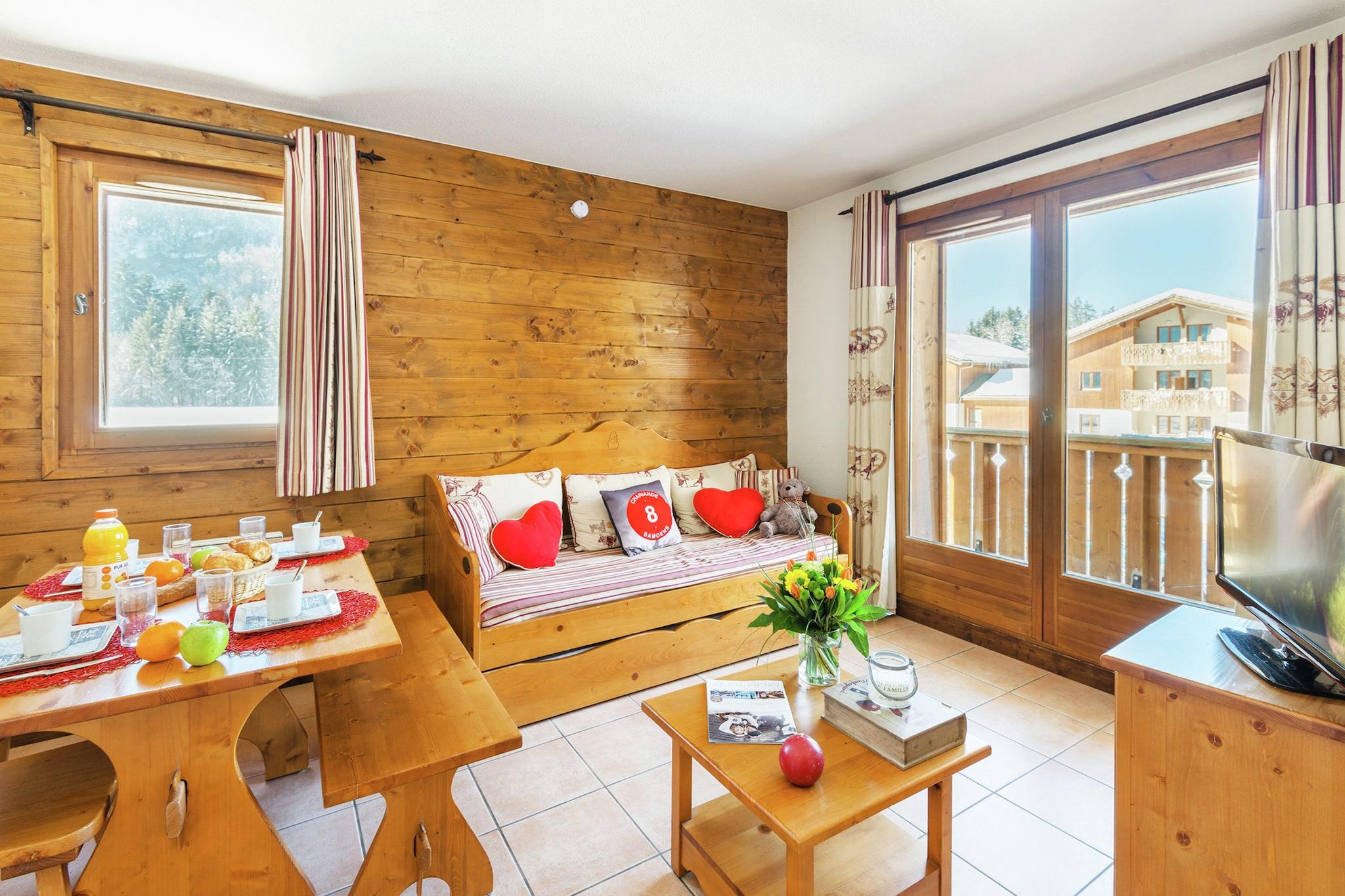 Résidence Les Fermes de Samoëns ligger fredeligt i hjertet af de majestætiske fyrreskove og dramatiske klippevægge i Samoëns-dalen og tilbyder en fredfyldt oase med traditionel savoyardisk charme. Disse rummelige og luksuriøst indrettede lejligheder er bygget af natursten og varmt træ og kombinerer rustik elegance med moderne komfort. De rummelige duplex-lejligheder til 4-6 personer er ideelle til familier eller grupper, der søger en fredfyldt ferie. Kun 0,8 km fra det maleriske centrum af Samoëns er du perfekt placeret til at nyde landsbyens hyggelige butikker, lokale markeder og venlige caféer. Offentlig transport og naturskønne vandrestier ligger i nærheden og inviterer dig til at udforske de smukke nordlige Alper. Efter en dag i det fri kan du slappe af i den fælles sauna eller tage en forfriskende dukkert i de opvarmede indendørs og udendørs swimmingpools – perfekte til alle årstider. Residensen tilbyder også en garage og et billardrum for ekstra bekvemmelighed og underholdning. Tag dine firbenede venner med og nyd de vidtstrakte vandrestier og frodige skovstier, hvor hunde er velkomne til at løbe og lege. Samoëns er vært for sæsonbestemte kæledyrvenlige begivenheder og har flere caféer og restauranter med udendørs servering, hvor dine kæledyr er velkomne. Forkæl dig selv med savoyardiske specialiteter som tartiflette og raclette på nærliggende traditionelle spisesteder, eller nyd frisk alpin mad med udsigt. Ved sen ankomst skal gæsterne kontakte boligen på forhånd i receptionens åbningstid for at aftale nøgleudlevering. Online check-in og et depositum er påkrævet. Uden forudgående varsel kan adgang til boligen ikke garanteres.