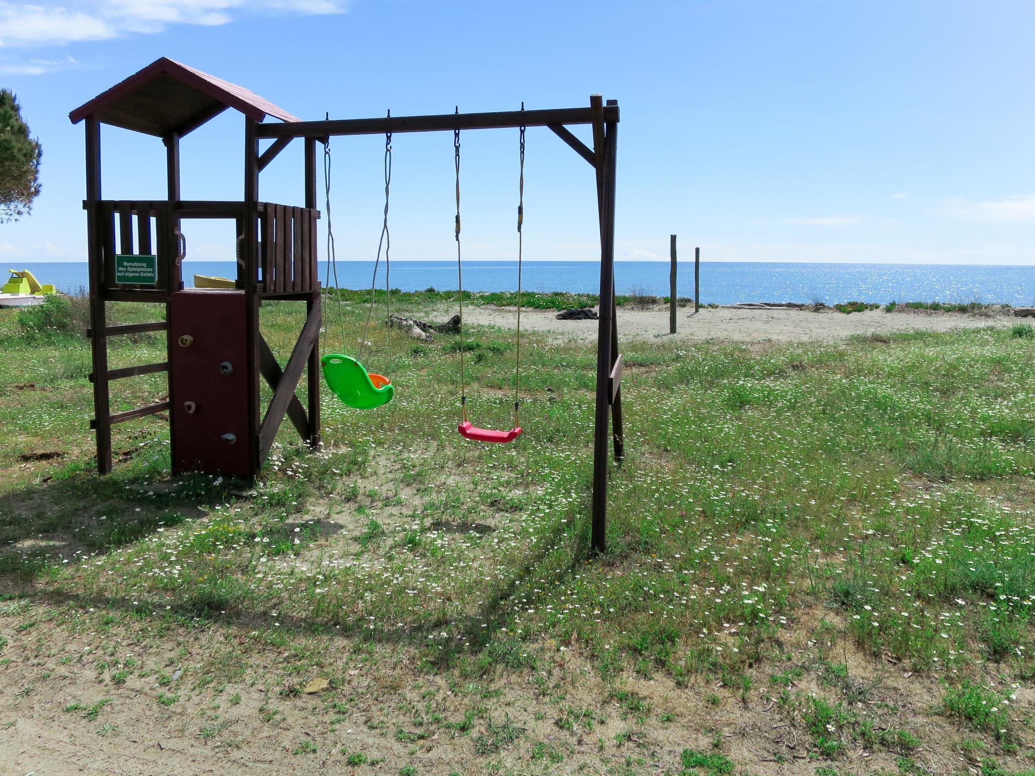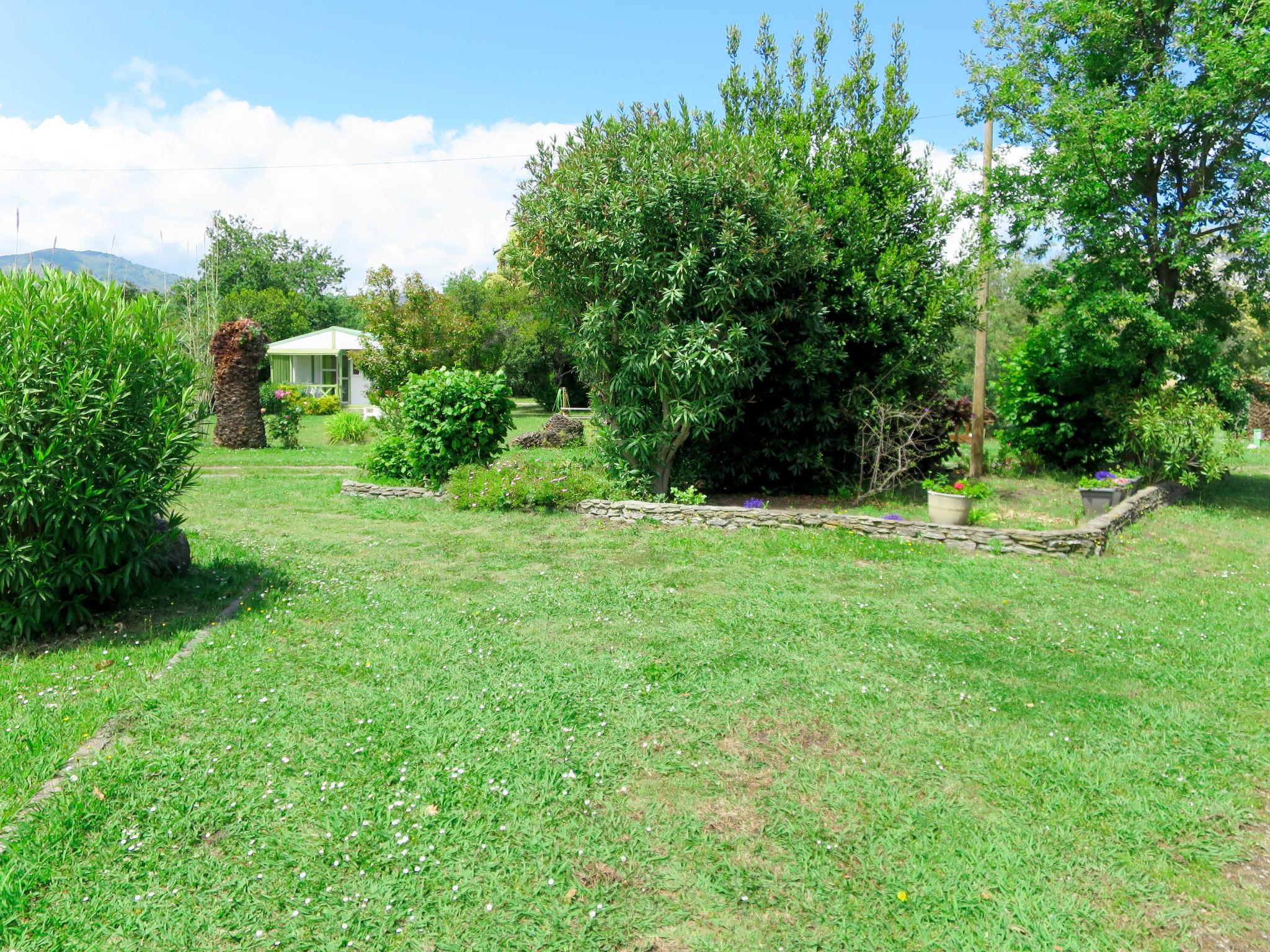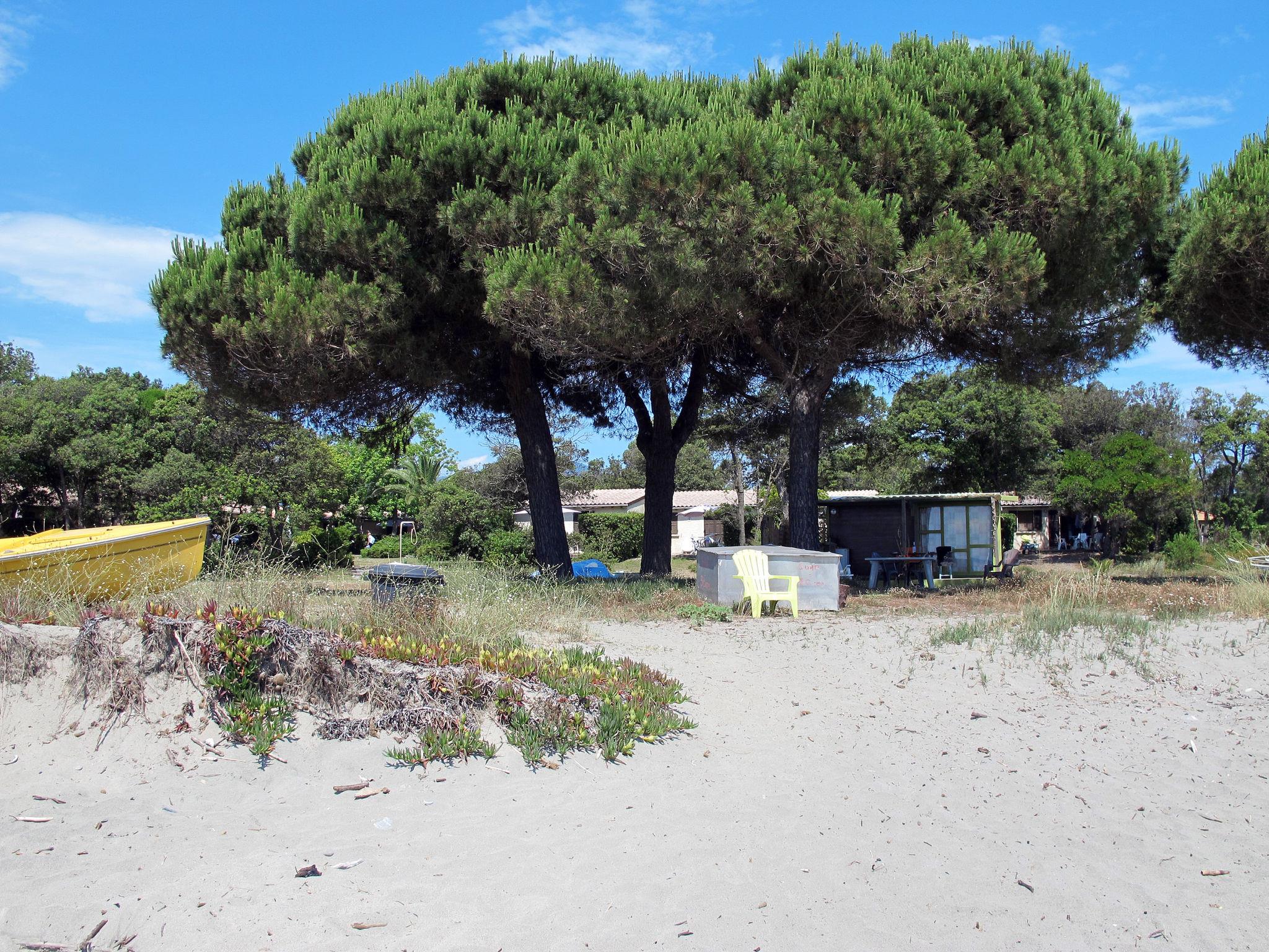 Child friendly, cosy, simple resort "Rico Plage", surrounded by fields. 60 houses in the residence. 6 km from the centre of Moriani Plage, 4 km from the centre of Folelli, 35 km from the centre of Bastia, in a quiet, sunny position, 50 m from the sea, 50 m from the beach, direct access to the beach, in the countryside. For shared use: large, beautiful garden with plants and trees, meadow. Tennis (2 x hard court), table tennis, boccia, volleyball court (swing). In the complex: reception with TV, internet access, WiFi. Bread roll service. Parking on the premises. E-charging station. Supermarket 4 km, restaurant 50 m, bus stop 4 km, sandy beach 50 m. Please note: car recommended. The photograph shows a typical example. The complex has another 10 chalets for rent.