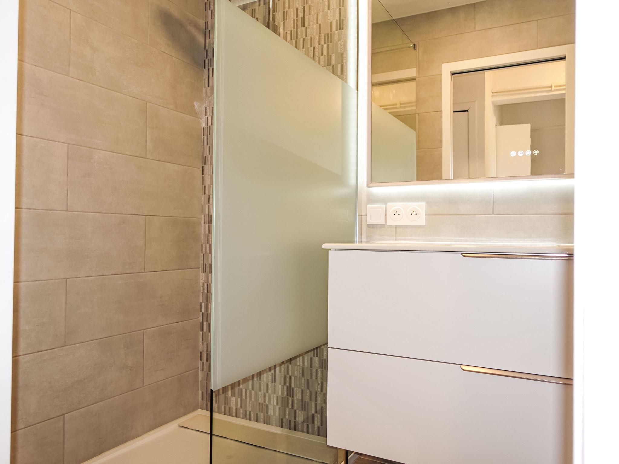 3-room apartment 67 m2 on 1st floor. Comfortable and beautiful furnishings: living/dining room with 1 double sofabed (140 cm, length 200 cm), TV. Exit to the terrace. 1 room with 2 beds (90 cm, length 190 cm). Exit to the terrace. 1 room with 2 beds (90 cm, length 190 cm). Exit to the terrace. Open kitchen (oven, dishwasher, 3 induction hot plates, toaster, kettle, microwave, freezer, electric coffee machine). Exit to the terrace. Shower, sep. WC. Electric heating. Heating available only from 15.10. to 25.03. Terrace 12 m2, roofed, south facing position. Terrace furniture. View of the garden. Facilities: washing machine. Internet (WiFi, free). Parking. Please note: TV only FR. Smoke alarm. 831230002905E
