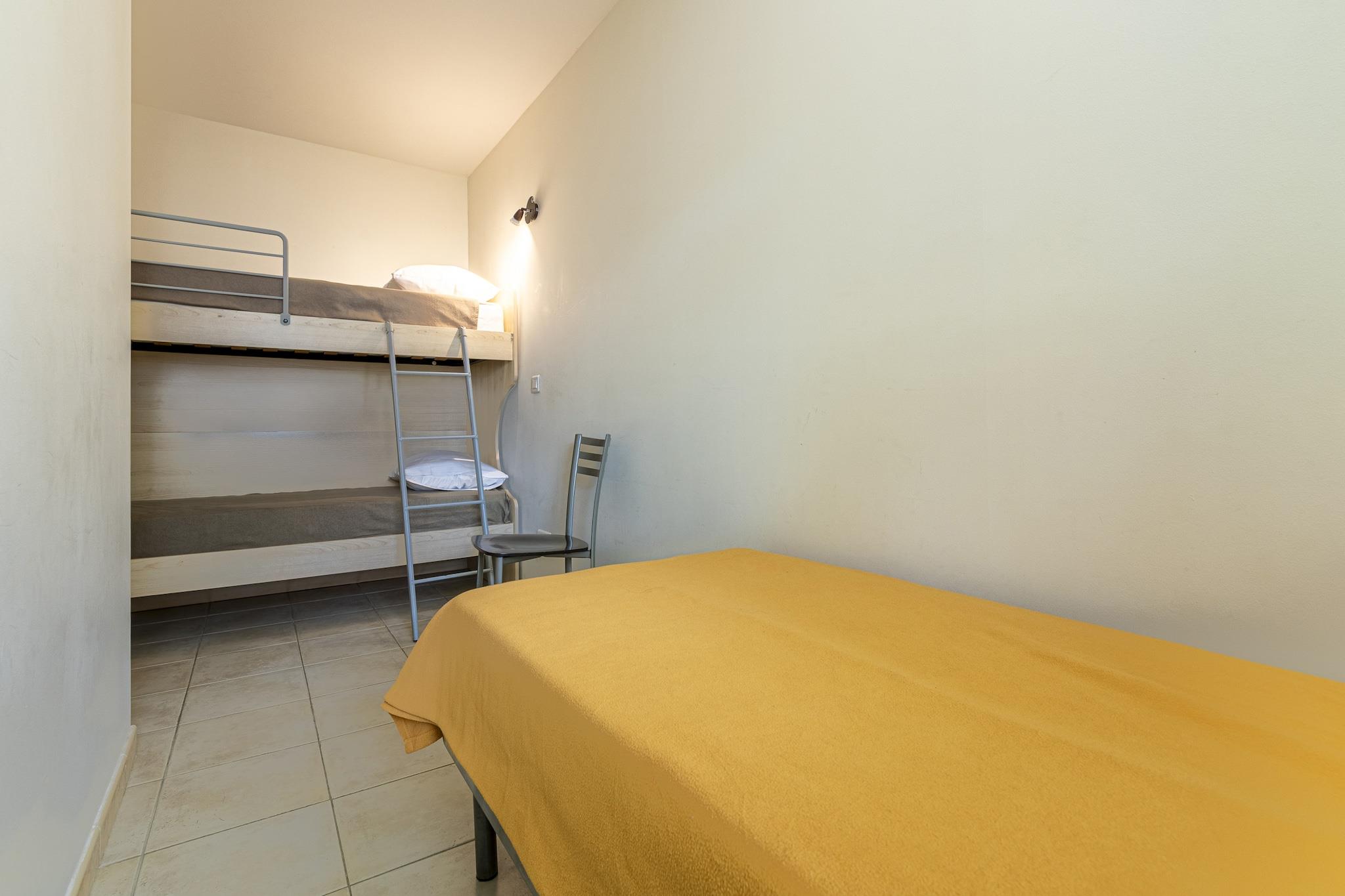 Der er noget særligt ved et hjem, der føles som en invitation til at sætte farten ned. Dette lyse rækkehus på 40 kvadratmeter i Sari-Solenzara er præcis det - et solbeskinnet fristed designet til at rumme op til syv personer uden at miste sin hyggelige, intime charme. Uanset om du rejser med en stor familie eller en gruppe nære venner, fungerer planløsningen smukt: et afslappende dobbeltværelse til de voksne, et andet værelse med en enkeltseng og køjesenge, som børnene vil elske, og en komfortabel dobbeltsovesofa i opholdsstuen til ekstra gæster. Hjertet i opholdet er det åbne køkken, der føles mindre som en feriebolig og mere som et hjem. Det er fuldt udstyret med alt fra opvaskemaskine til fryser og kaffemaskine, hvilket gør det nemt at bikse et festmåltid sammen efter en dag med udforskning. Du kan tage din morgenkaffe eller aftenens lokale vin med ud på den private terrasse. Med havemøblerne sat op og havbrisen, der blæser ind, er det det perfekte sted at planlægge din næste dags eventyr eller blot fortabe dig i en god bog, mens solen varmer haven. Når du er klar til at udforske, vil du opdage, at det bedste af kysten ligger lige uden for døren. En blid gåtur på 100 meter bringer dig til den bløde sandstrand, og den lokale favoritrestaurant "Le Favonne" ligger kun en kort gåtur væk, hvor du kan nyde en nem middag ude. Hvis du har lyst til et afvekslingspunkt fra saltvandet, venter den fælles opvarmede pool på dig tilbage i komplekset. Med privat parkering og en fredelig, familievenlig atmosfære er dette et sted, hvor minder skabes ubesværet.