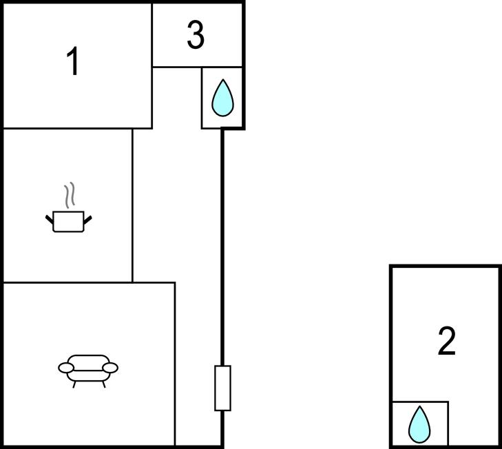 Badeværelse 3m2 (nr. 1) - WC. Varmt og koldt vand. Bruser