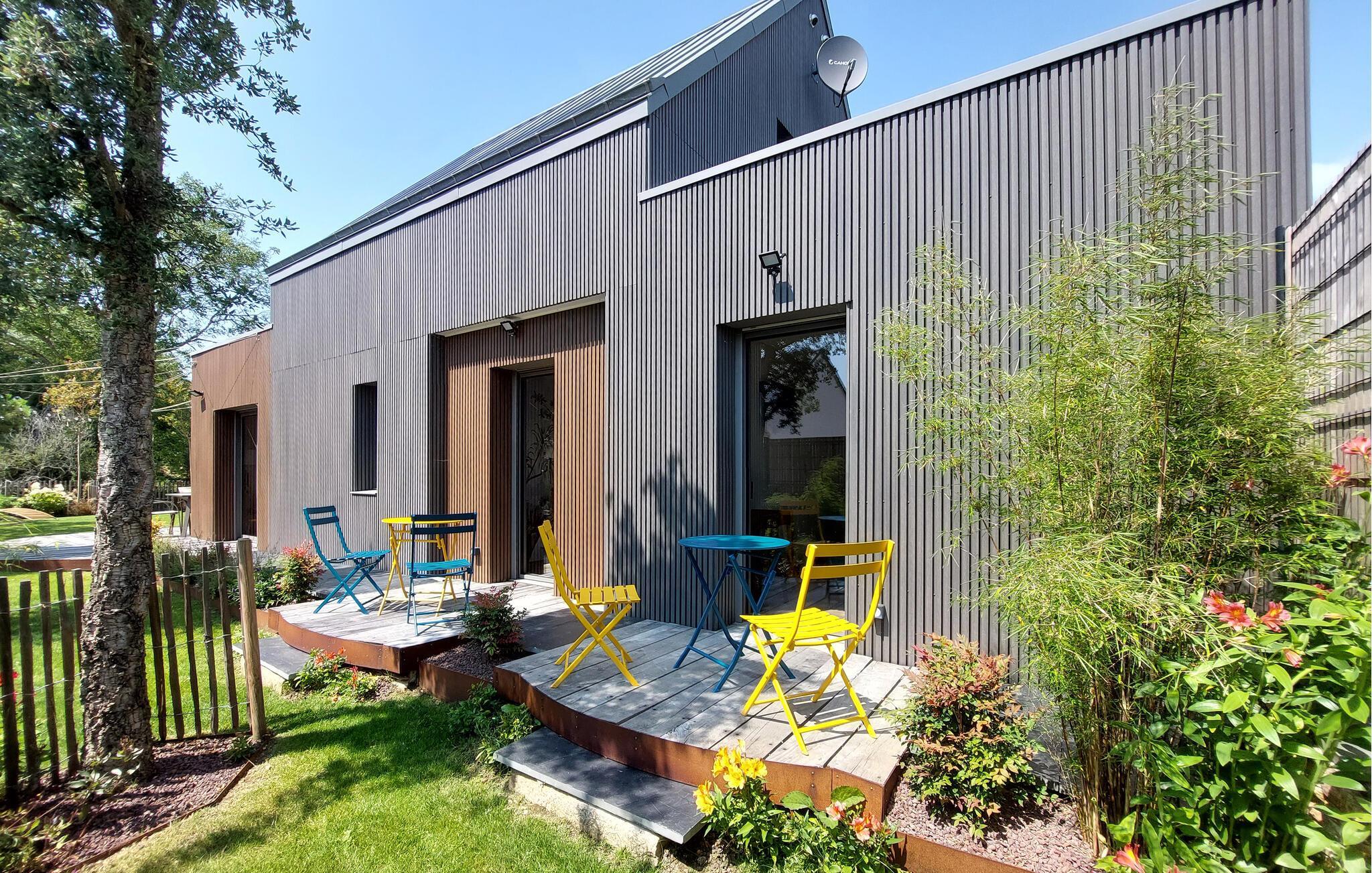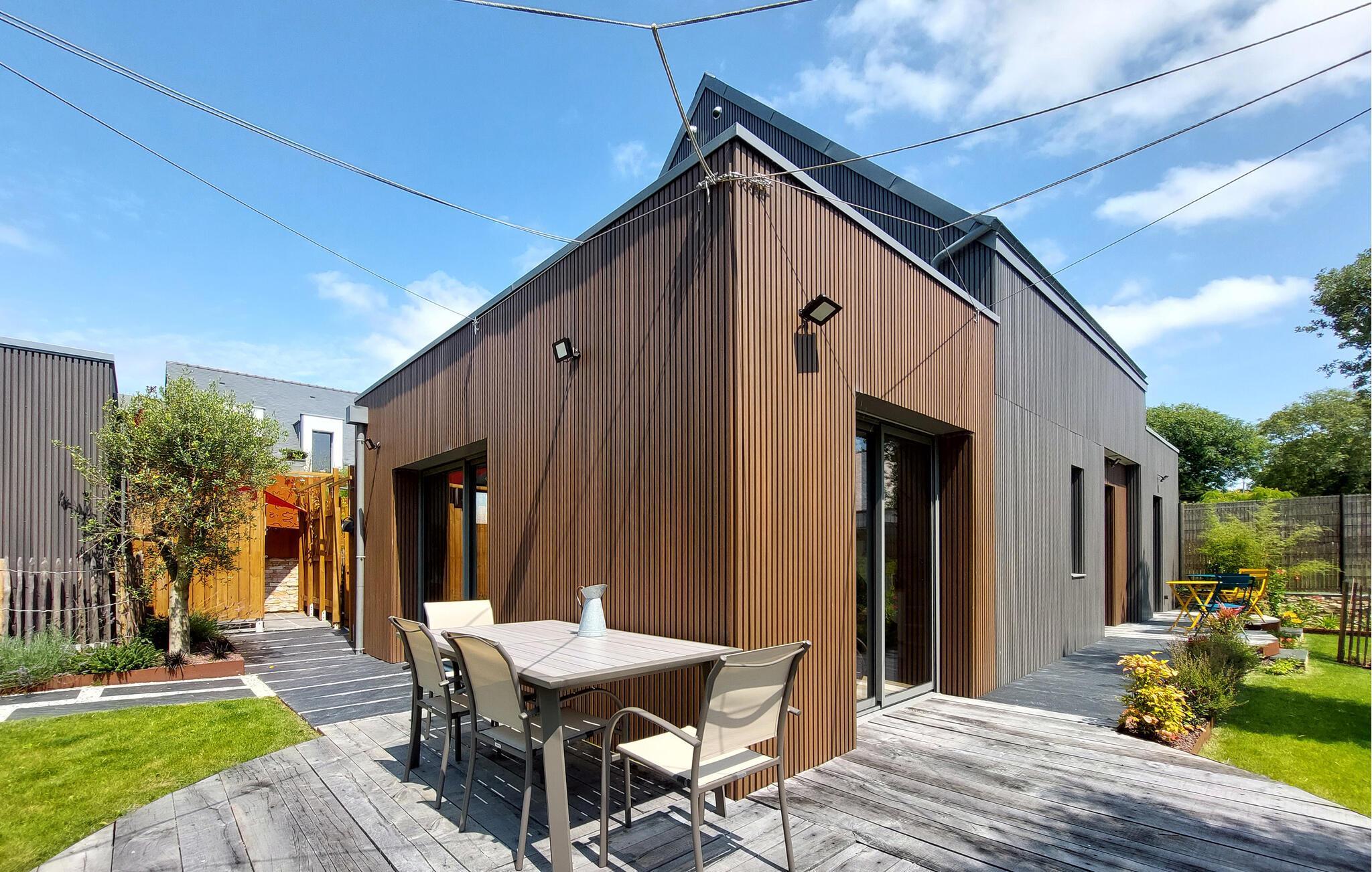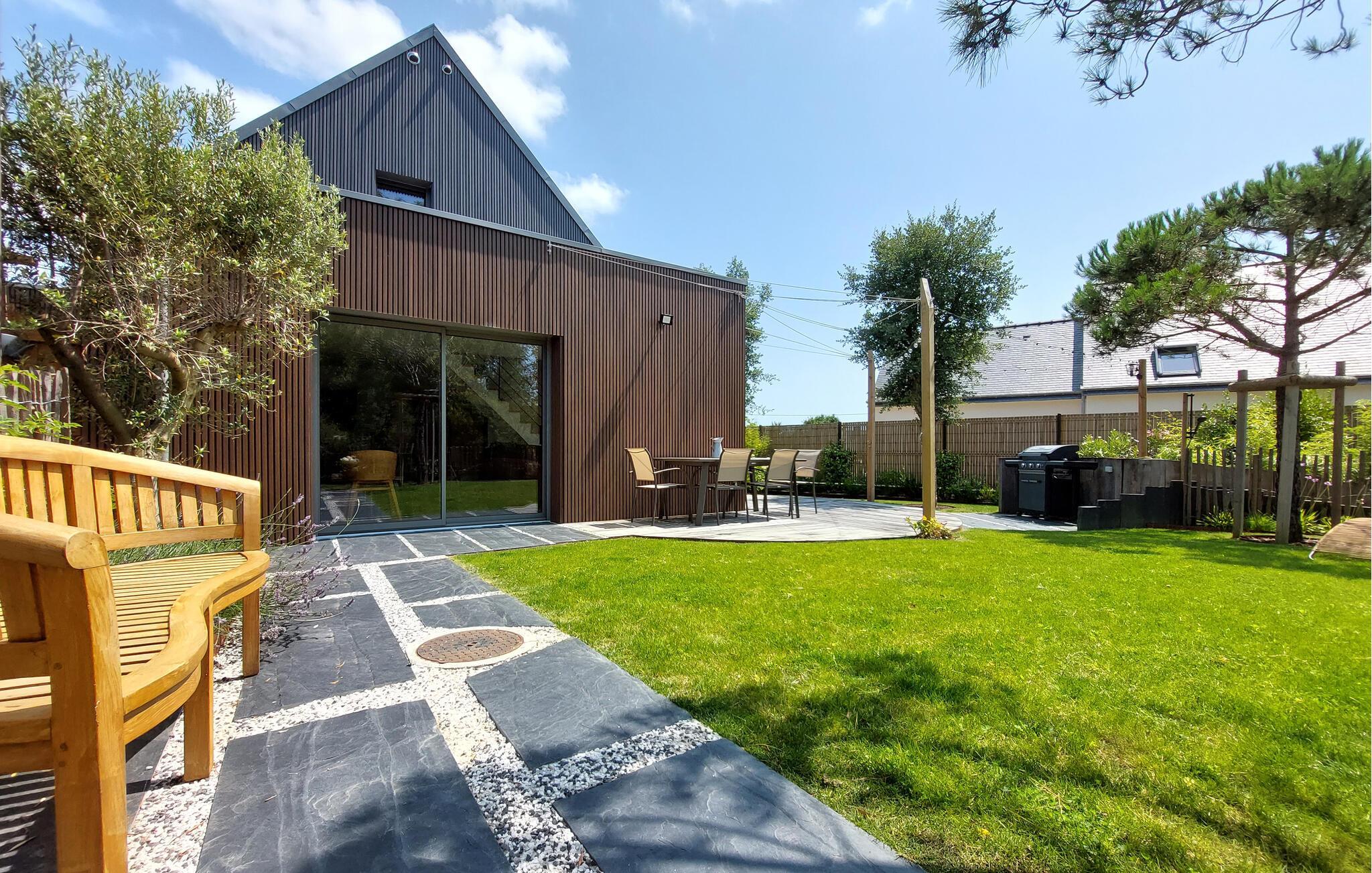 Nyd jeres ferie i dette moderne og smagfulde feriehus med have.
