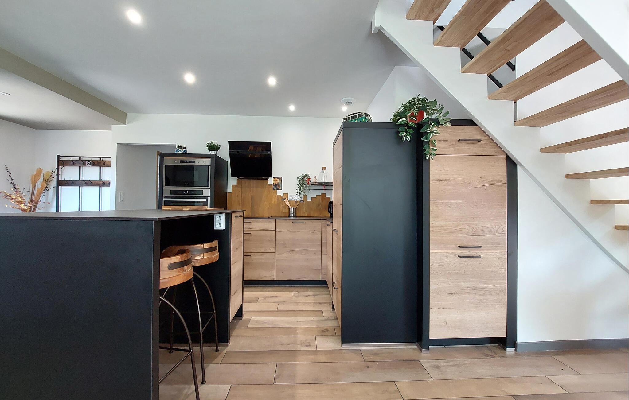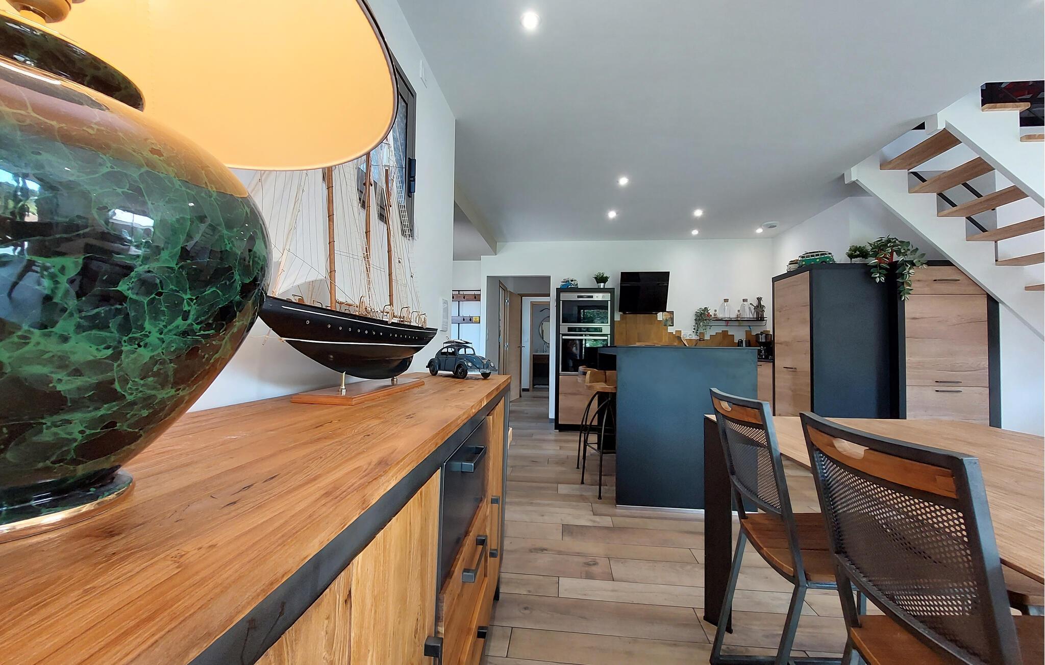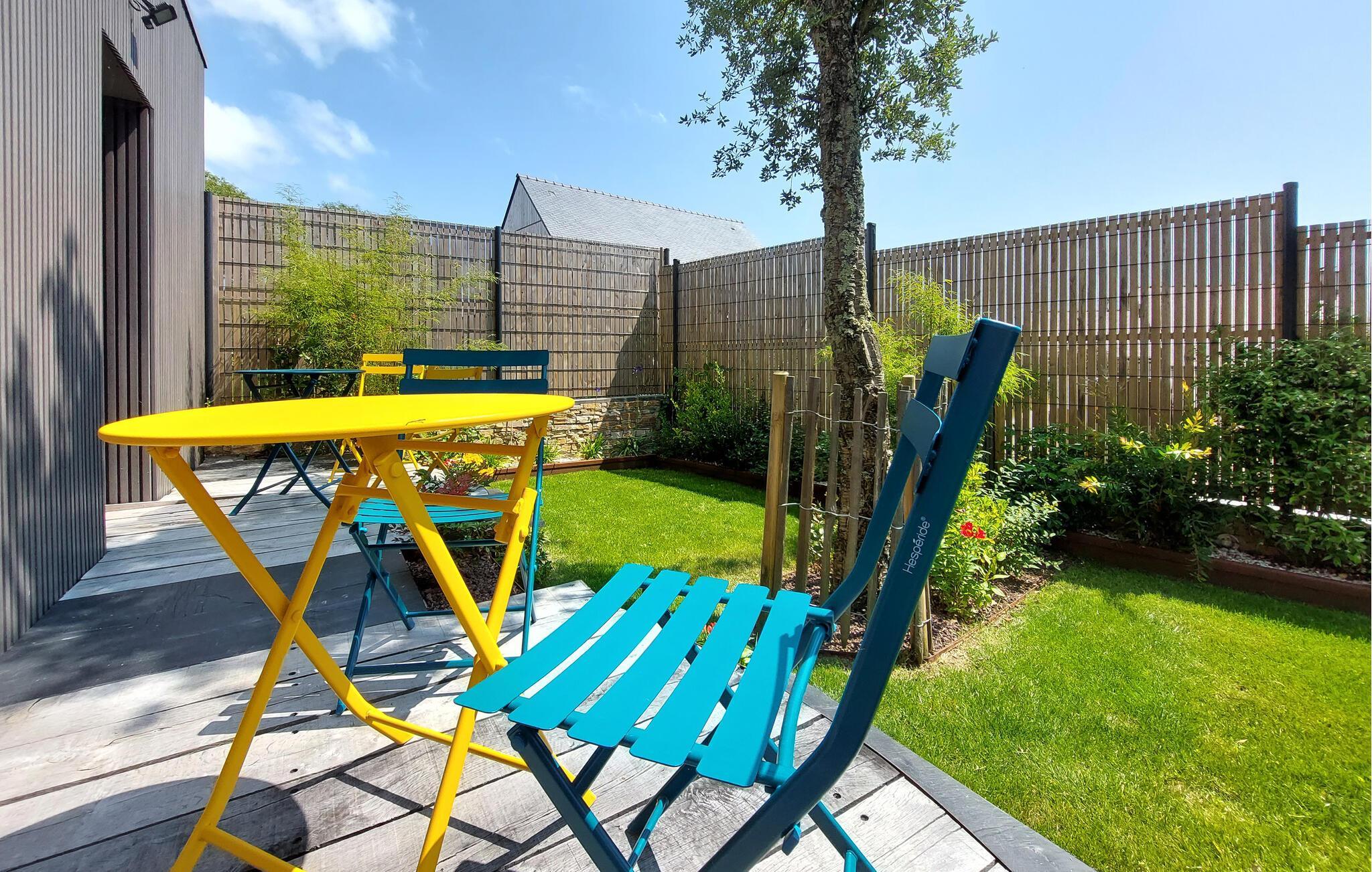 Dette moderne, fuldt udstyrede feriehus i Sarzeau tilbyder jer en uforlignelig atmosfære af afslapning. Allerede ved indgangen mærker I den højkvalitets indretning – stilfuld arkitektur, udsøgt design og elegante møbler skaber et eksklusivt miljø for jer. Et særligt højdepunkt er den åbne balkon, som giver rummet et luftigt og rummeligt præg. Store vinduer fylder rummene med lys og åbner op til udsigten over den blomstrende, smukt anlagte have. Her kan I nyde absolut ro og afslapning – et perfekt tilflugtssted, kun få minutters gang fra stranden og havnen. Saml jer på terrassen og nyd solen samt fælles måltider fra grillen.