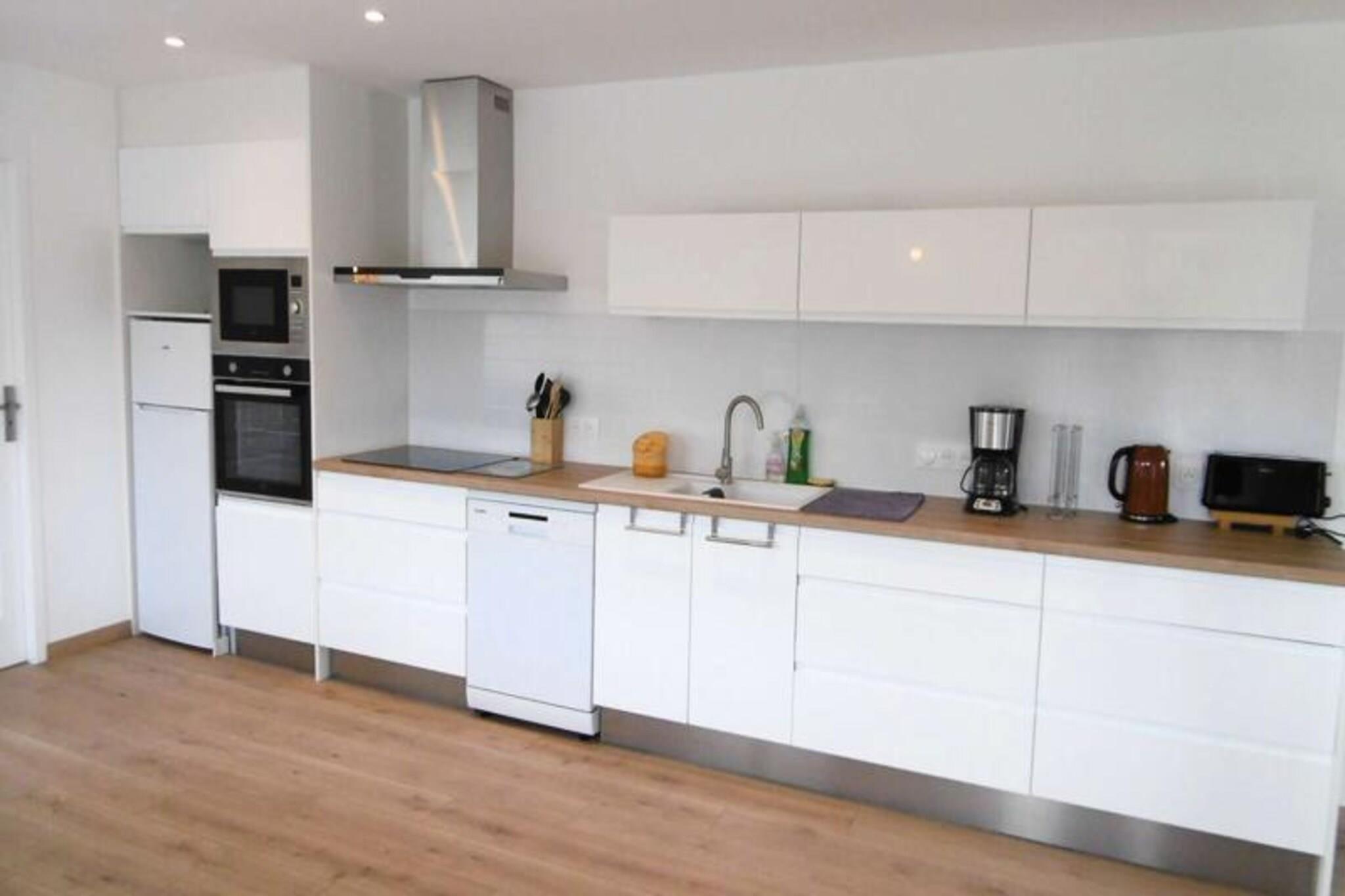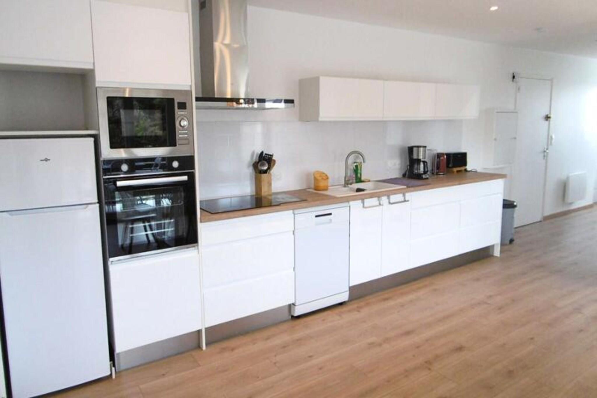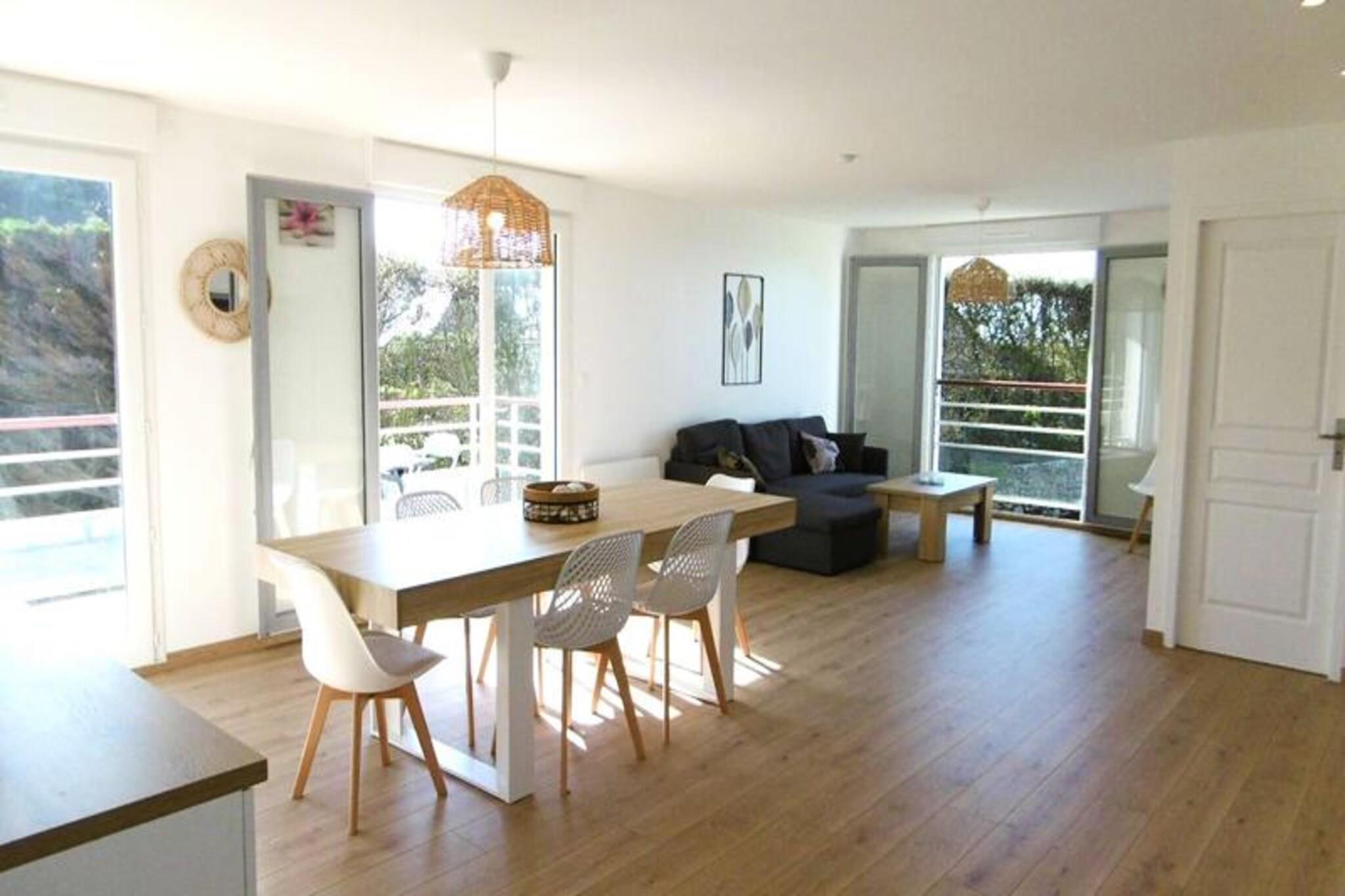 This 78 m² apartment, located on the first floor with elevator access, offers stunning ocean views and can accommodate up to 6 guests. It features three bedrooms: a master with a 160 cm double bed, a second with two 90 cm beds, and a third with bunk beds. Pets are allowed for an additional fee, and a numbered parking space is provided. Bed linens and bathroom towels are available for rent, and end-of-stay cleaning can be arranged for an extra charge. A deposit is required upon booking. The residence is ideally located just 100 meters from the beach and port of Saint Jacques, with a small shopping center (open year-round) 200 meters away. A playground is 500 meters from the property, and the town of Sarzeau with its shops and Port Crouesty is just 4 km away. For island excursions, Port Navalo, 13 km away, offers ferry departures to the Gulf of Morbihan. The apartment includes a well-equipped kitchen with a fridge, oven, microwave, ceramic hob, dishwasher, washing machine, coffee maker, and toaster. The spacious living area includes a TV, and the bathroom has a shower and toilet. A large balcony with garden furniture lets you enjoy the ocean view. Heating is included, and electricity is billed separately from October to April.