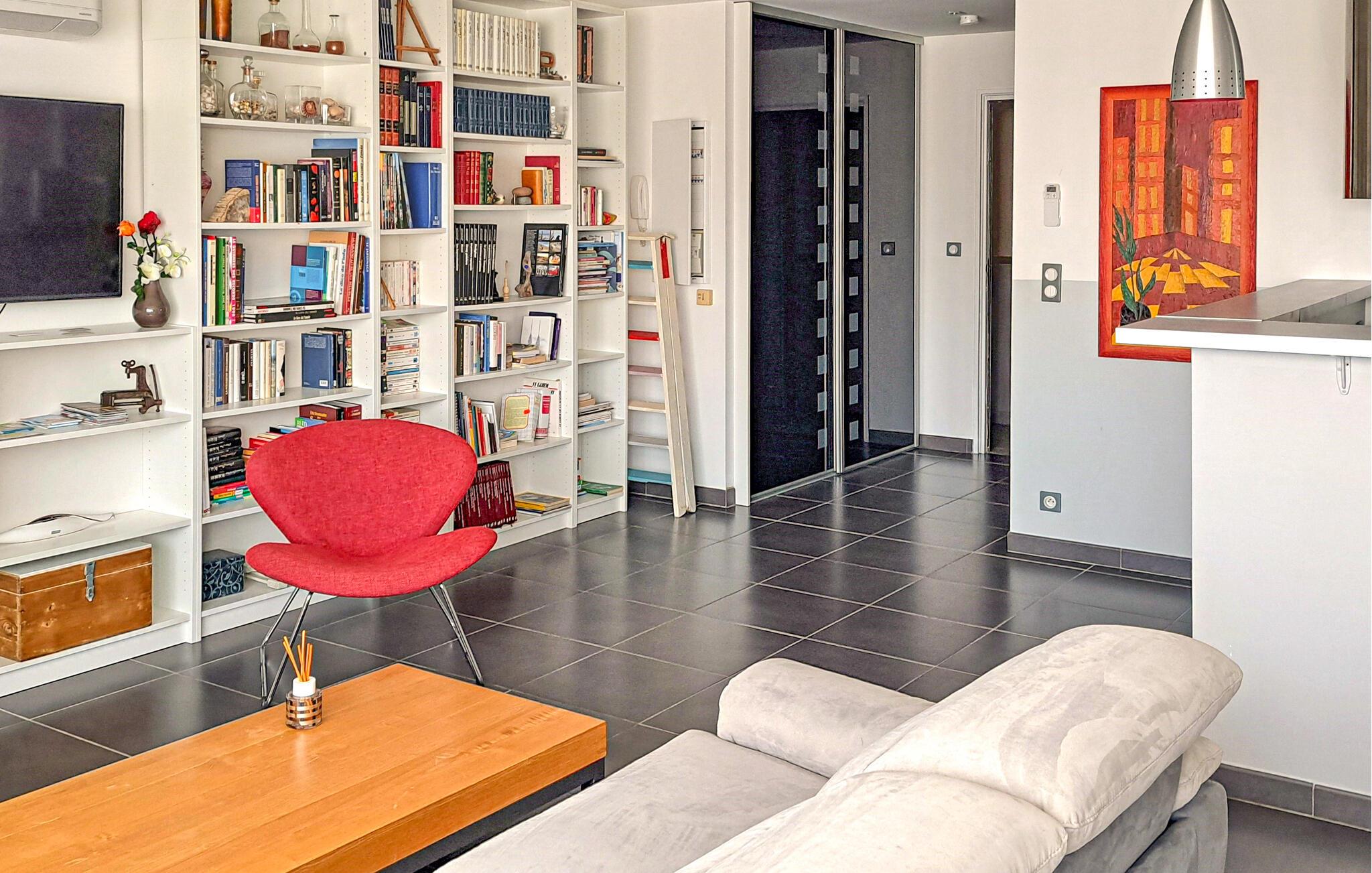 Ni km fra Béziers og 7 km fra stranden, indbyder denne store ferielejlighed til en ferie fuld af sol i Frankrig. Den moderne og lyse ferielejlighed ligger på første sal, i et perfekt udgangspunkt til udflugter i Hérault. Béziers er en skøn by til ferie året rund: gå en tur langs den gamle slusetrappe Fonserannes og videre til Saint-Nazairekatedralen. En tur gennem byens markedshal med farver og dufte, hvor I kan købe friske produkter med hjem og tilberede dem i jeres eget godt udstyrede køkken, er også oplagt. Eller oplev Fontcaudeklosteret og de romerske arenaer, hvor der er mange former for arrangementer gennem sommeren. Der er kun 16 km til sandstranden og havet og få kilometer til Europark Vias Plage med sjov for især familiens børn. Soveværelse er åbent mod badet.
