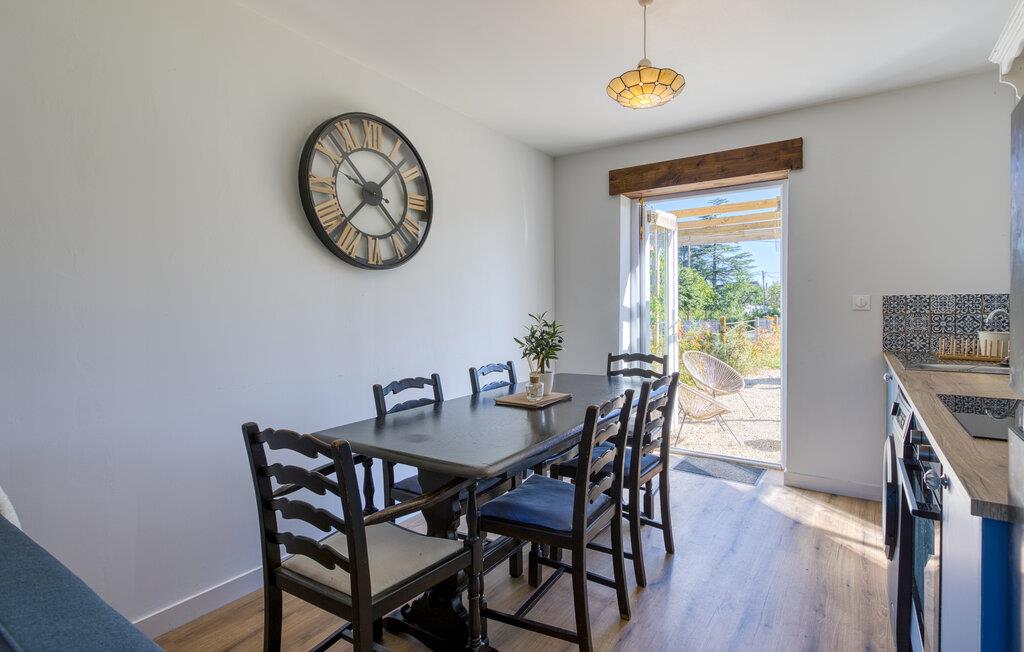 Dette roligt beliggende feriehus i Savigné tilbyder jer det ideelle tilflugtssted for afslappende dage på landet. Nyd den historiske atmosfære i et kærligt restaureret hus og læg hverdagen bag jer. Oplev den indbydende opholdsstue med et komfortabelt siddeområde og stilfulde detaljer. Lav mad i det praktisk indrettede køkken med moderne bekvemmeligheder og nyd dagens måltider ved det rustikke spisebord. Blandingen af ??historiske elementer og friske farver skaber en særlig hjemlig atmosfære.
