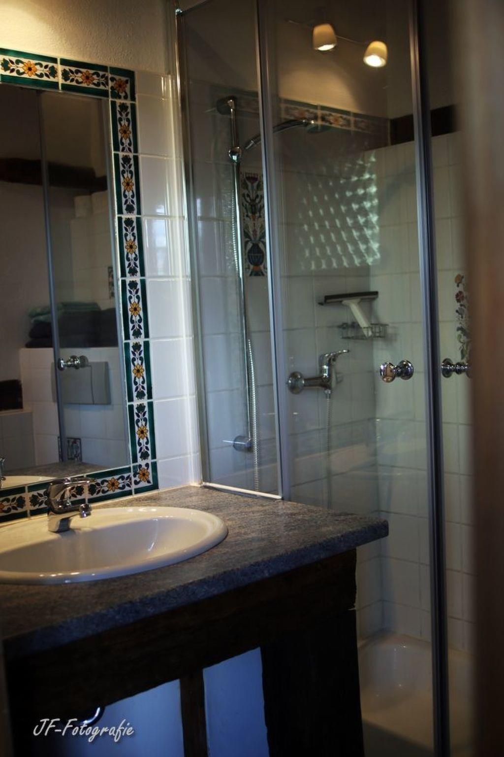The renovation has preserved the original character of the half-timbered house with clay walls, while at the same time using modern organic materials to ensure that the rooms offer all the comfort you need today. The holiday flat on the ground floor is approx. 35m² in size and has a well-equipped eat-in kitchen. In addition to all the important kitchen utensils, you will also find a four-ring hob, a fridge, an oven, a microwave and a coffee machine. A table with a bench and two chairs invites you to eat together. The small bathroom has a washbasin, WC and shower. In the separate bedroom you will find a large double bed (200cm x 200cm) and a satellite TV. For the dog you will find a small anteroom in front of the kitchen-living room, where he/she can sleep on his/her blanket.