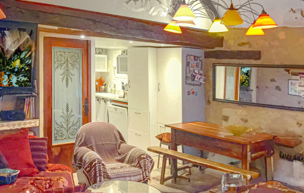 Denne tidligere bondegård fra det 19. århundrede er ideel til en familieferie og er blevet totalrenoveret med moderne komfort og samtidig bevaret den traditionelle arkitektur. På haveniveau finder du en stor stue med åbent køkken, vaskerum og toilet. På jorden. sal er der 2 soveværelser med dobbeltsenge, det ene med eget badeværelse i soveværelset, det andet med bruseniche og separat toilet på gangen. Og ovenpå er der en åben mezzanin med aircondition til 1 eller 2 store børn, samt en. soveværelse med aircondition og et badeværelse i gangen mellem disse to soveværelser med en privat 1500 m² lukket have med udsigt over Périgord-toppene og den omkringliggende dal og et privat spabad til 3 personer.