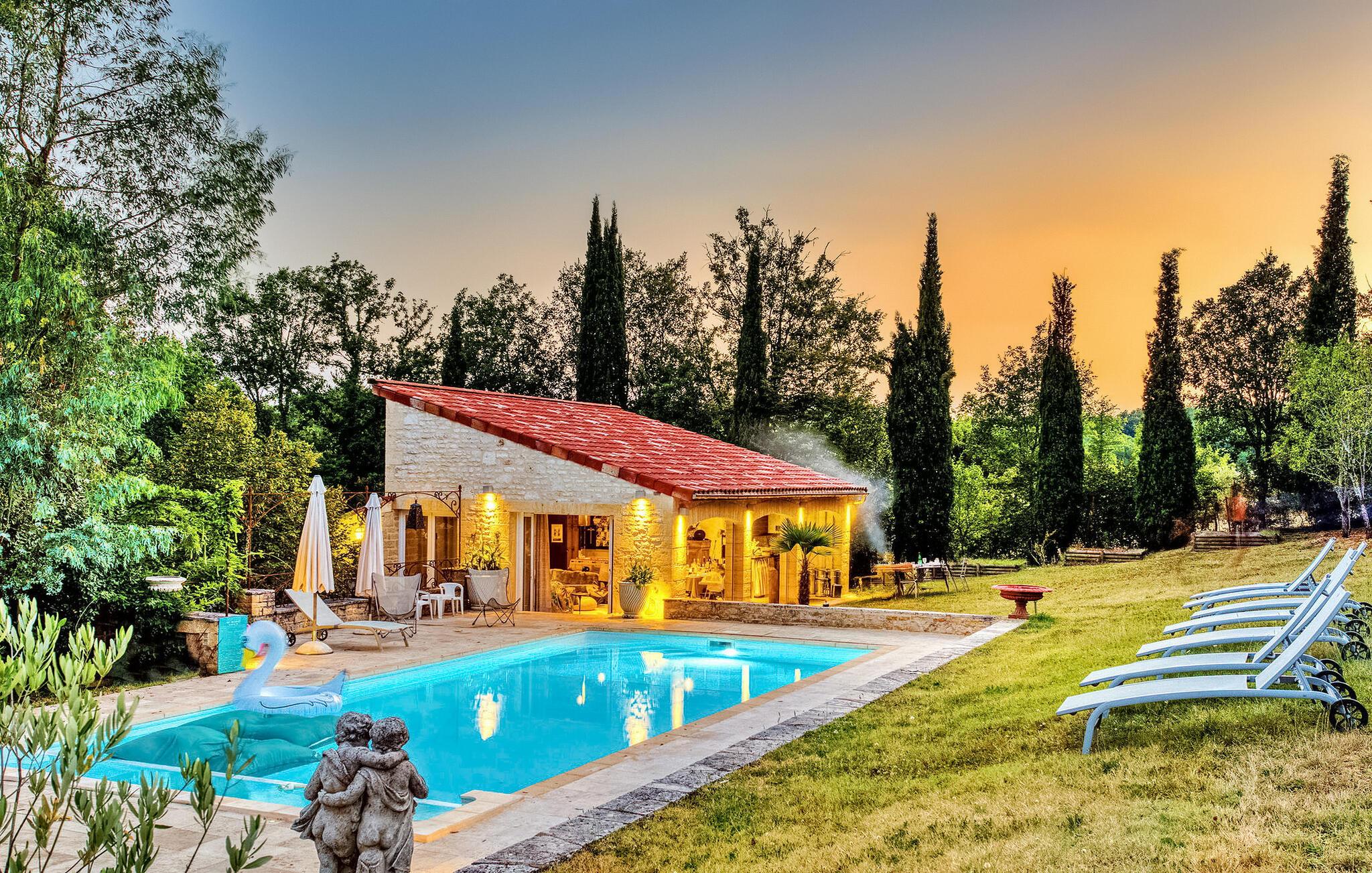 Du vil tilbringe din ferie i en landsby, en del af en 7 hektar stor ejendom, med 4 udlejningsejendomme, hver til brug for en enkelt familie og langt nok fra hinanden til at bevare alles privatliv. I centrum af ejendommen, 300 m væk, er der en 5 x 12 m swimmingpool, opvarmet til 30°C 7 måneder om året, og det tilhørende poolhus med fri adgang, som kun rummer et dusin gæster og familien af Ejeren kan deles, som er på stedet året rundt og kan give dig tips om regionen. Ejernes omgængelige og diskrete hunde og katte bor på ejendommen.
