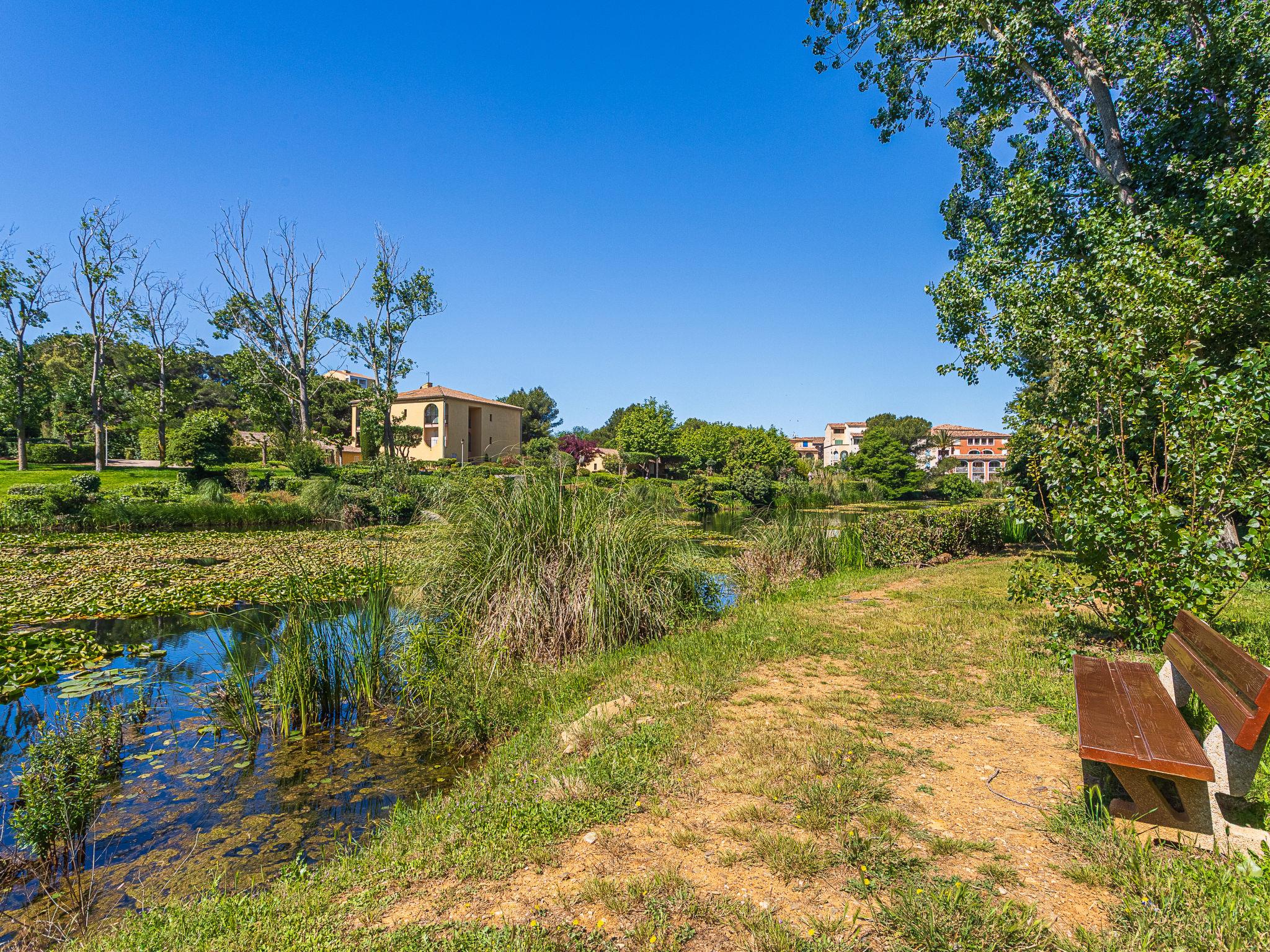 La Coudoulière: Residence "Les Rivages de Coudoulière", 3 storeys. 3 km from the centre of Six Fours, 50 m from the sea, 100 m from the beach, in the countryside. For shared use: swimming pool fenced (25 x 15 m, 340 m2, depth 60 - 160 cm, seasonal availability: 15.May. - 15.Oct. pool opening hours: 10:00-19:00) with internal staircase. Unconventional pool shape. Children's pool. In the complex: shop, restaurant, café 50 m, bus stop 200 m, sandy beach "La coudoulière" 100 m, park "Domaine de la Coudoulière" 50 m, lake Domaine de la Coudoulière 50 m. Sports harbour 50 m, golf course (18 hole) 13 km. Hiking paths: Sainte Baume, Sainte Victoire, Calanques Port-Cros, Porquerolles, Ile verte, Embiez, Figuerolles, Cassis. Please note: the keys‘ handover takes place by the agency Interhome in SIX FOURS LES PLAGES, 2 km. Additional accommodations can be booked.