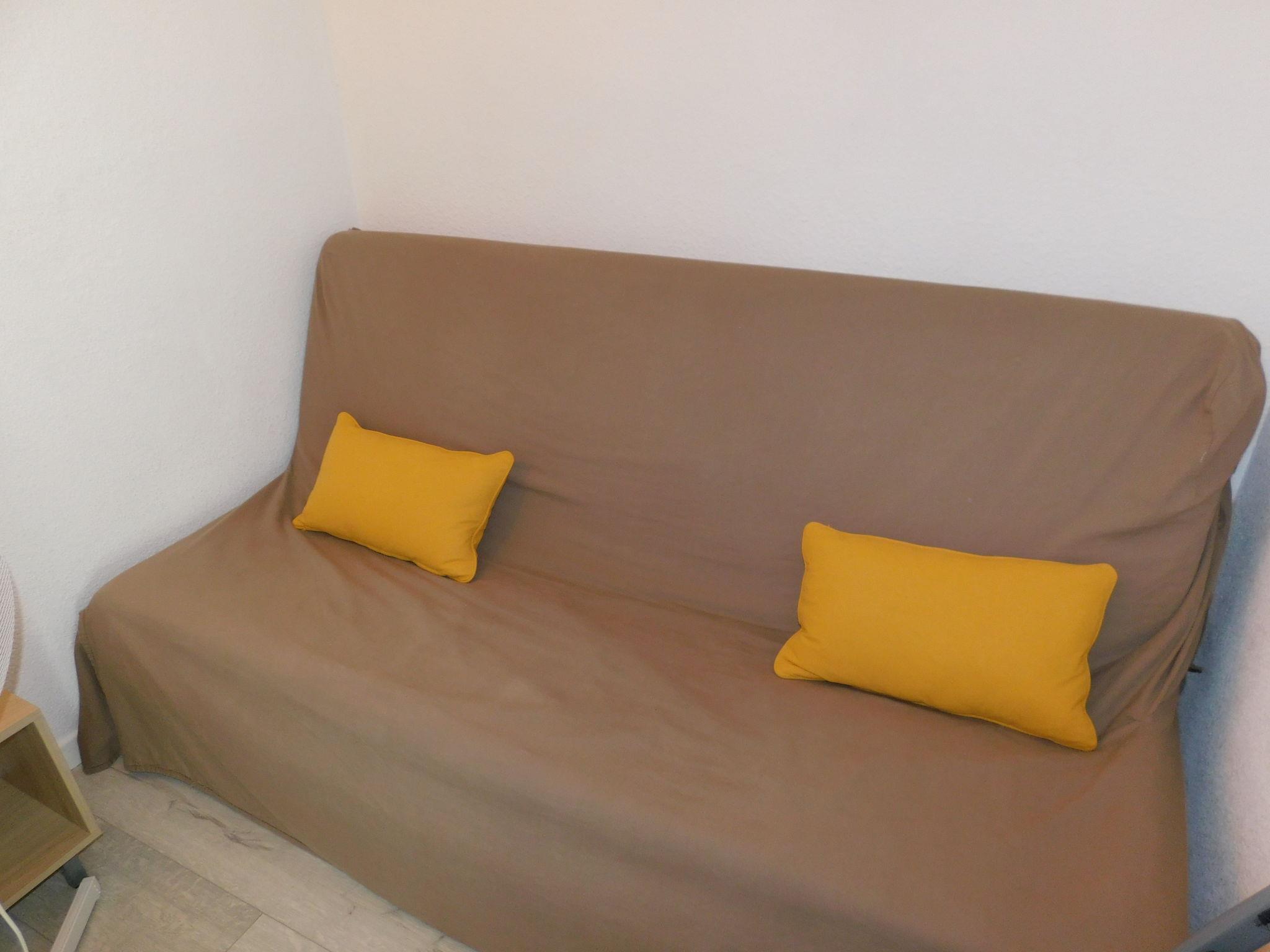 3-room apartment 32 m2 on 2nd floor, south-east facing position. Object suitable for 2 adults + 2 children. Comfortable and beautiful furnishings: living/dining room with 1 sofabed (140 cm, length 190 cm), TV and fan. Exit to the terrace. 1 small room 6 m2 with 1 french bed (140 cm, length 190 cm). Sleeping alcove 4 m2 with sliding door, without window with 1 sofabed (130 cm, length 190 cm). Open kitchen (oven, dishwasher, 1 induction hot plates, 2 gas rings, toaster, kettle, microwave, freezer, electric coffee machine, Capsules for coffee machine (Senseo) extra). Shower, sep. WC. Electric heating. Terrace 10 m2, roofed. Terrace furniture. View of the lake. Facilities: washing machine. Internet (WiFi, extra). Parking space n 5. Please note: not suitable for small children. Non-smokers only. TV only FR. Smoke alarm. Offer by a private individual according to Art. 155, IV of CGI.
