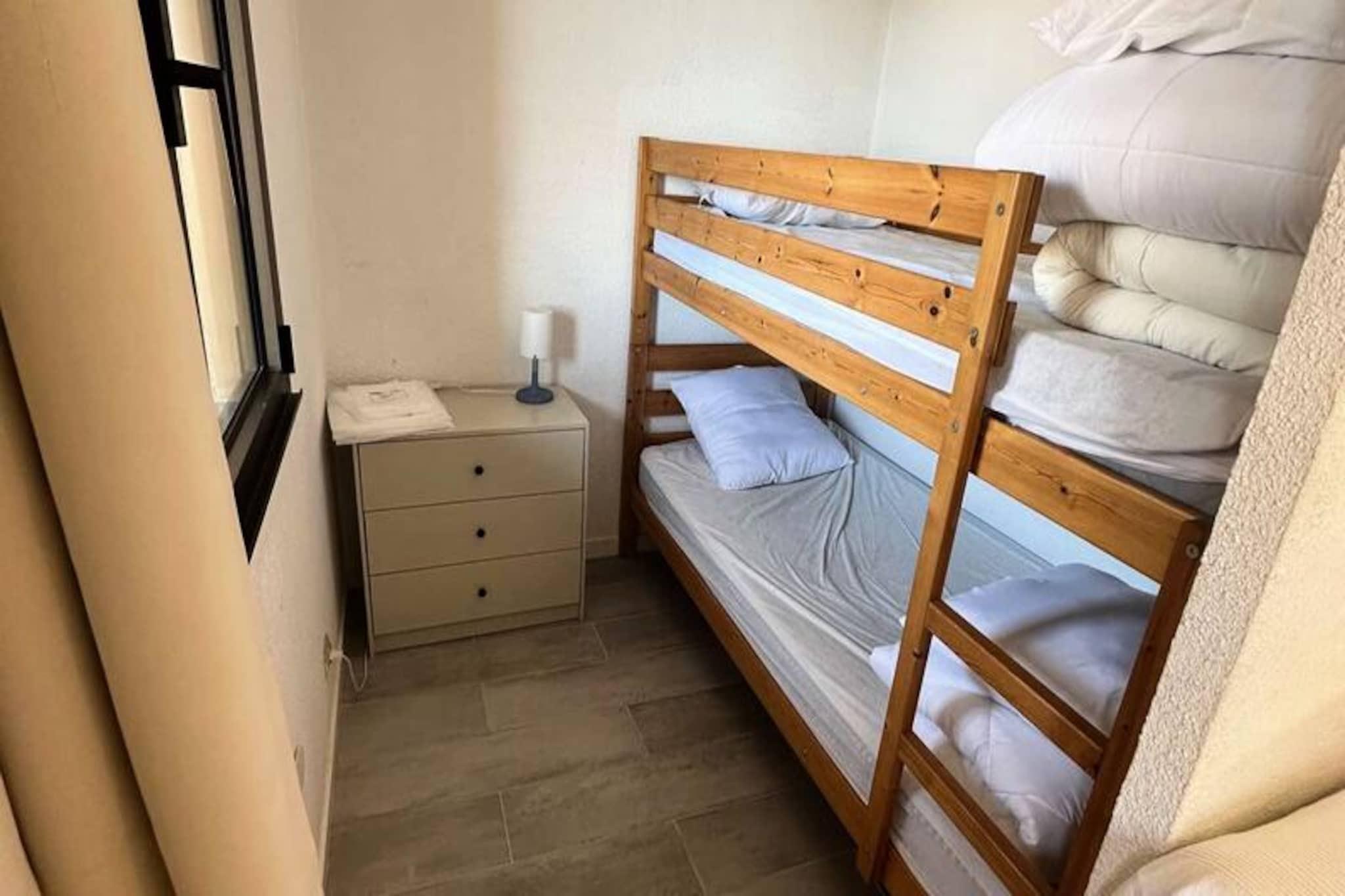 Boost your seaside vacation with this cozy 28m² apartment in the secure Coudoulière estate in Six-Fours-les-Plages. Ideal for up to 4 guests, the apartment features a living room with a convertible sofa bed, a small bedroom with bunk beds, and a bathroom. A balcony offers a lovely space to enjoy the fresh air. Bed linen and towels are available for an additional cost, with tourist taxes and a deposit collected on-site. The apartment's prime location places you just 100m from the sea, offering direct access to beautiful beaches. Explore nearby attractions such as Sanary-sur-Mer, Gaou Islands, and the famous Porquerolles and Embiez islands. Outdoor enthusiasts will love the nearby hiking trails, cycling paths, and stunning calanques. Local cafes, markets, and shops provide a taste of the region’s charm, with the picturesque villages of Cassis, Bandol, and Le Castellet just a short drive away. Inside, the apartment includes a fully equipped kitchenette and a bathroom to ensure a comfortable stay. While the swimming pool and tennis courts are available for an additional charge, the peaceful and scenic setting provides plenty of relaxation options. Perfect for a seaside retreat, this apartment combines comfort and convenience for an unforgettable vacation.